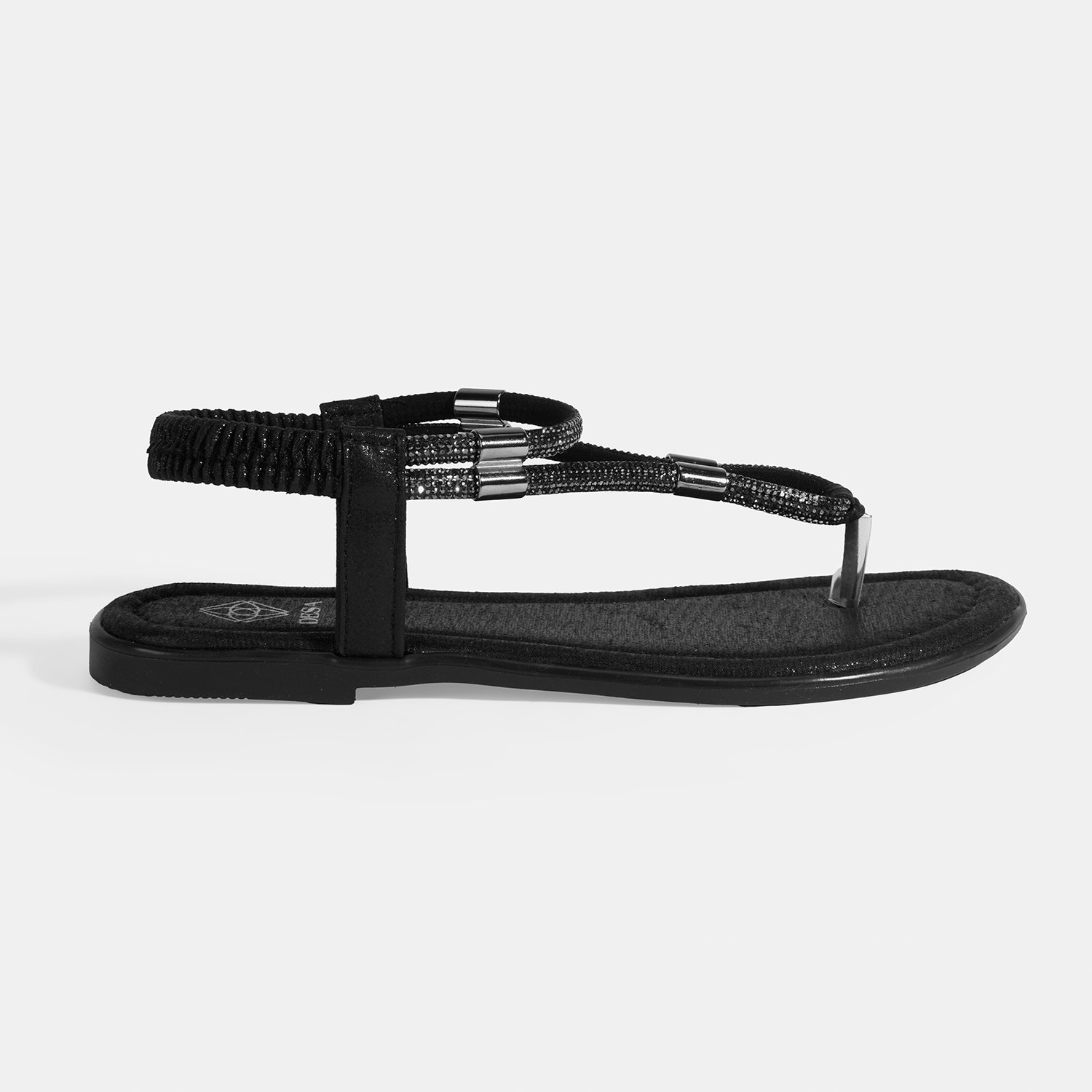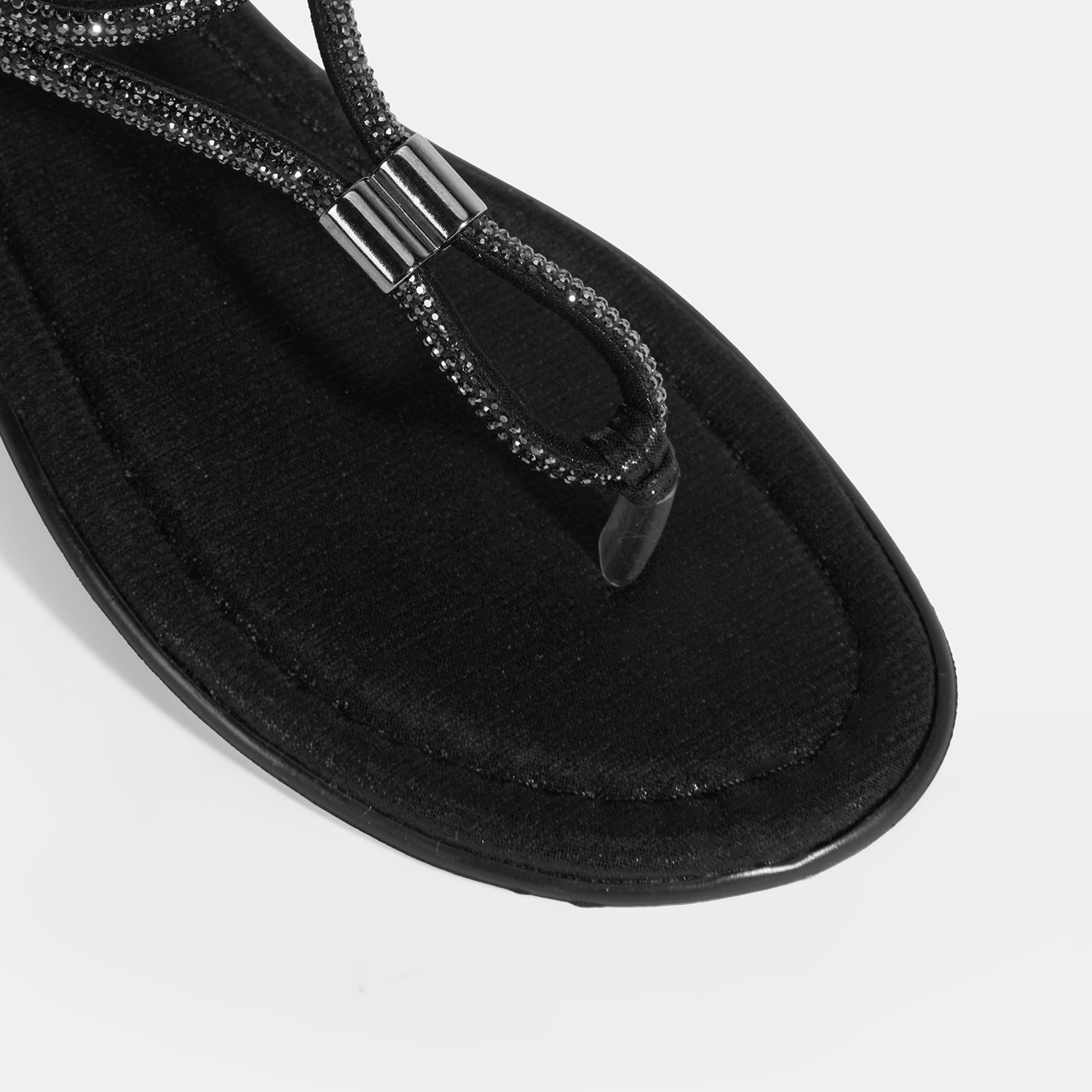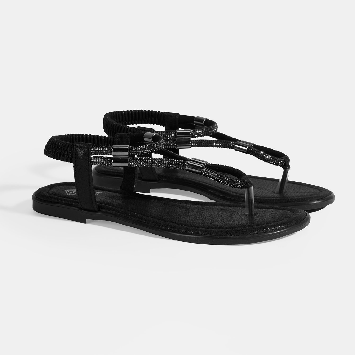 Kadın Siyah Taşlı Lastik Bantlı Parmak Arası Sandalet
