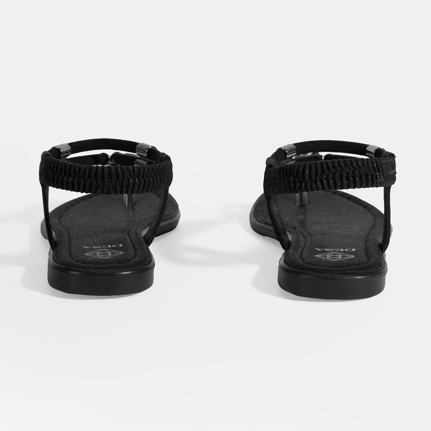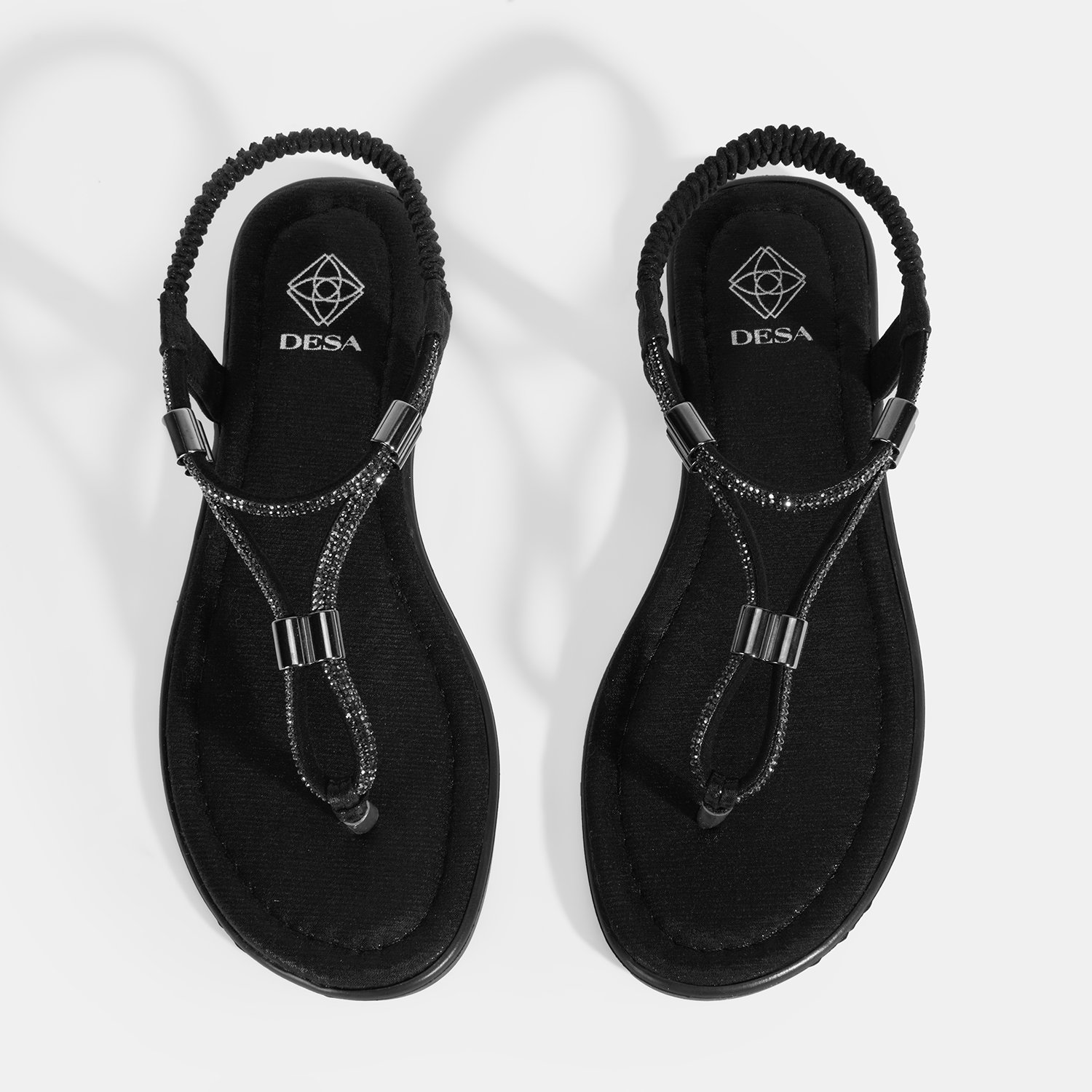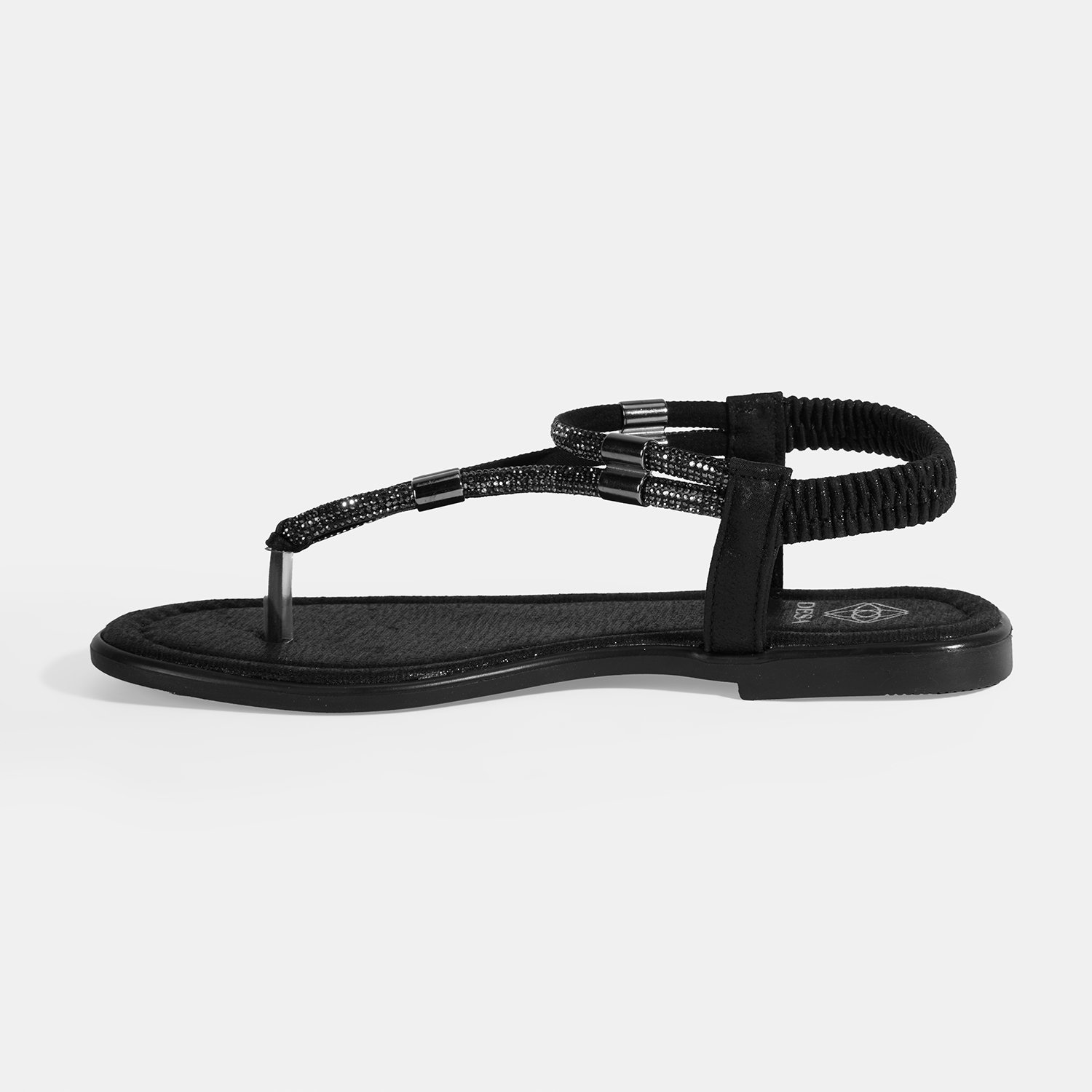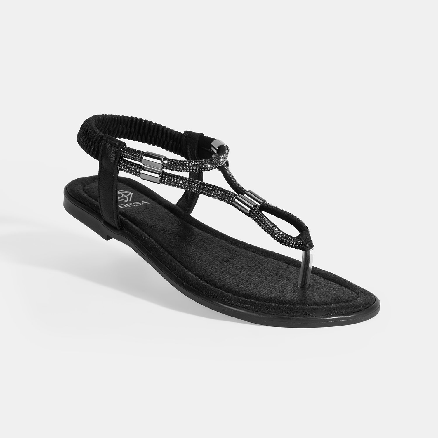 Kadın Siyah Taşlı Lastik Bantlı Parmak Arası Sandalet