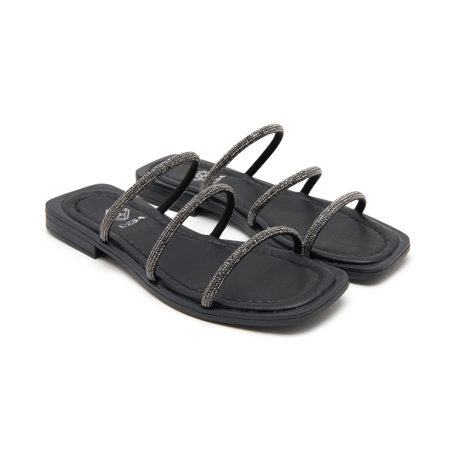 Parlak taşlı biyelerden oluşan ,dayanıklı ve esnek tpu tabanlı pu materyalden üretilmiş kadın terlik.