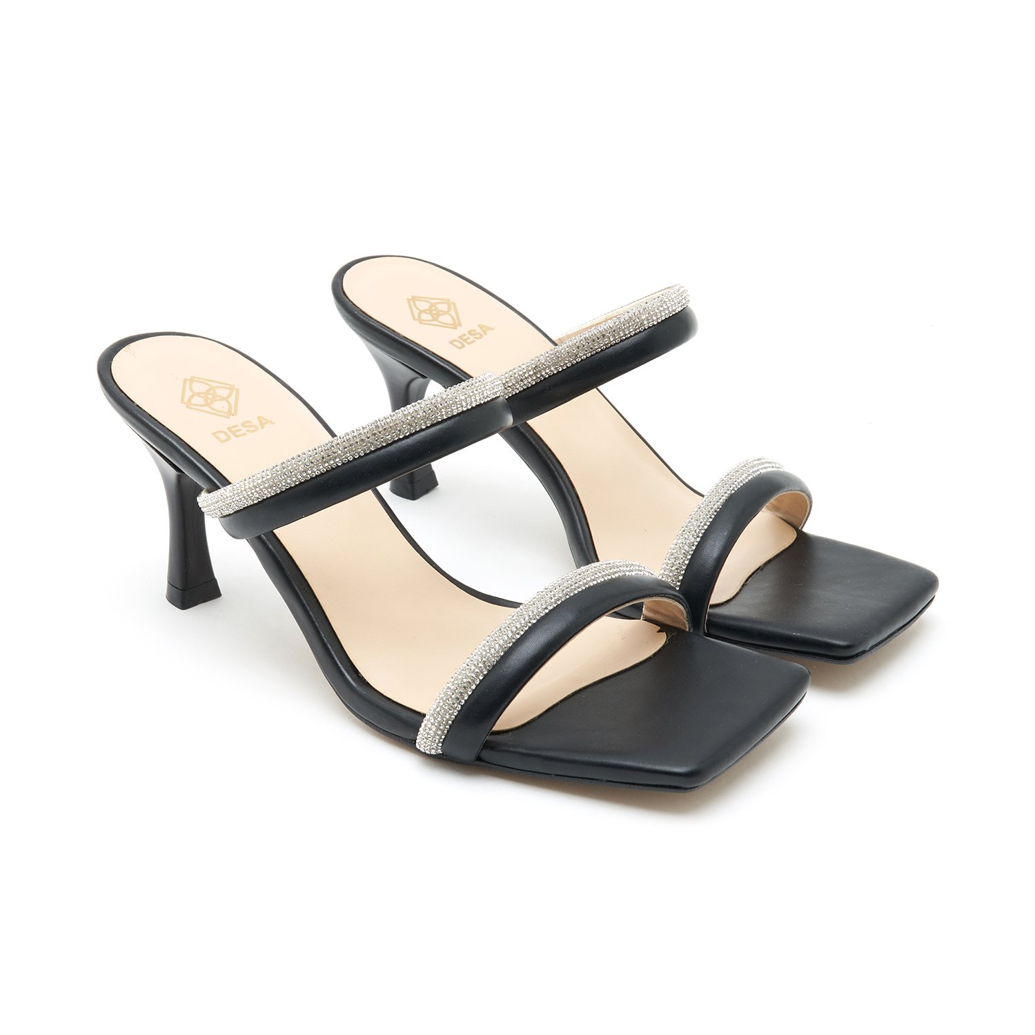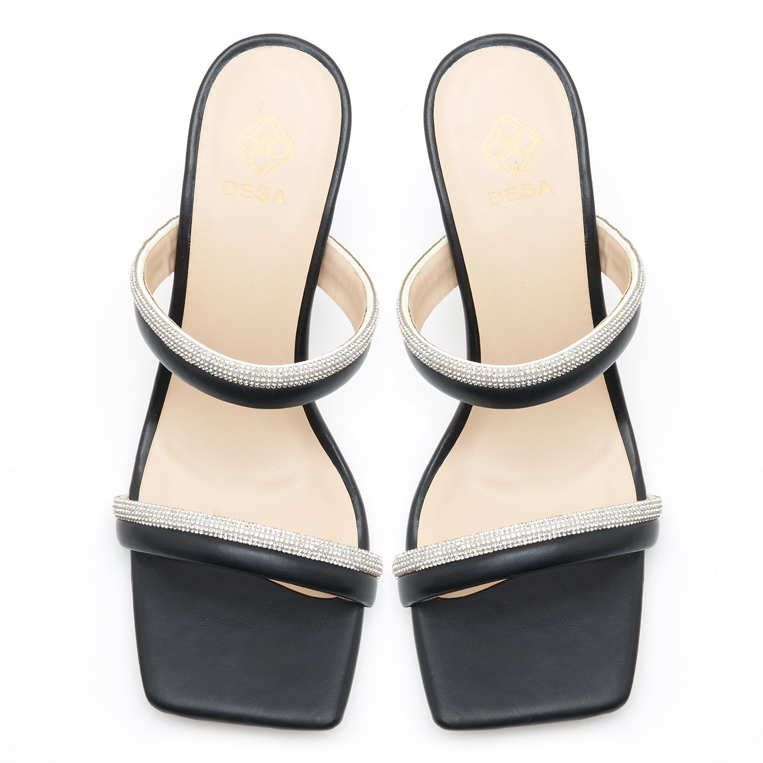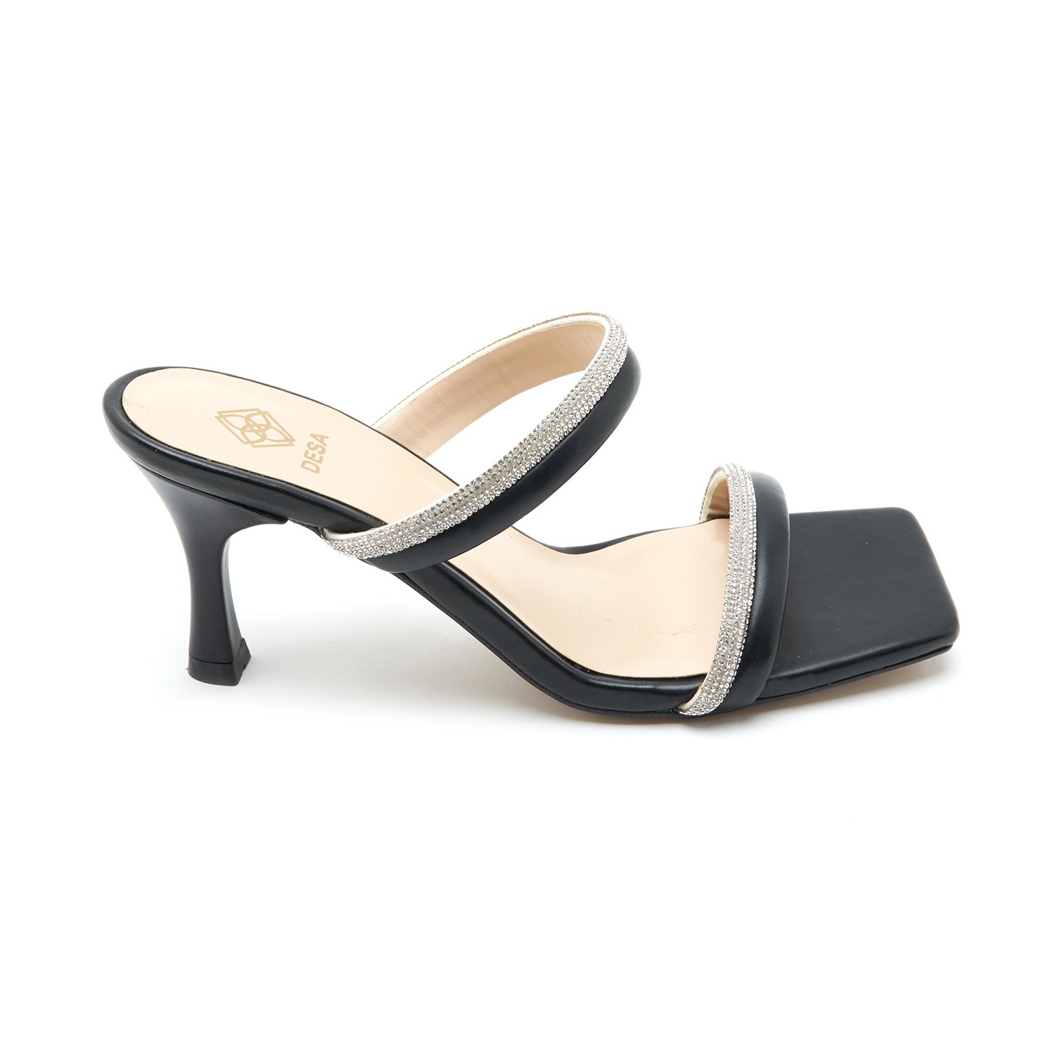 Parlak taş aksesuarlı,neolit tabanlı,pu materyalden üretilmiş kadın terlik.