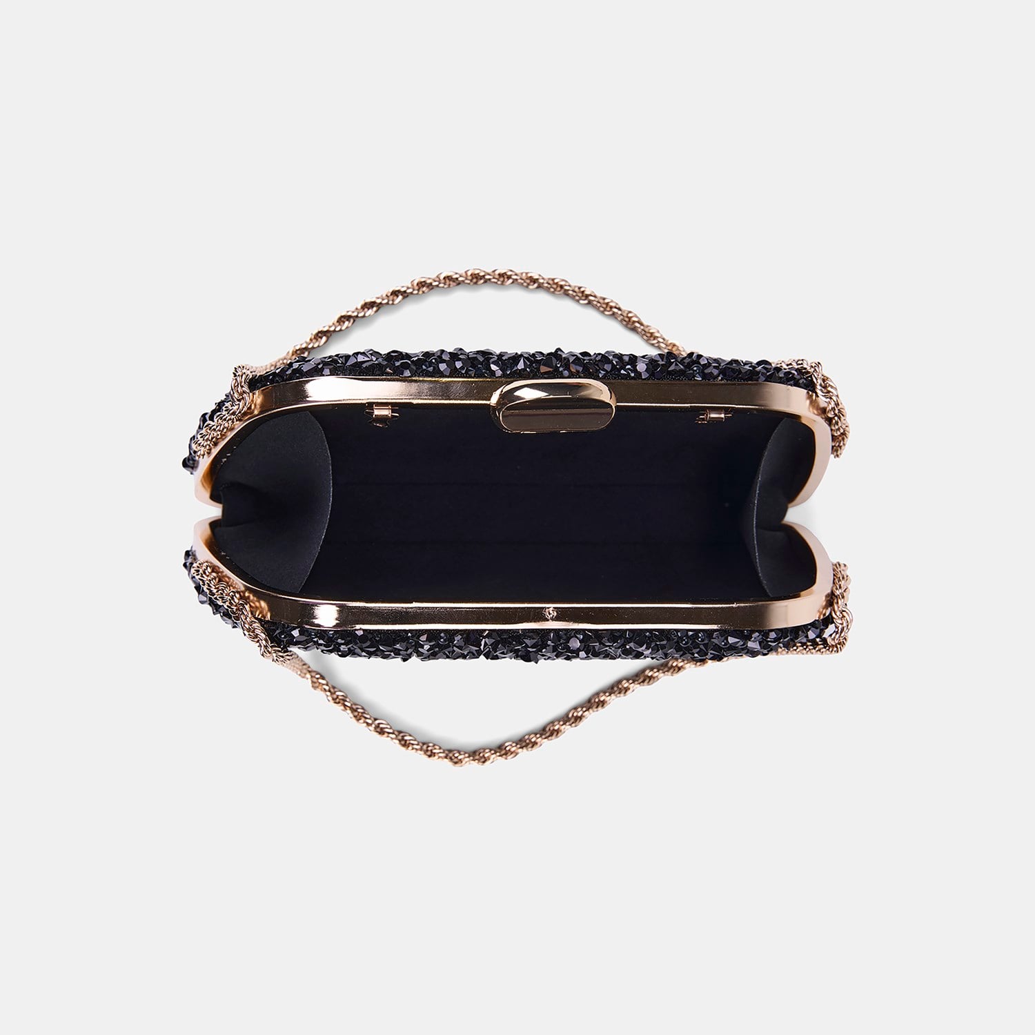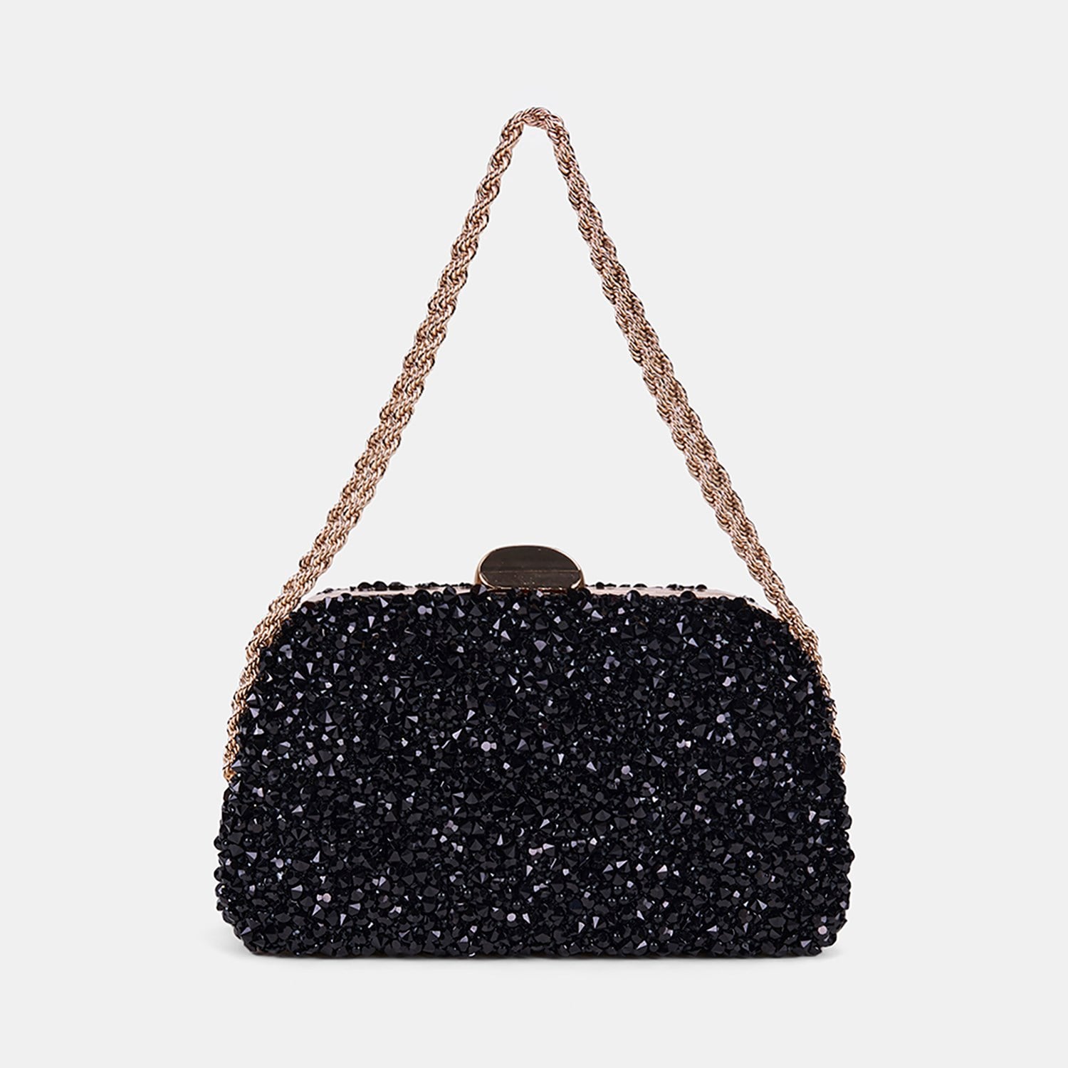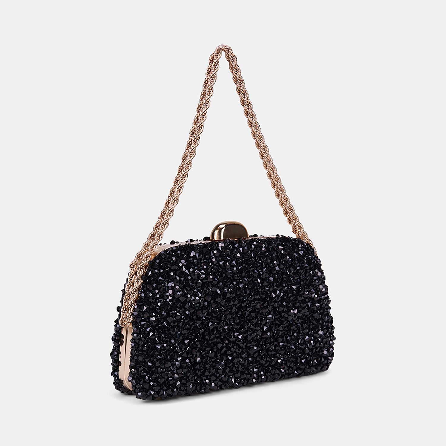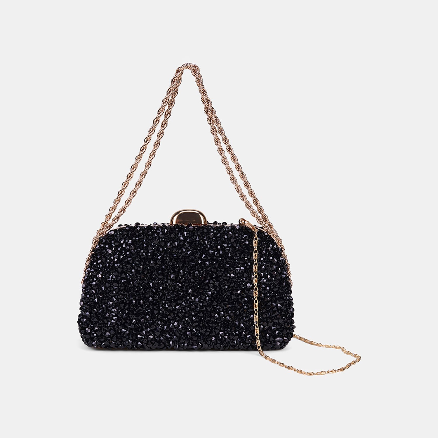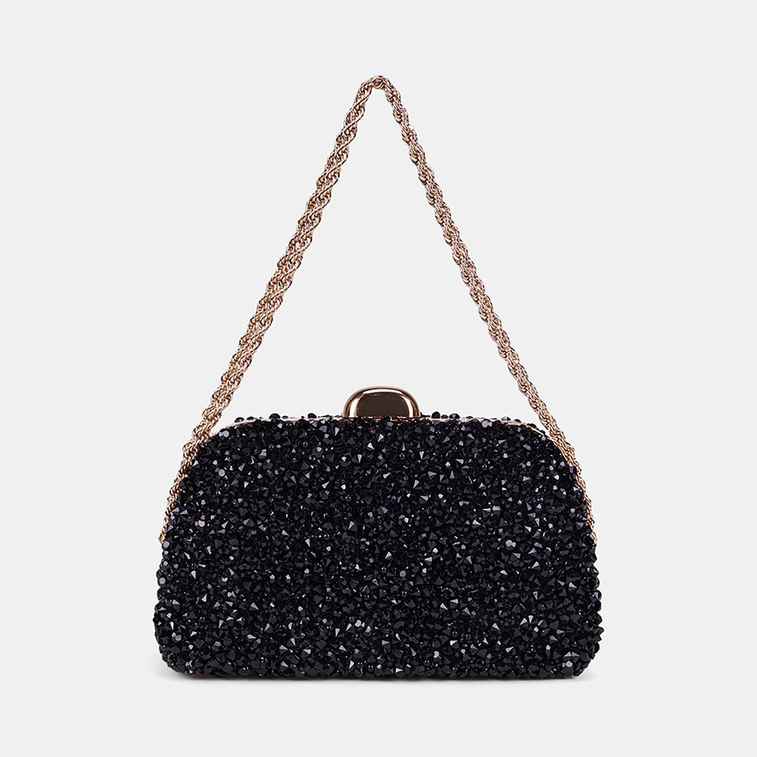 Kadın Siyah Taşlı Zincir Omuz Askılı Gece El Çantası
