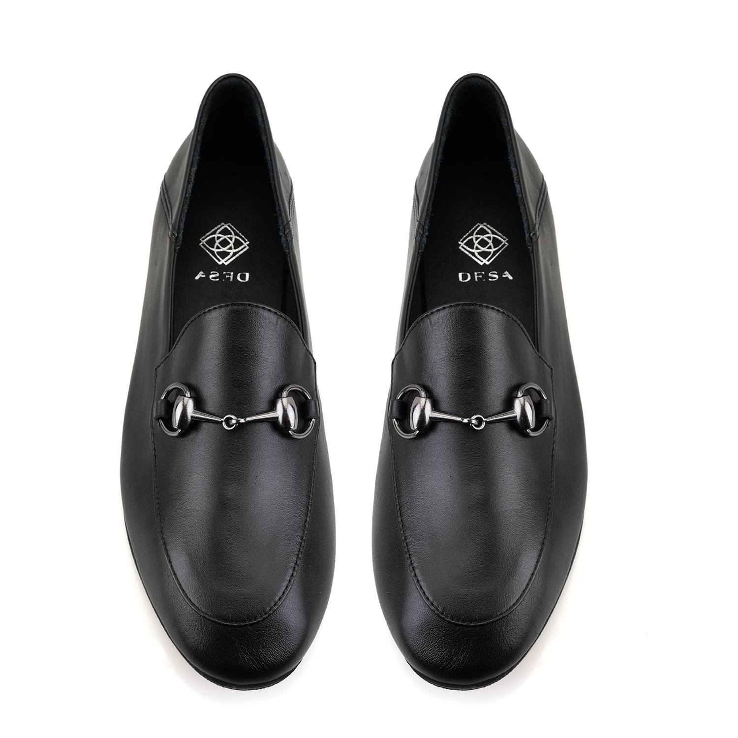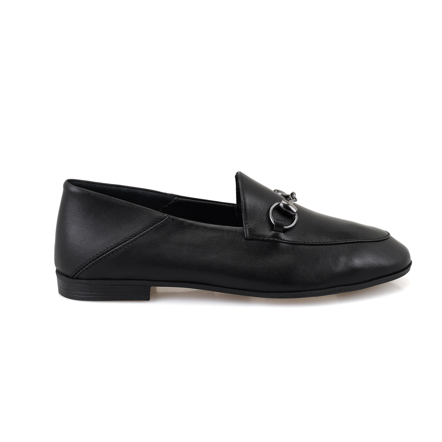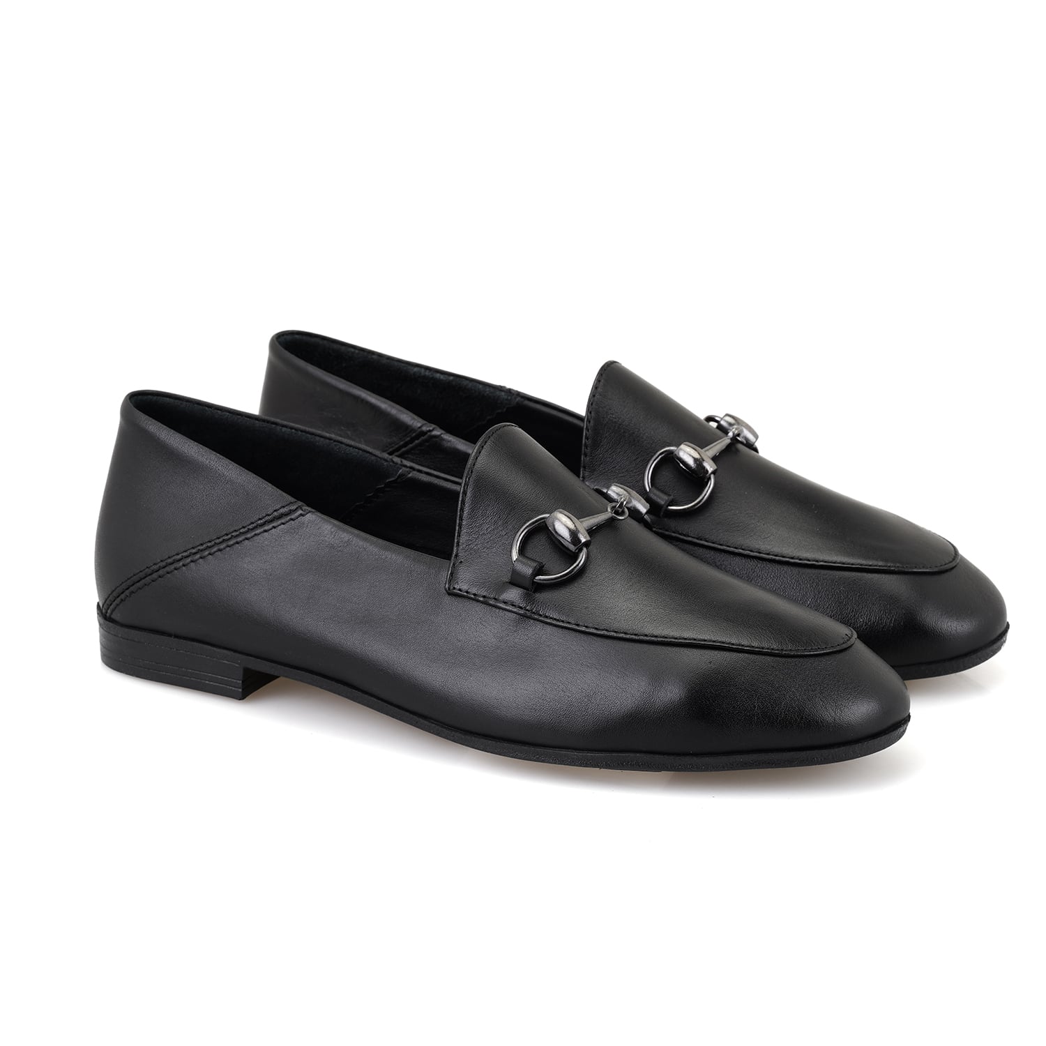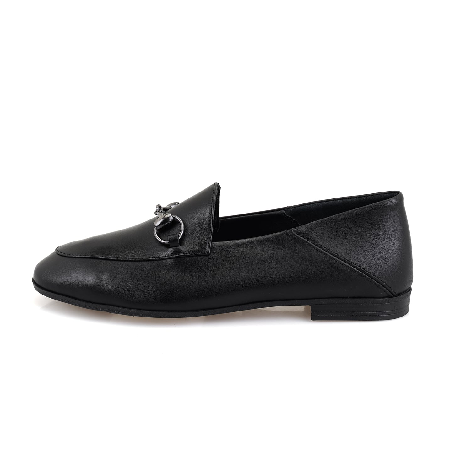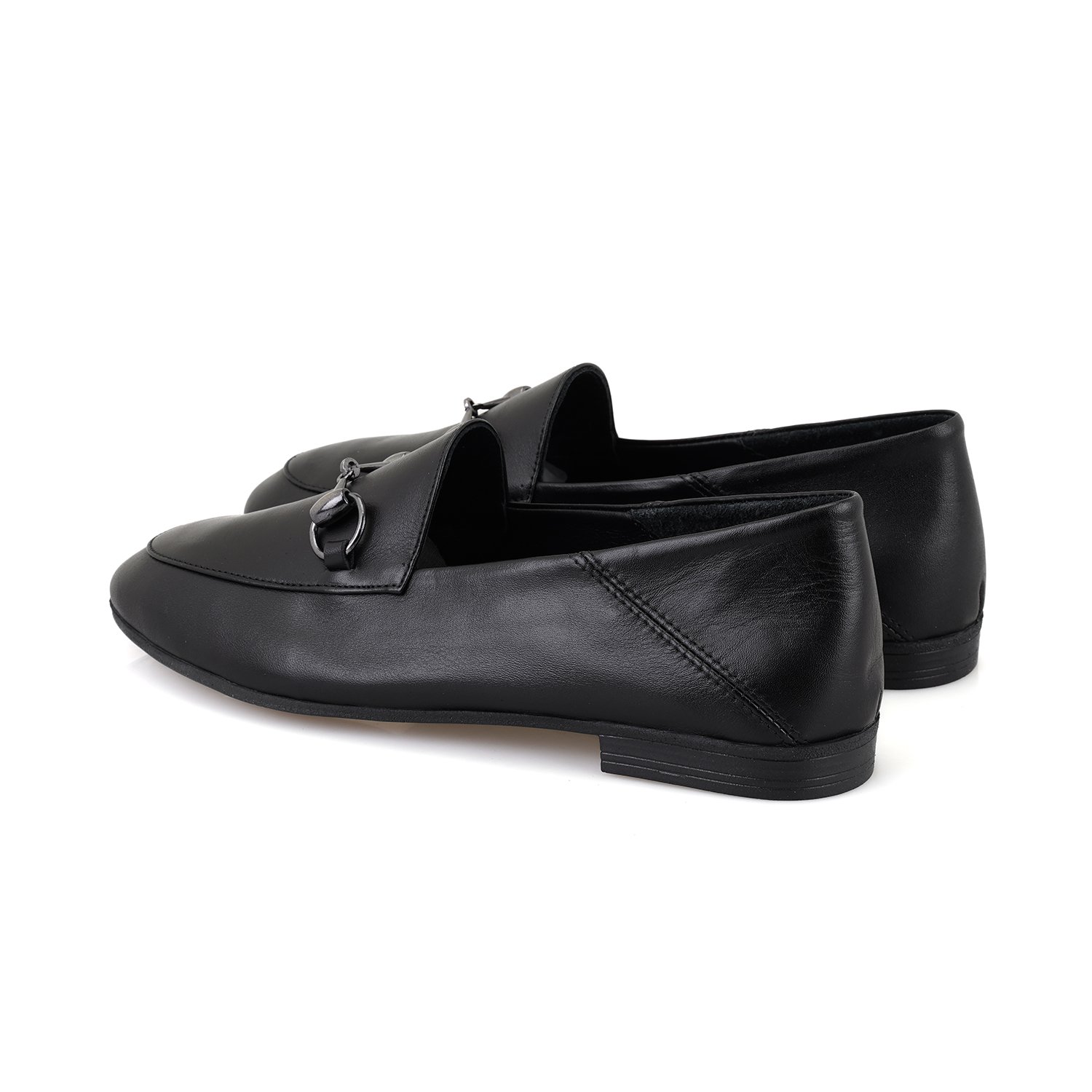 Kadın Siyah Toka Aksesuarlı Deri Babet
