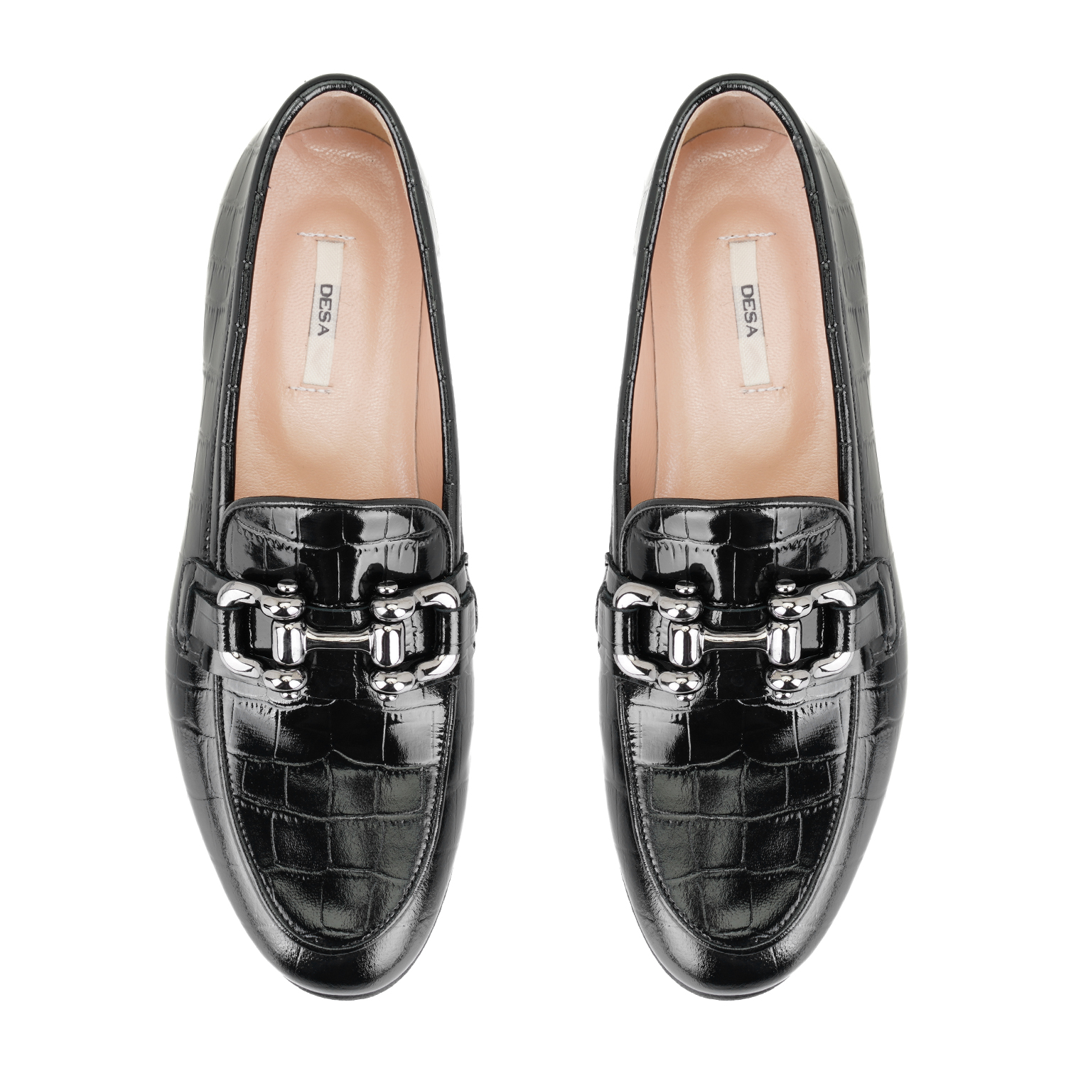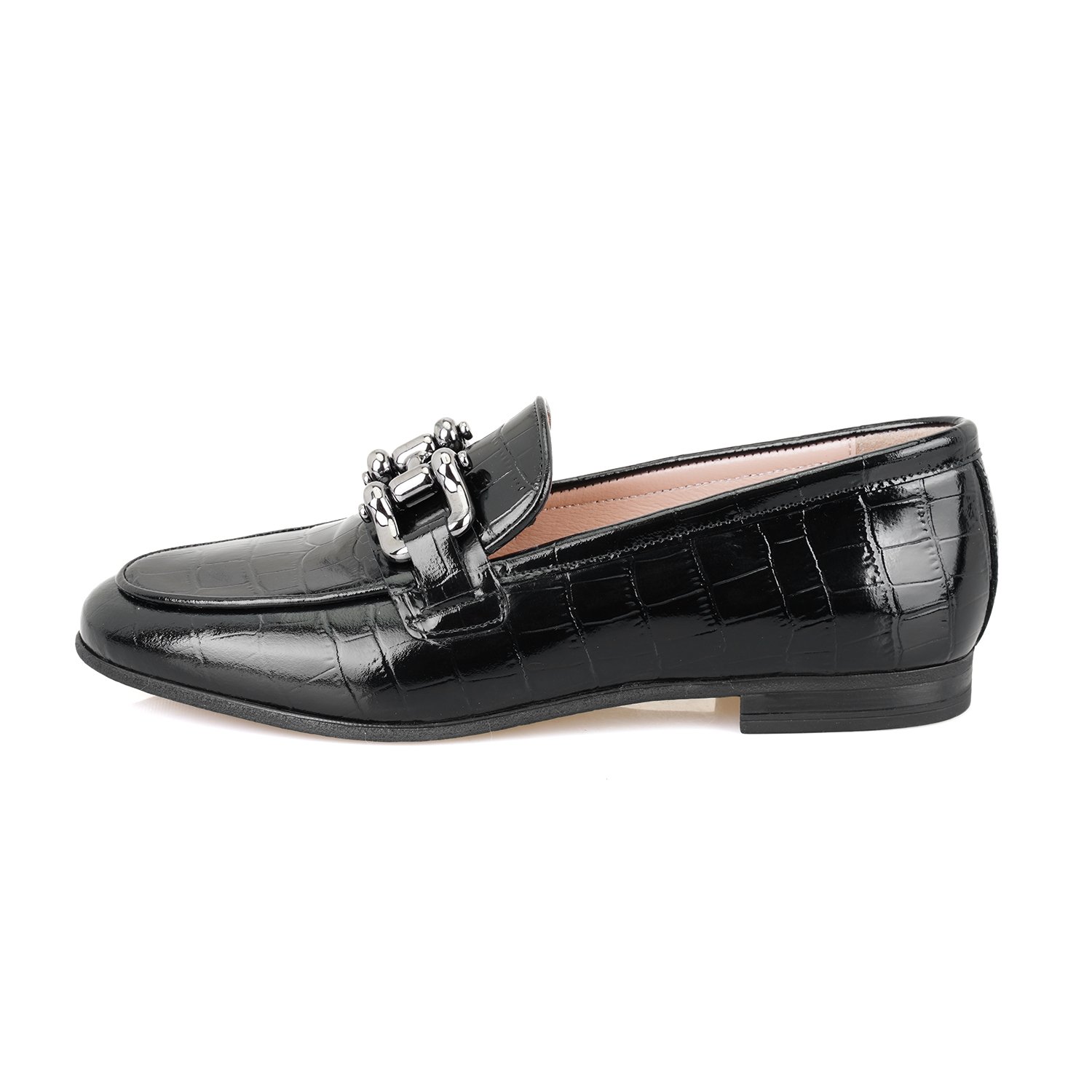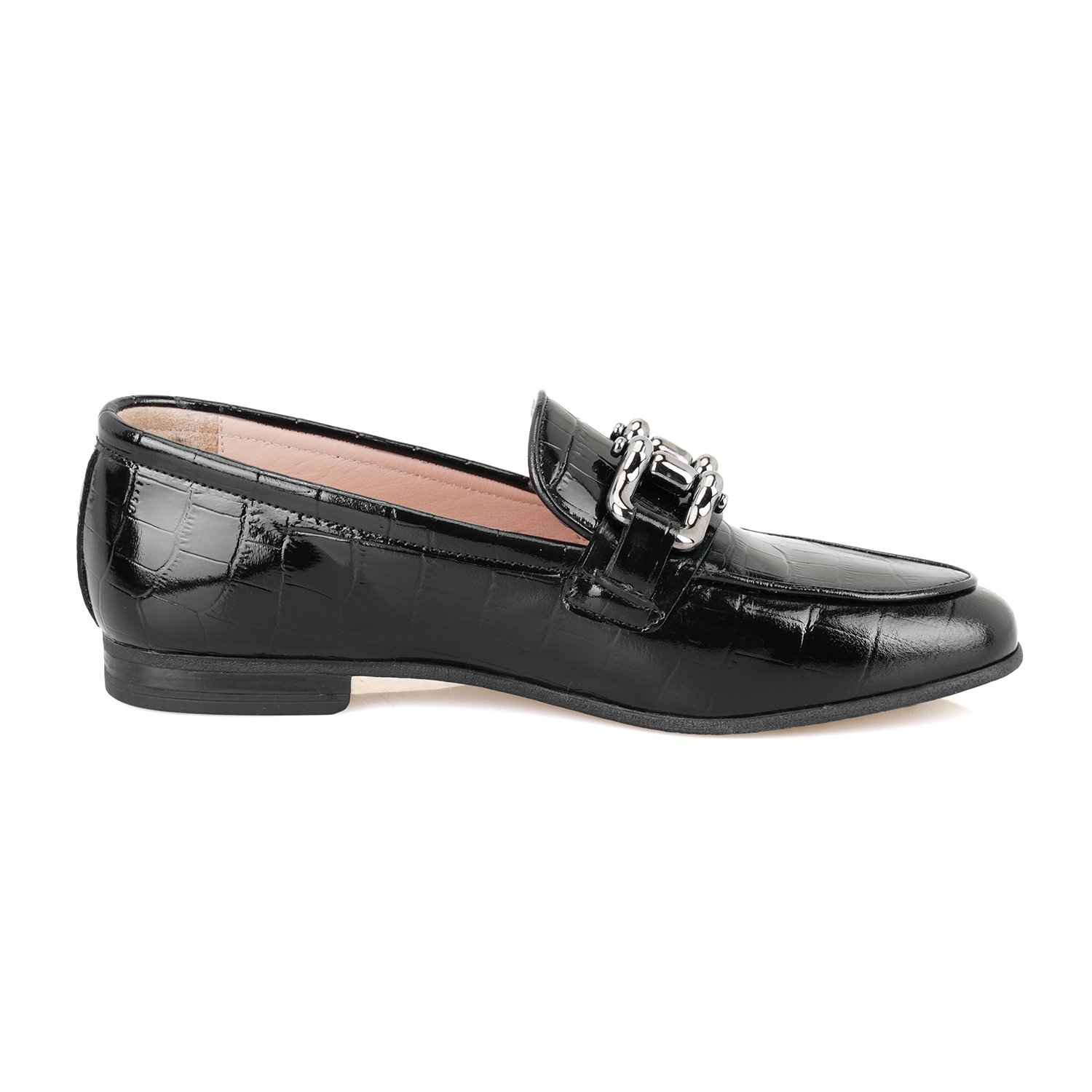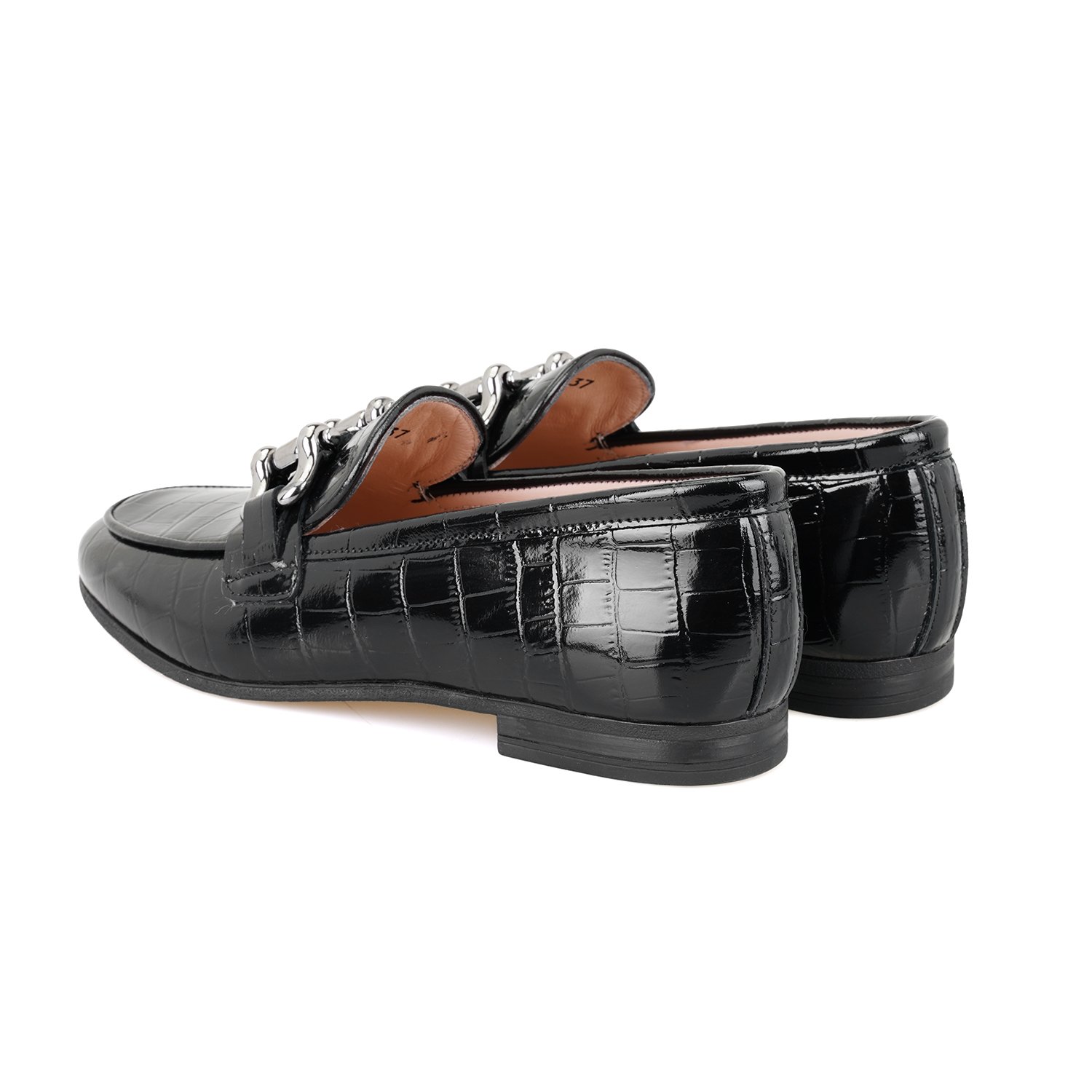 Kadın Siyah Toka Aksesuarlı Deri Loafer