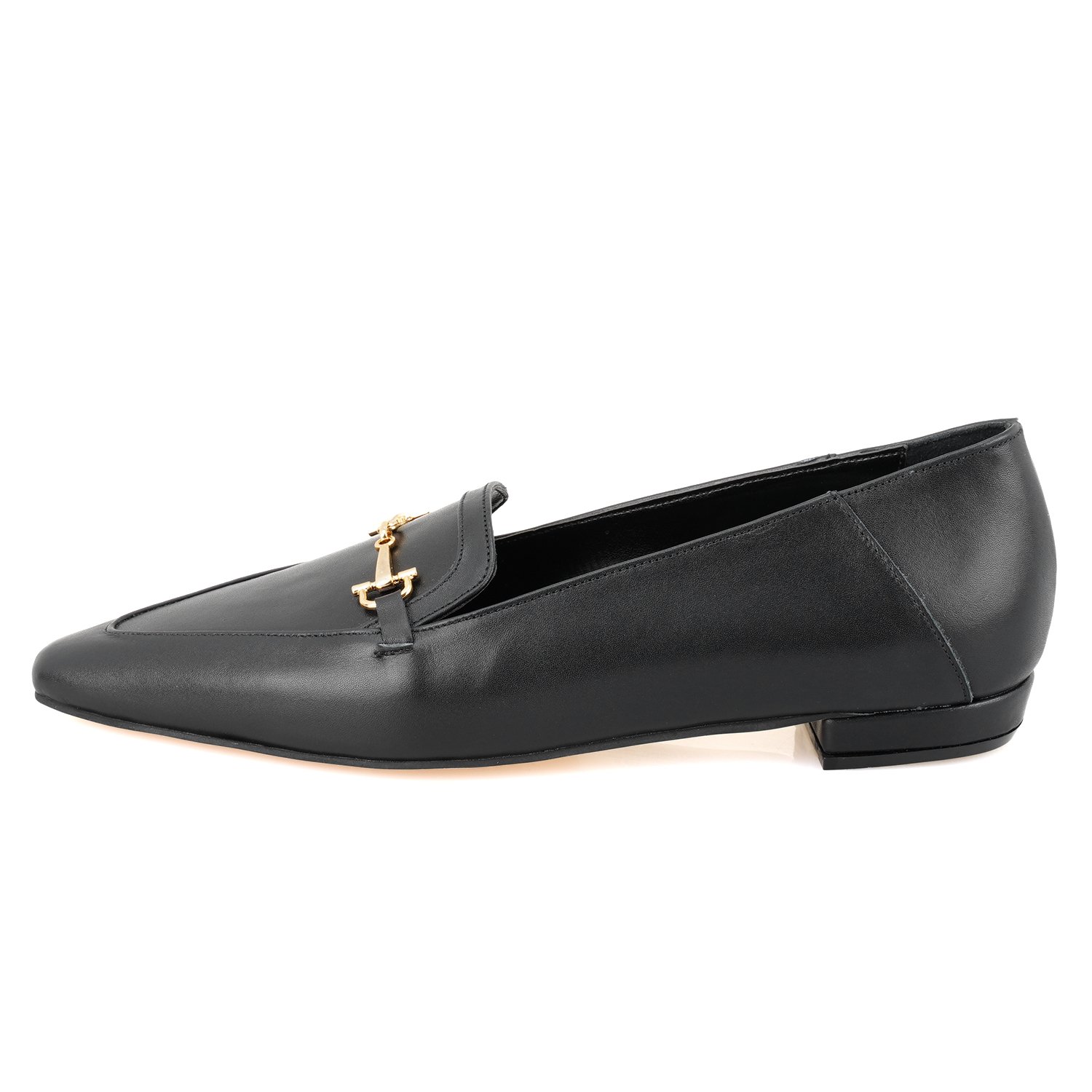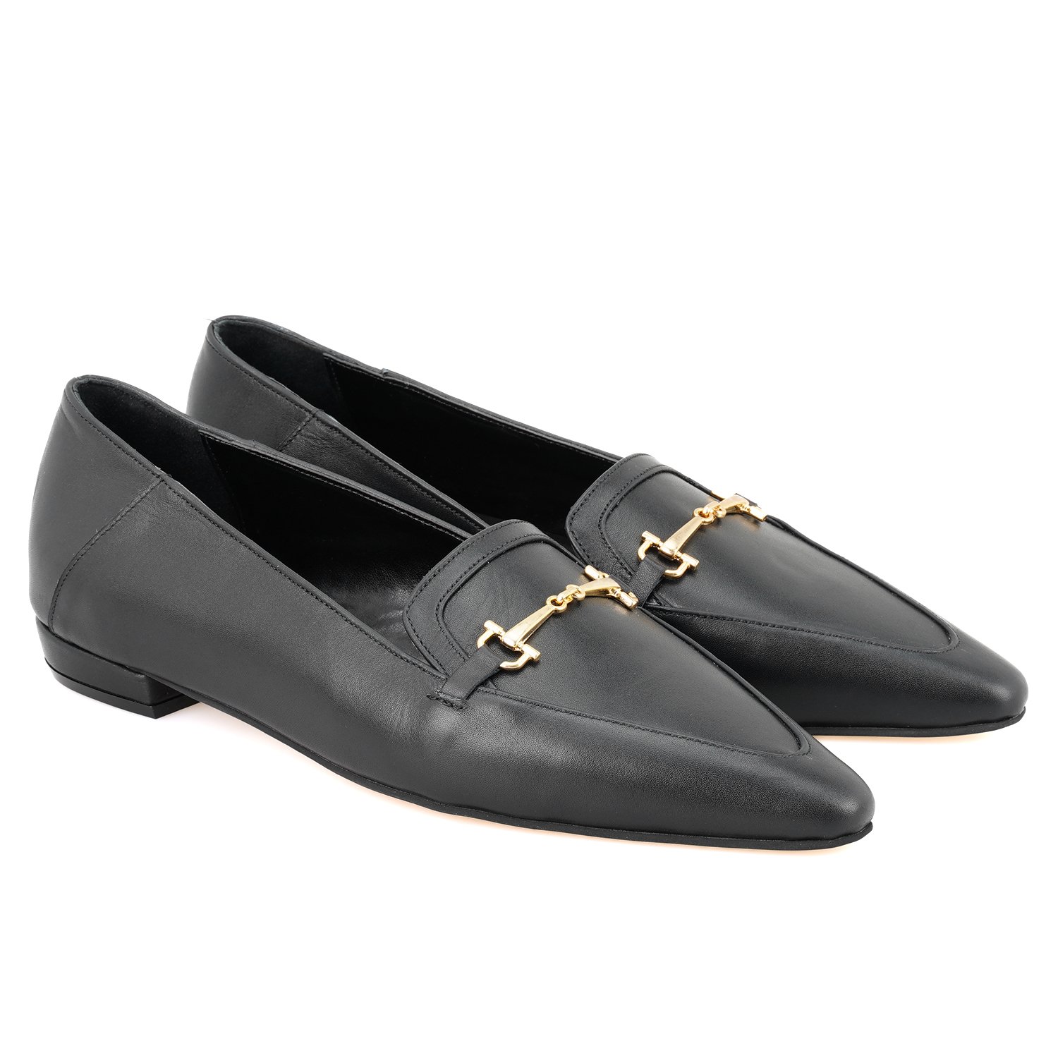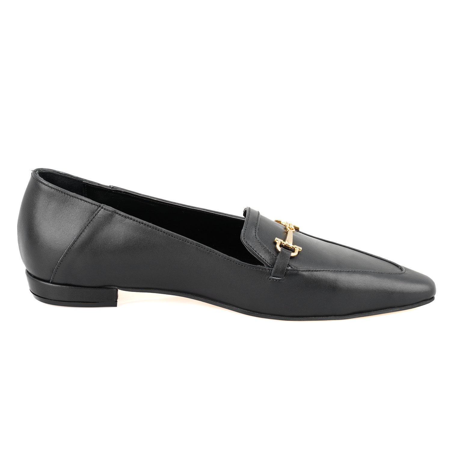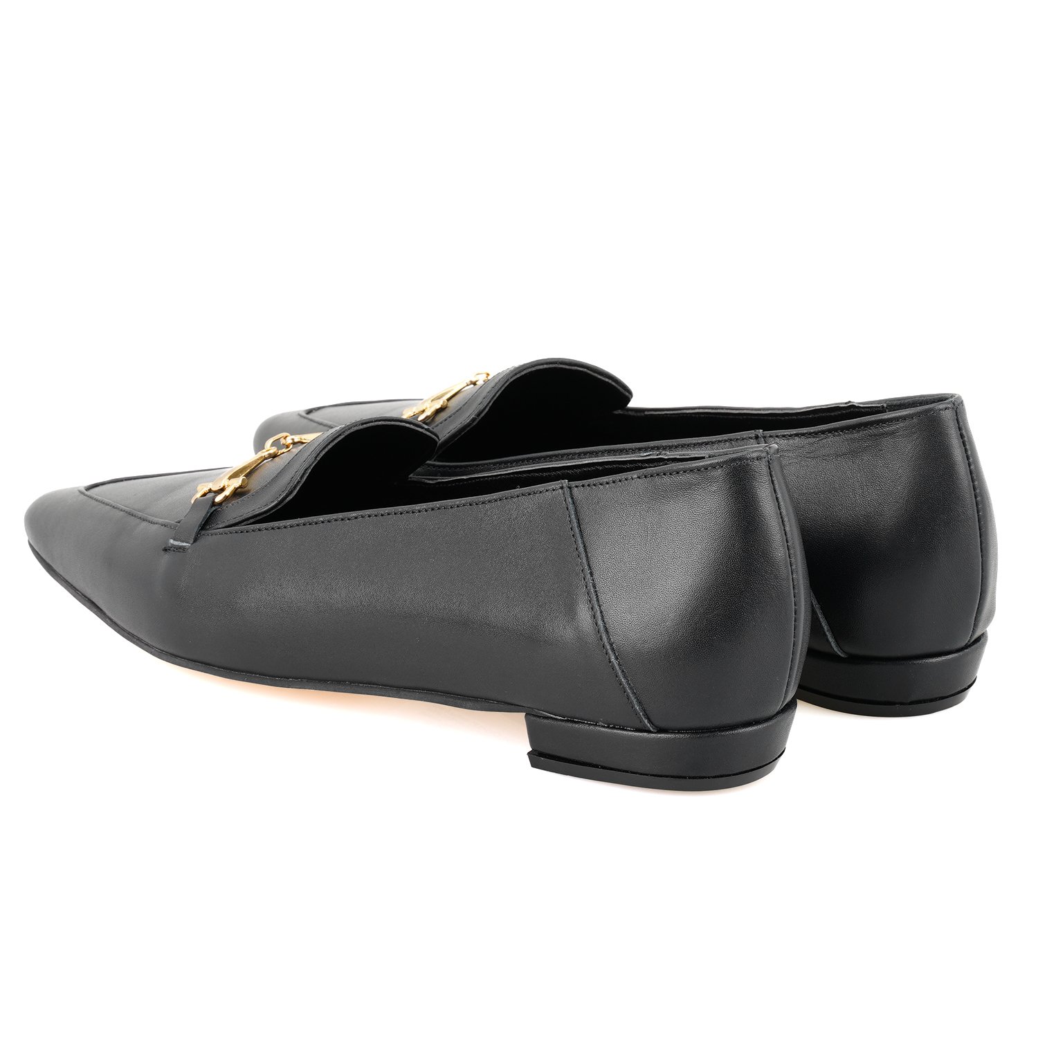 Kadın Siyah Toka Aksesuarlı Deri Loafer