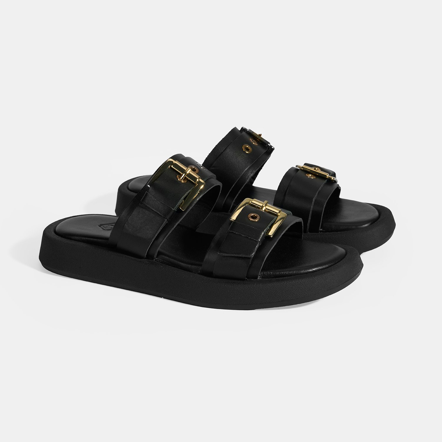 %100 deri, deri iç tabanlı, deri astarlı, ayarlanabilir metal tokalı, termo tabanlı, kadın terlik.