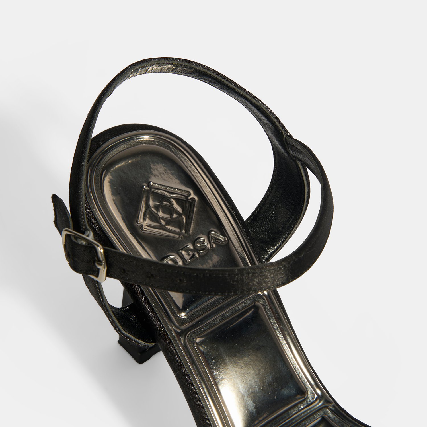 Pu iç tabanlı, pu astarlı, ayarlanabilir metal tokalı, neolit tabanlı, topuklu kadın sandalet.