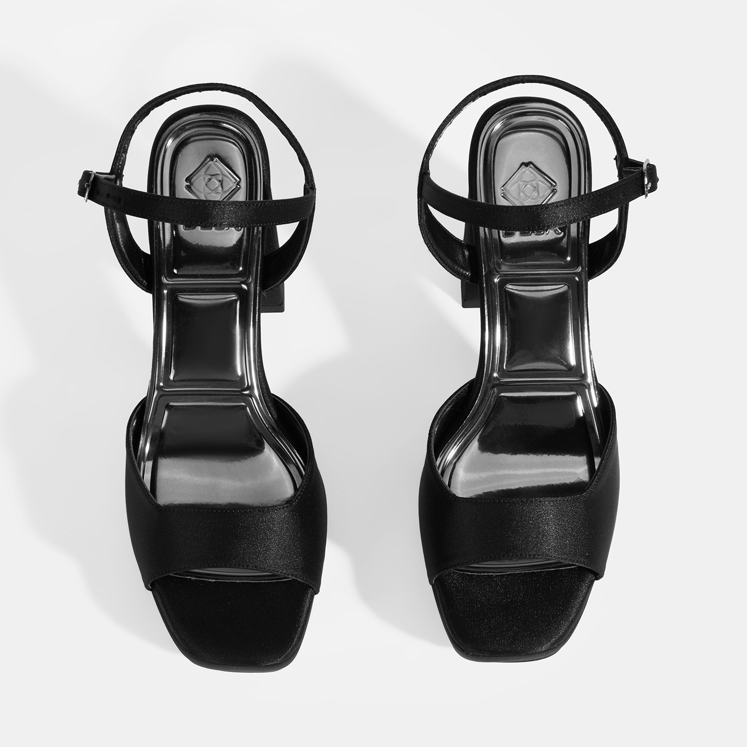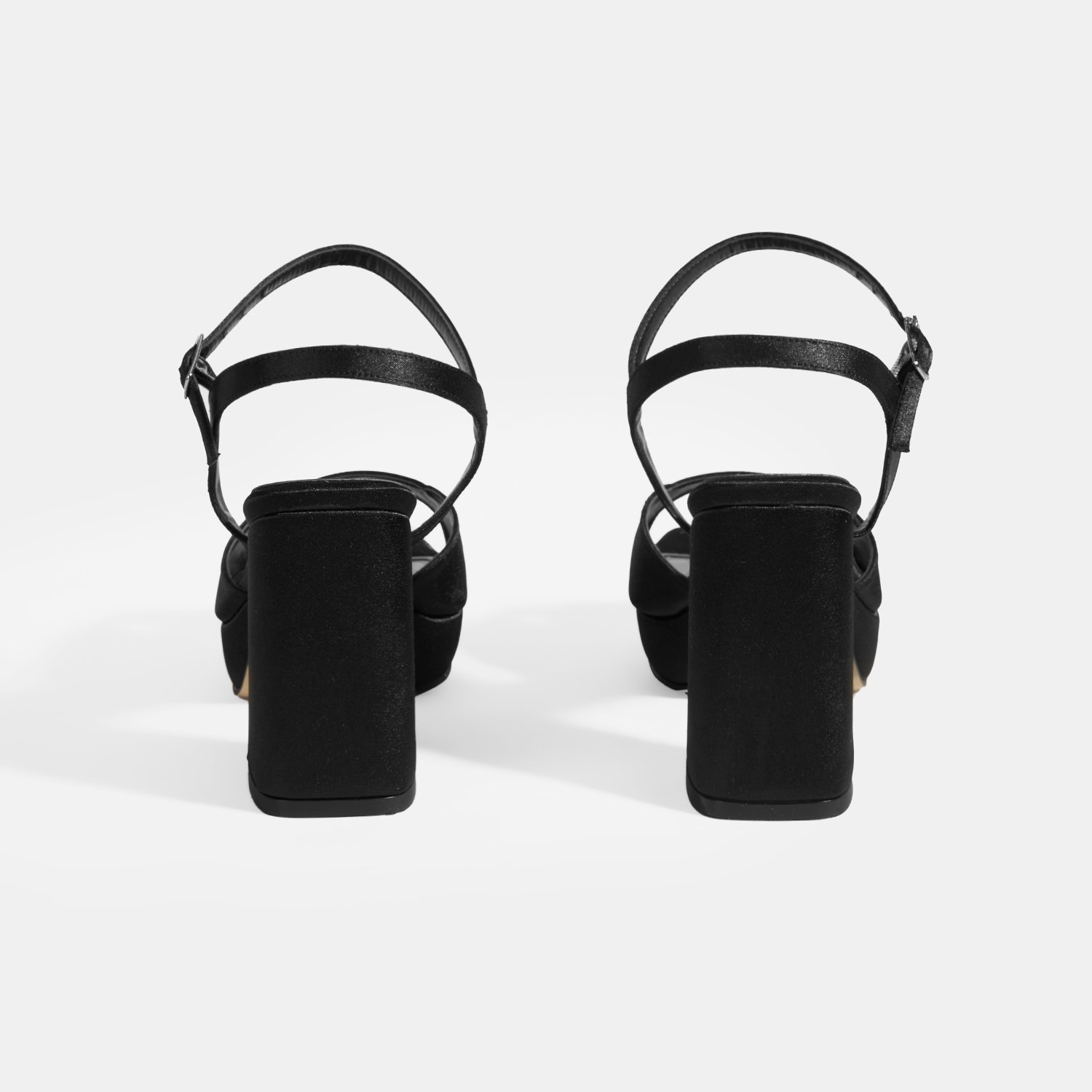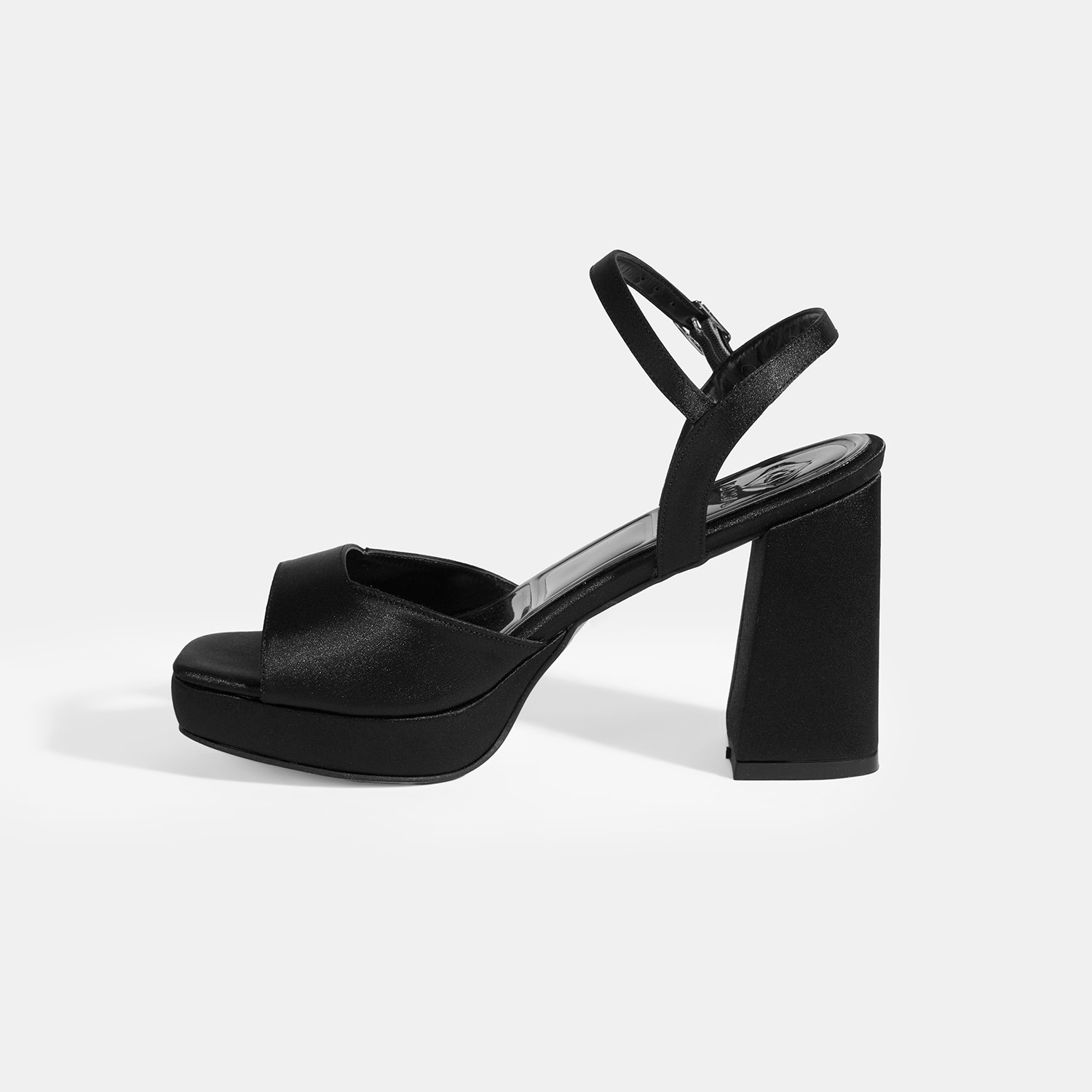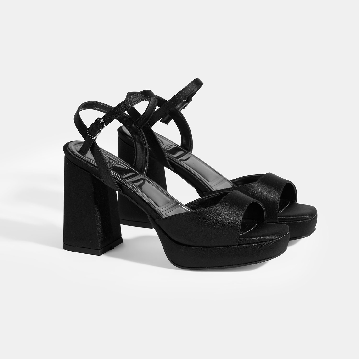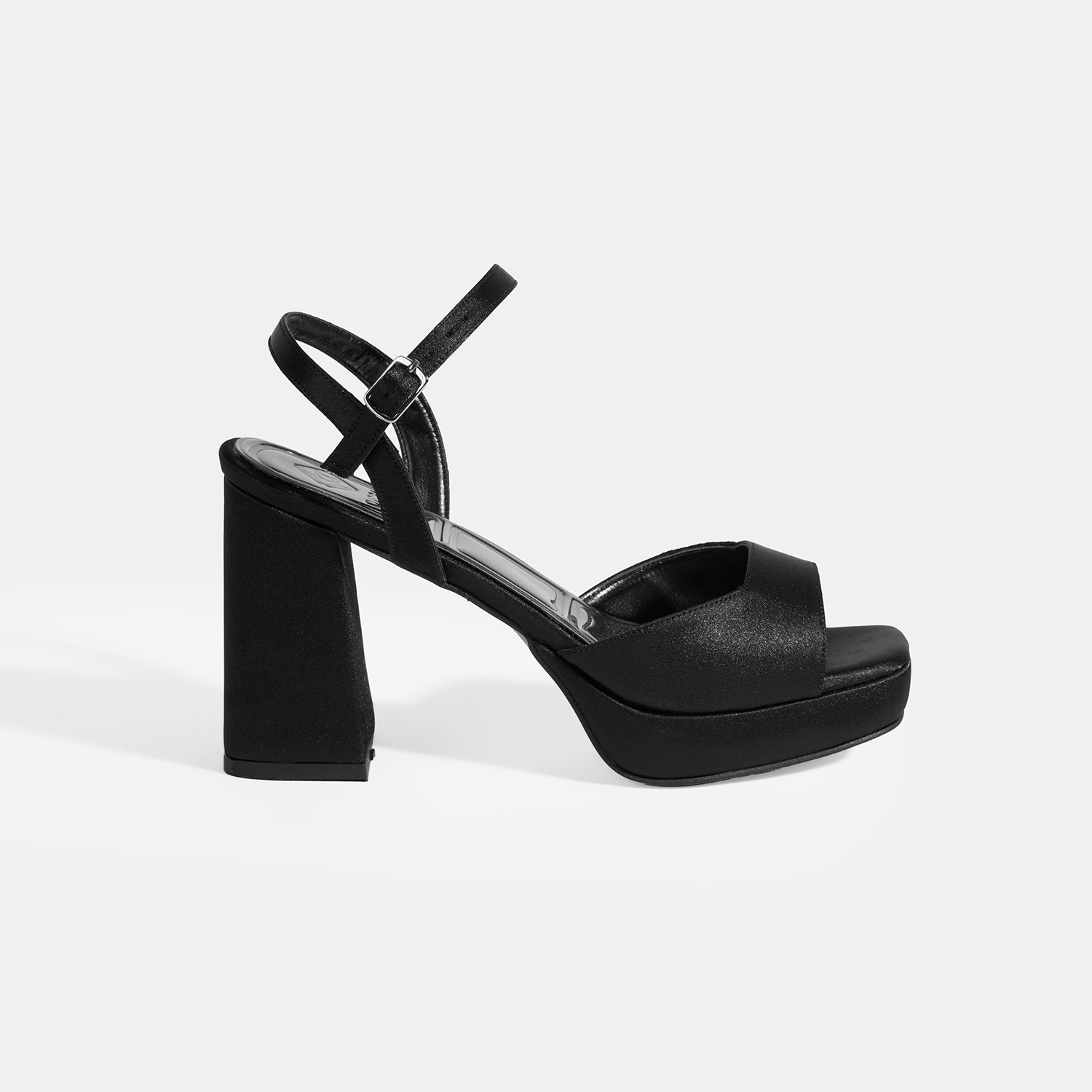 Pu iç tabanlı, pu astarlı, ayarlanabilir metal tokalı, neolit tabanlı, platform topuklu kadın sandalet.