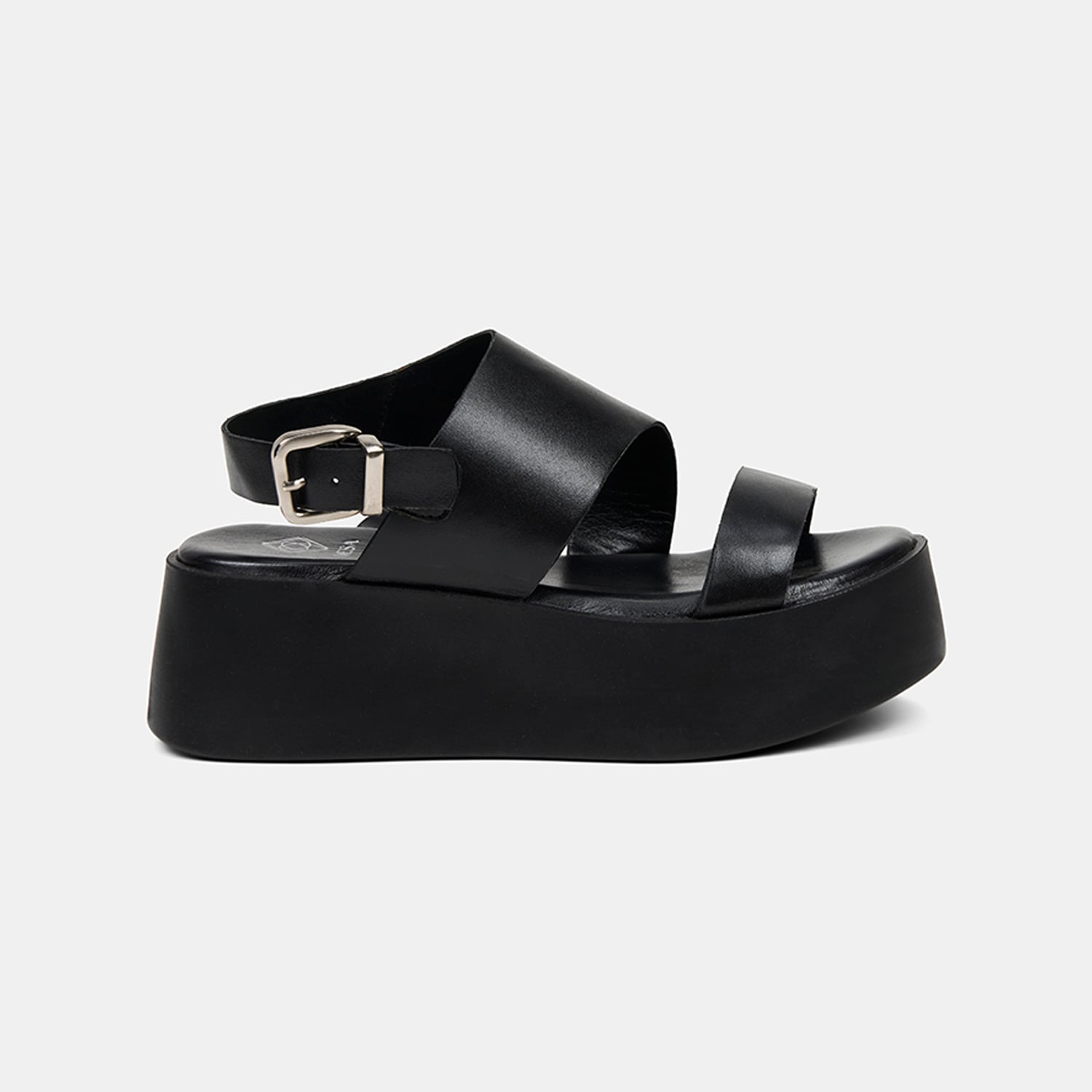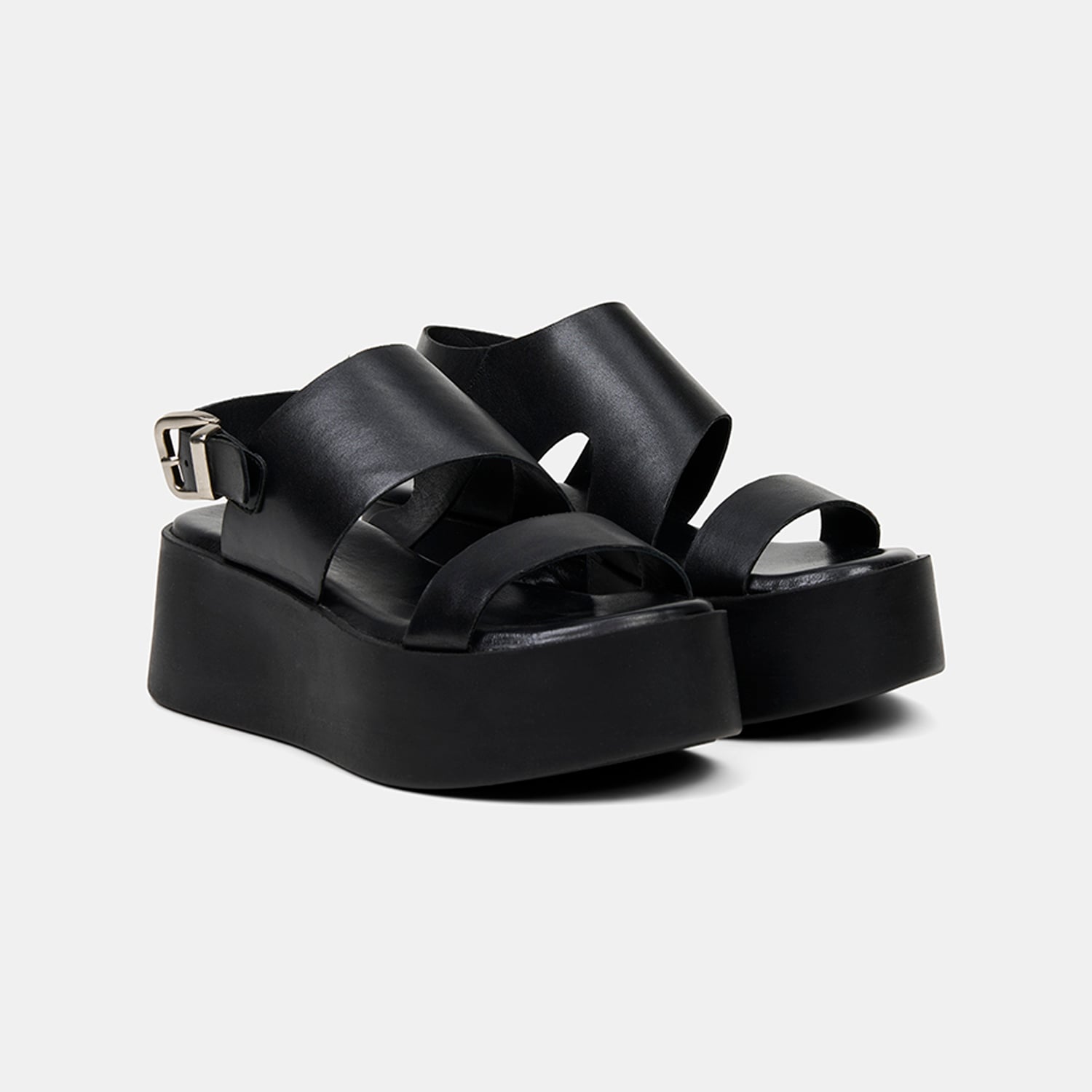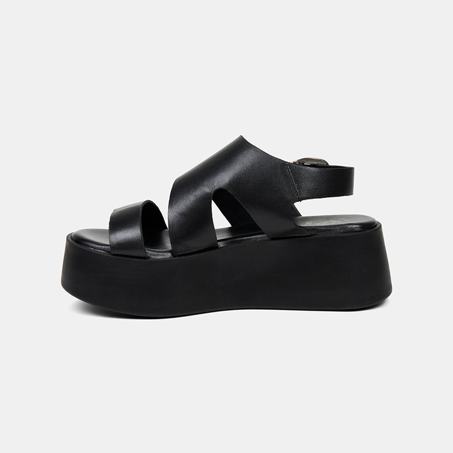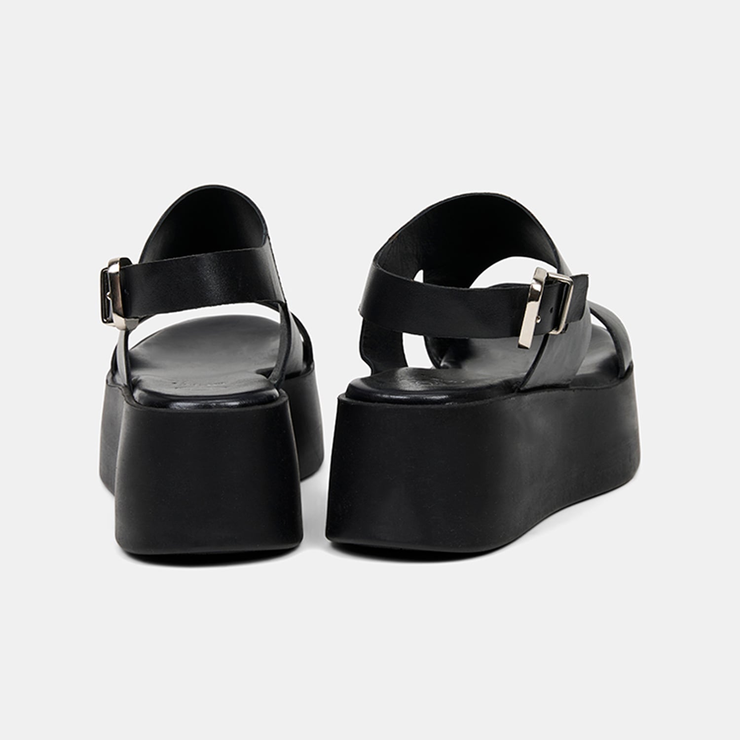Kadın Siyah Tokalı Kalın Bantlı Dolgu Topuklu Deri Sandalet