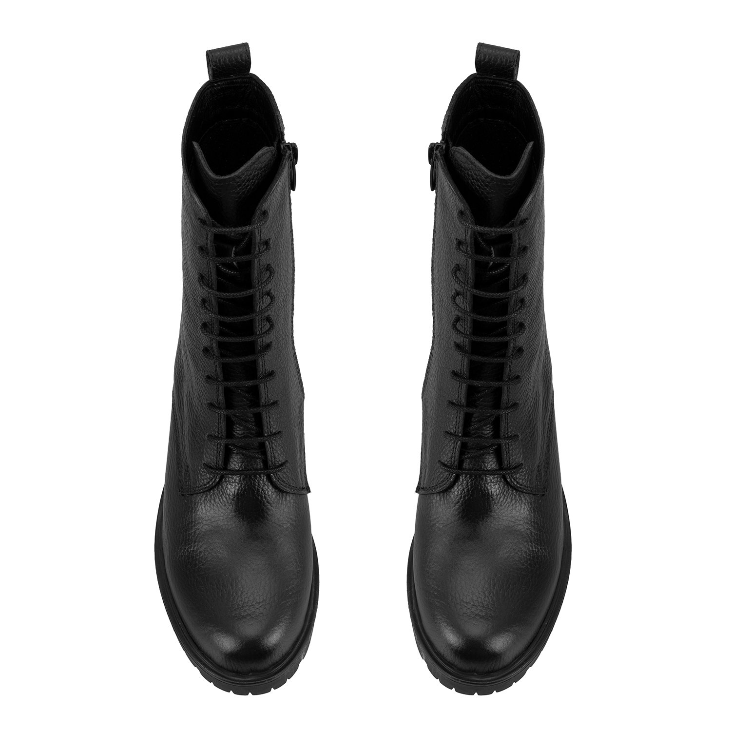 %100 deri, deri iç tabanlı, tekstil astarlı, kauçuk tabanlı, içten fermuarlı, bağcıklı kadın bot.