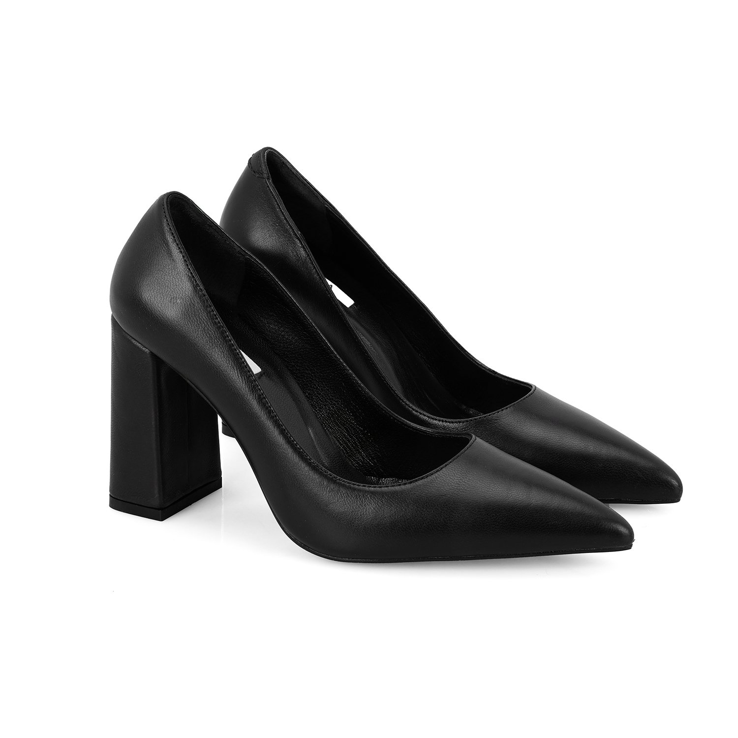 Kadın Siyah Topuklu Deri Klasik Ayakkabı