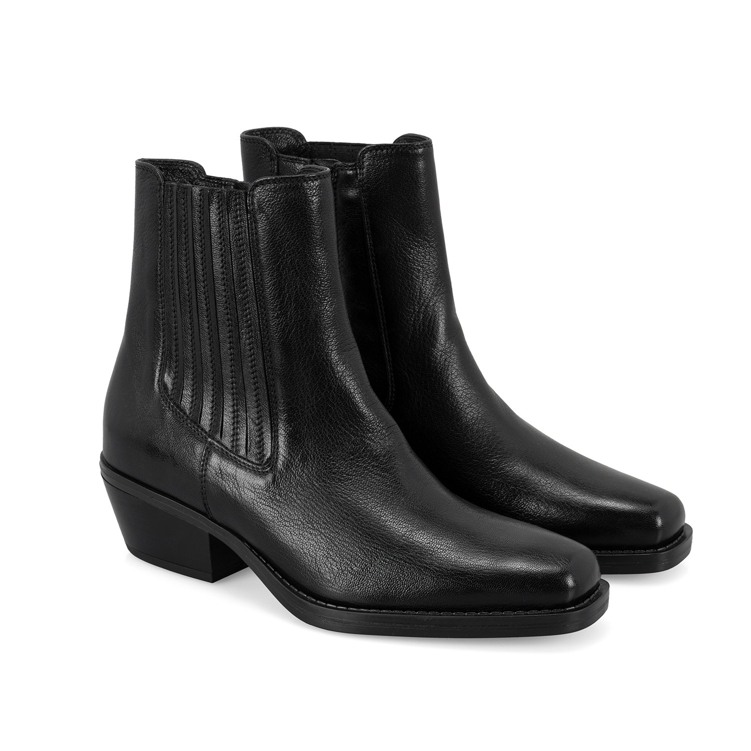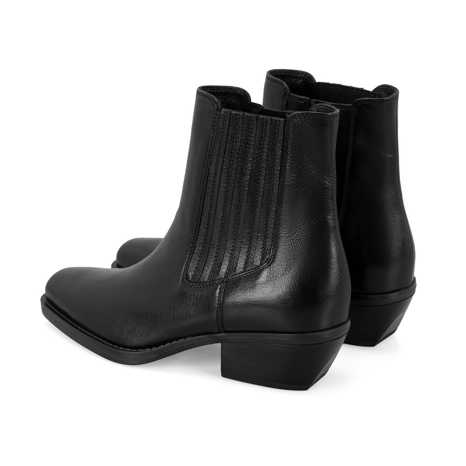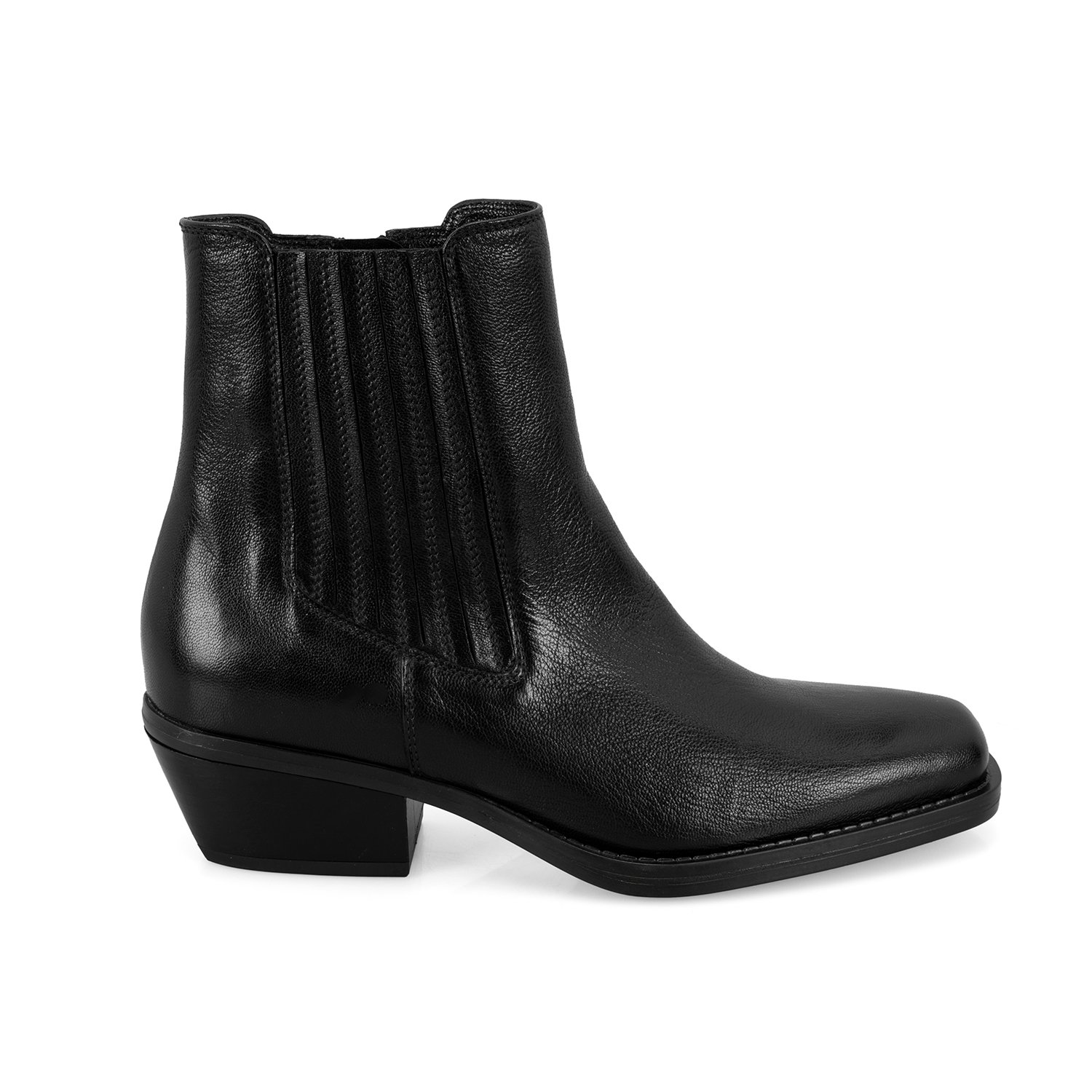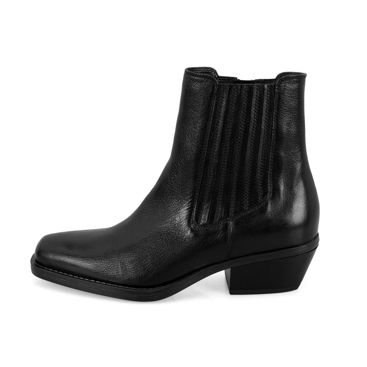 Kadın Siyah Topuklu Deri Kovboy Botu