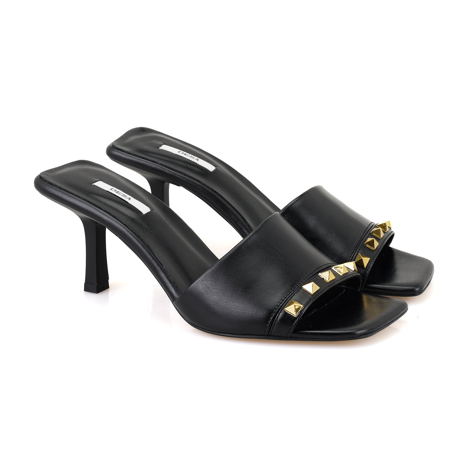 %100 deri, mostra deri, iç astarlı, neolit taban, kadın topuklu deri terlik.