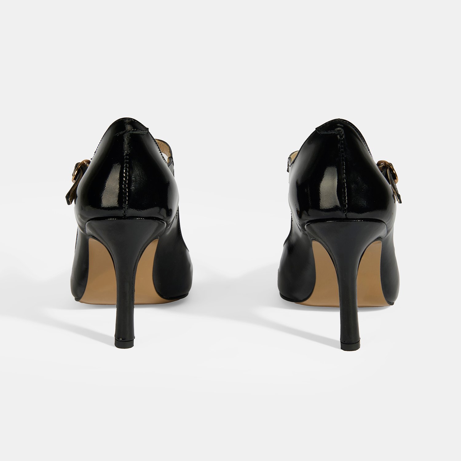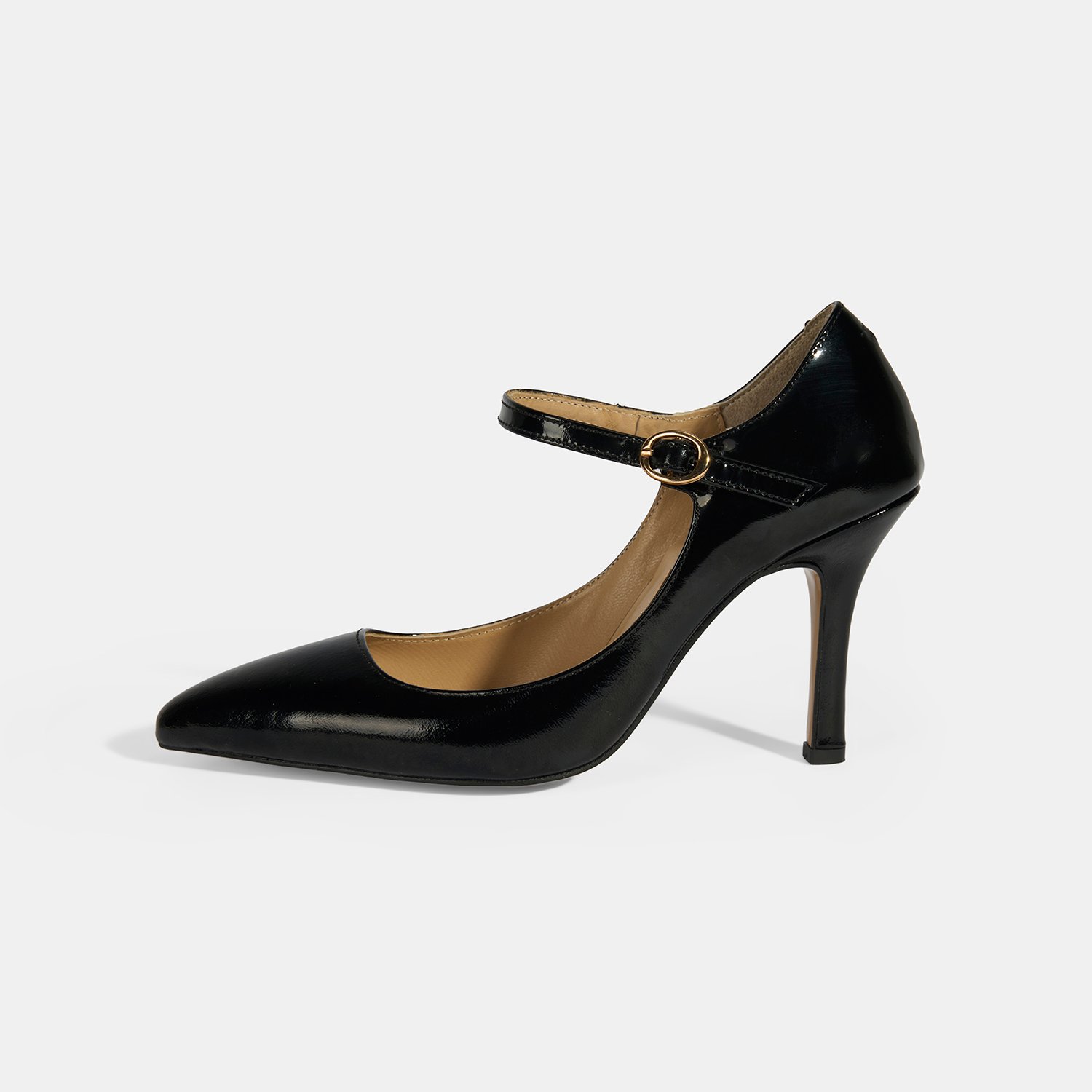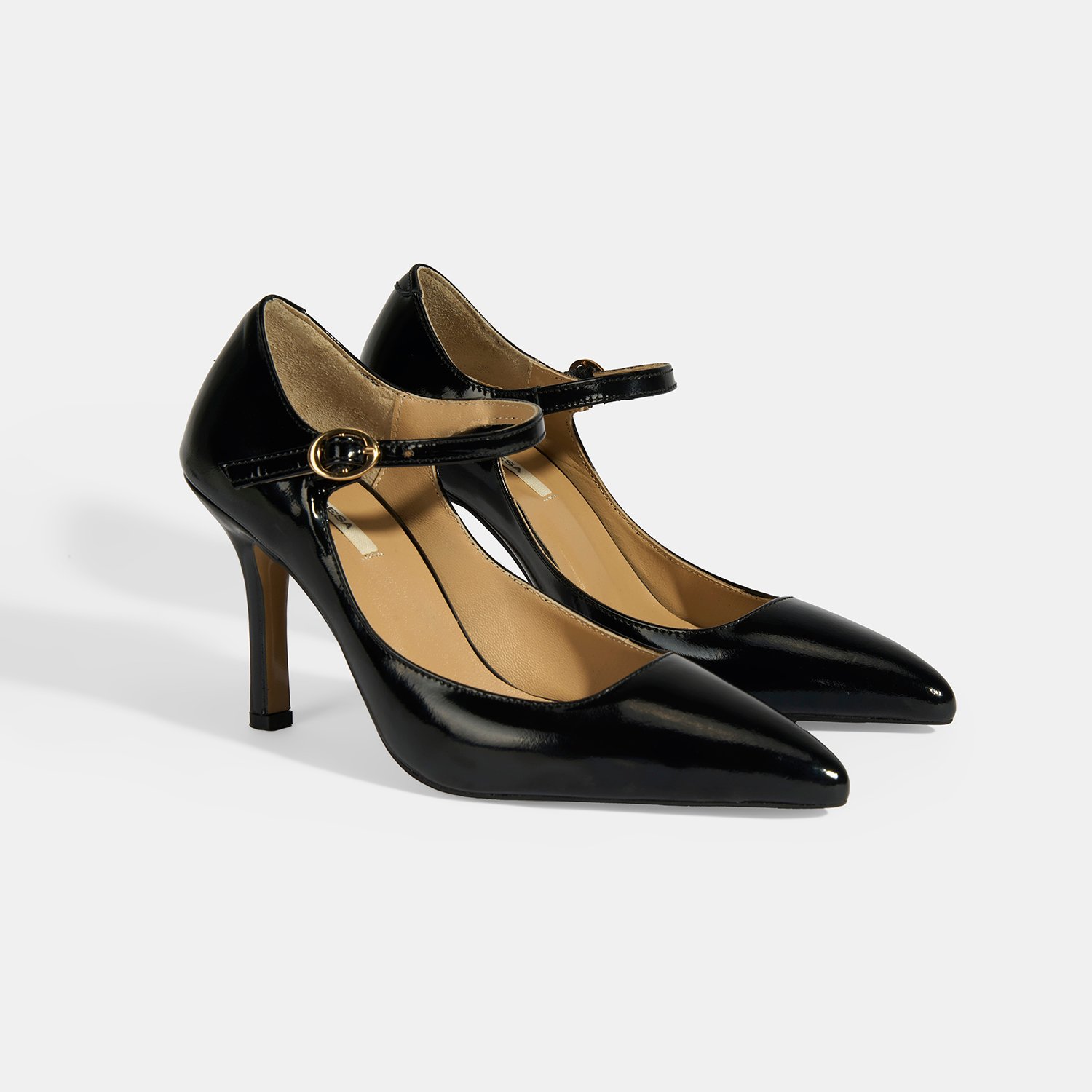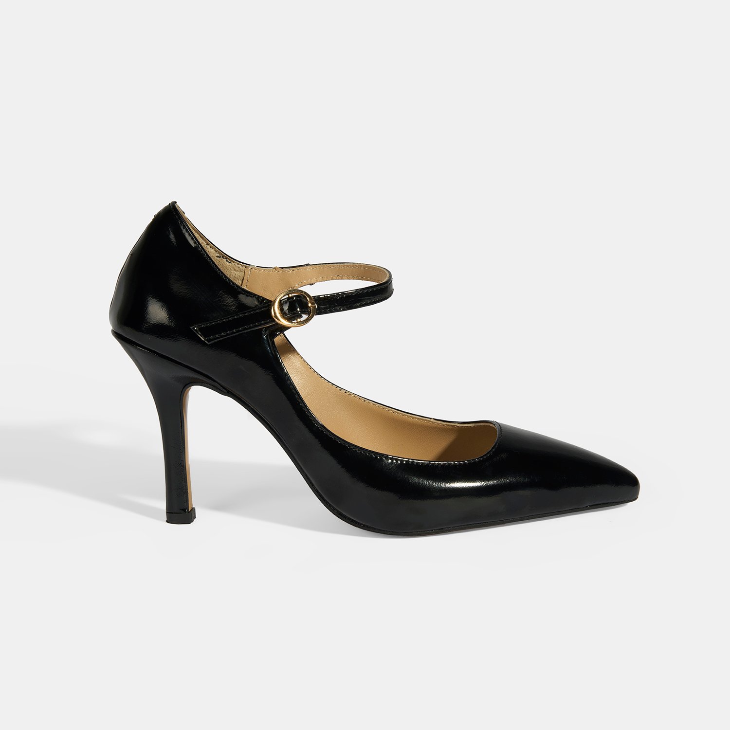 %100 rugan deri, deri iç tabanlı, deri astarlı, ayarlanabilir metal tokalı, neolit tabanlı, kadın topuklu ayakkabı.