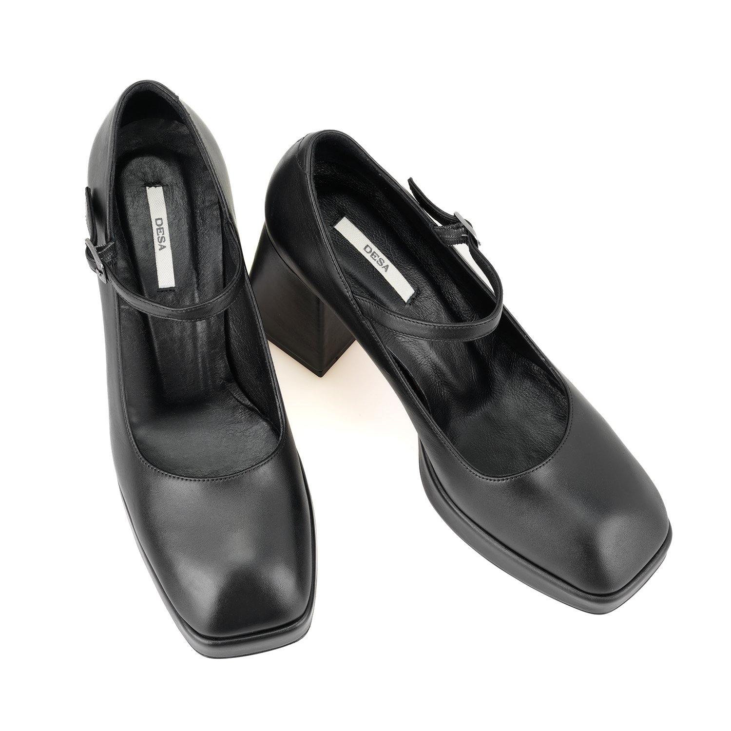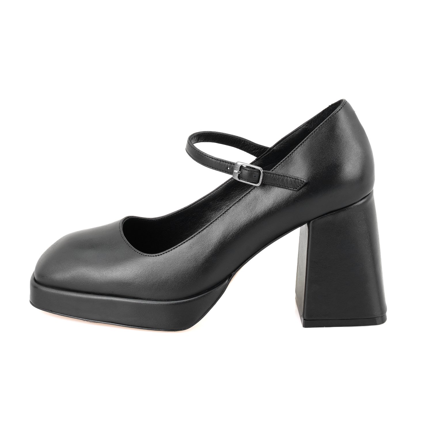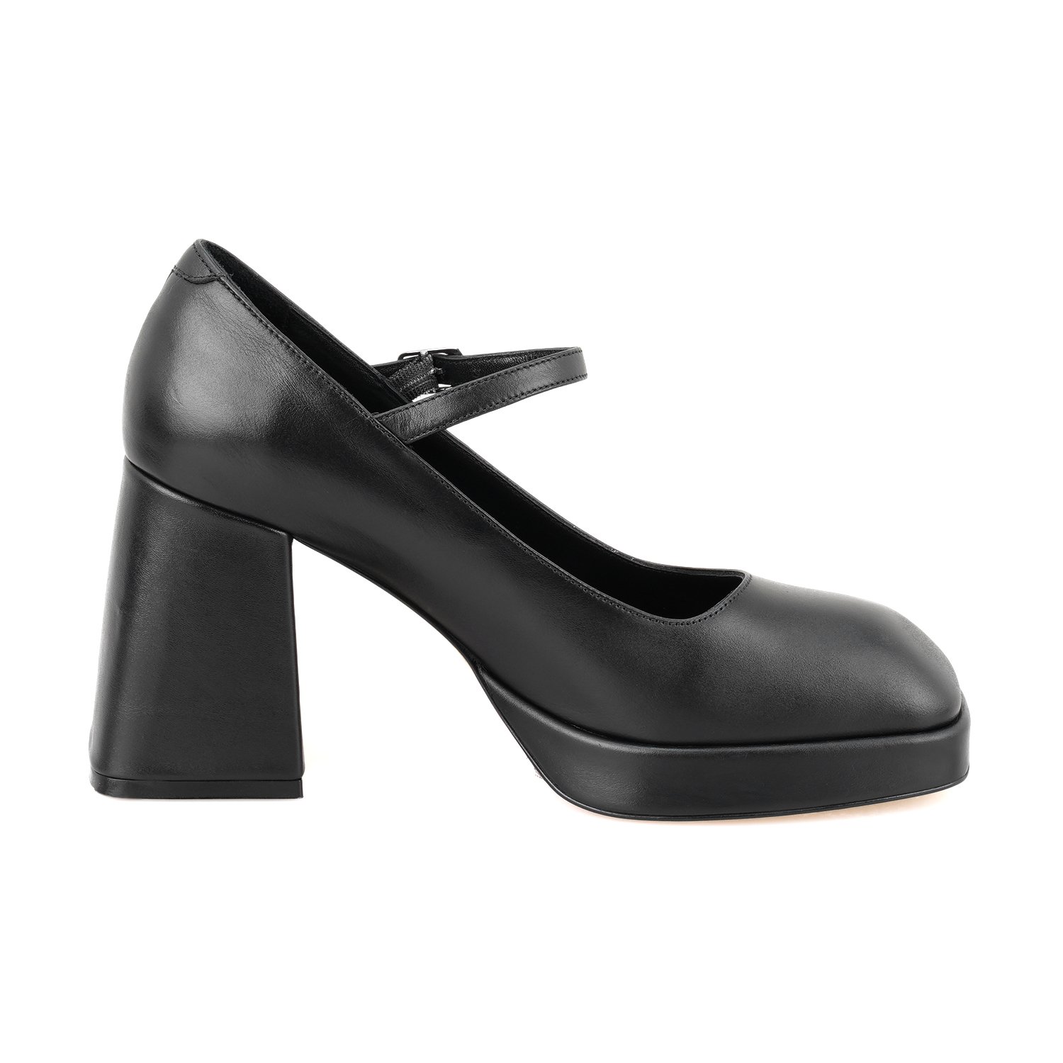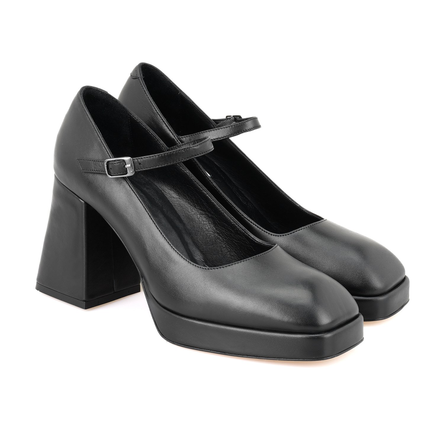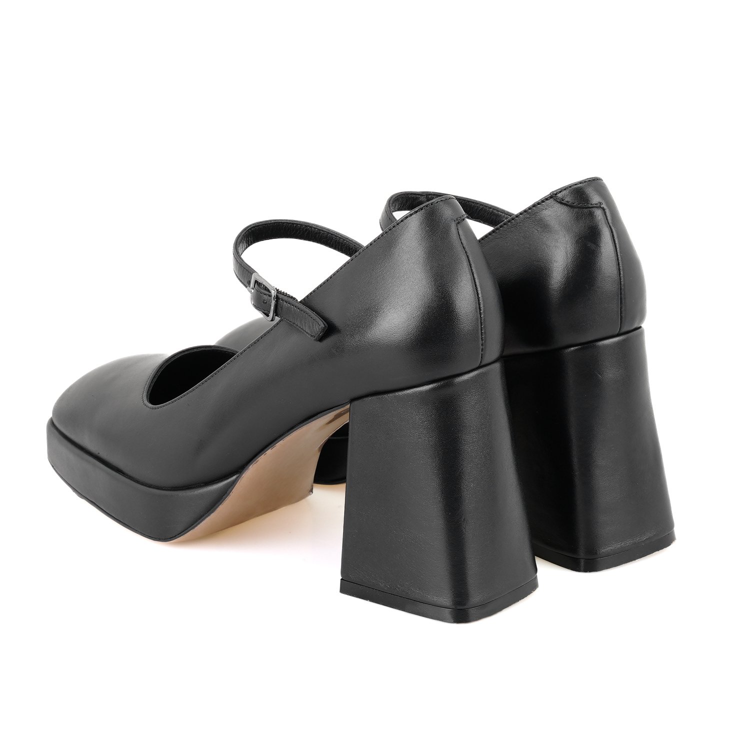 Kadın Siyah Topuklu Mary Jane Deri Klasik Ayakkabı