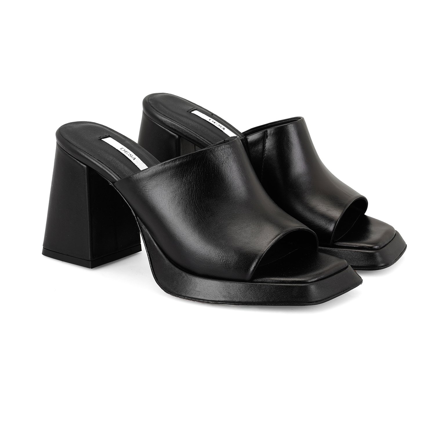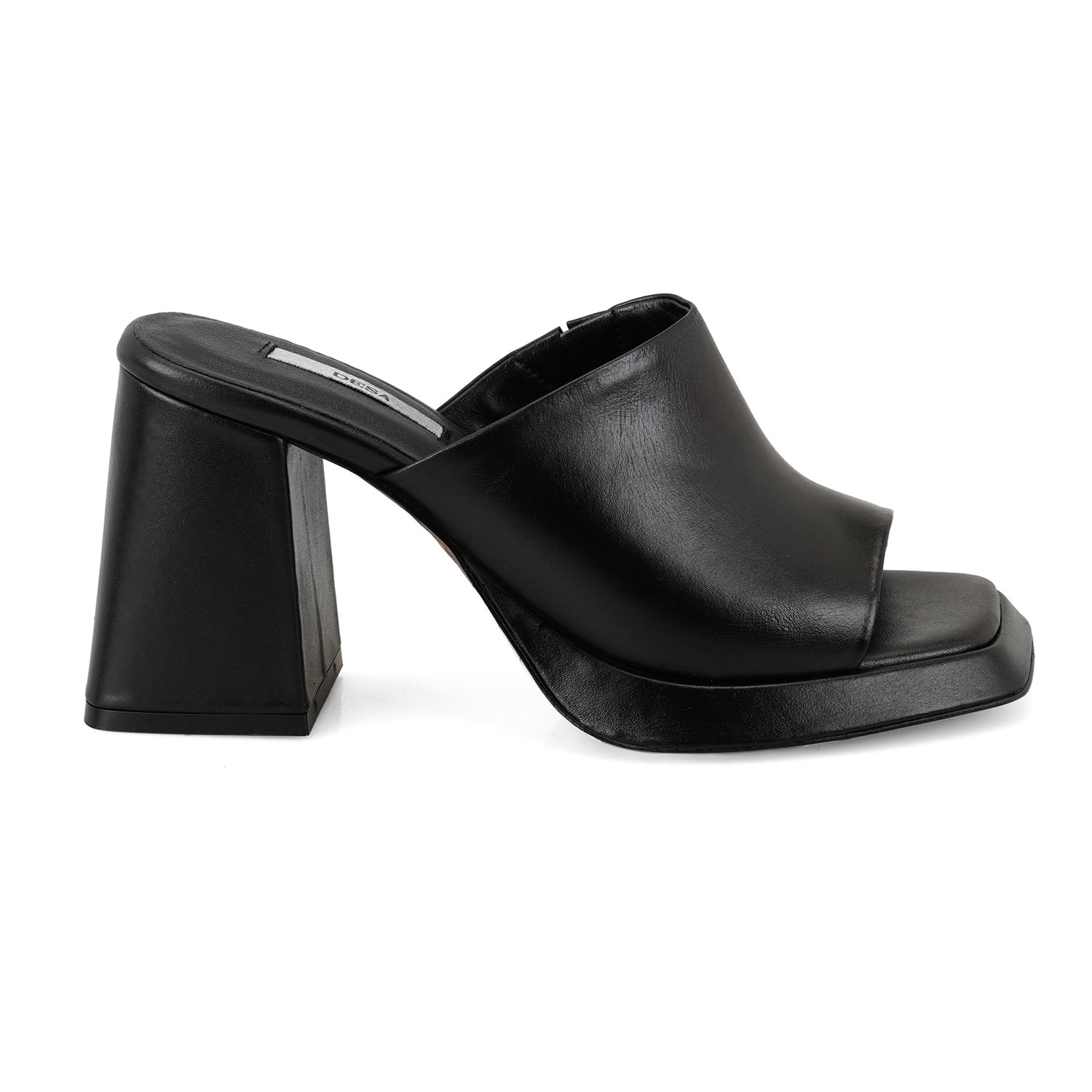 Kadın Siyah Topuklu Napa Deri Terlik