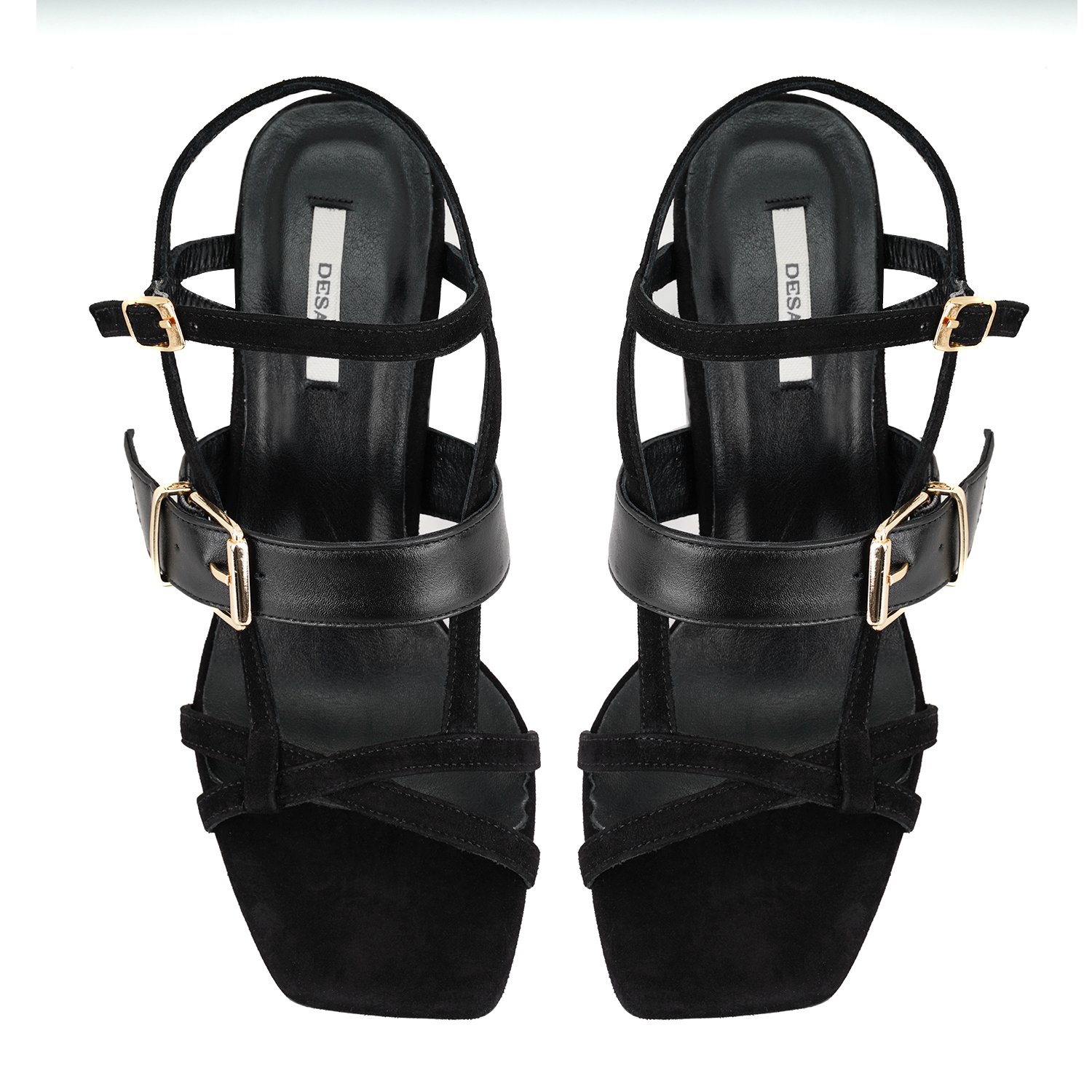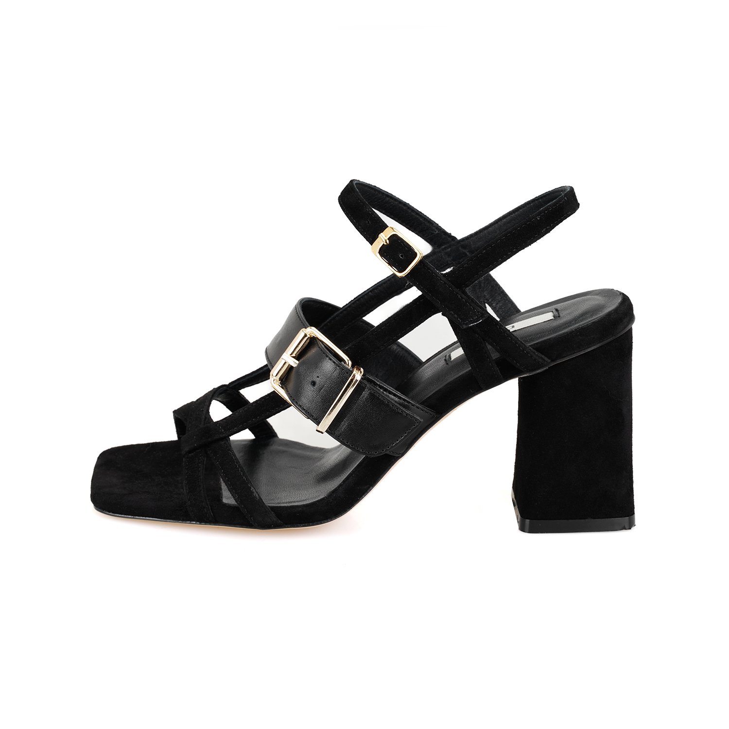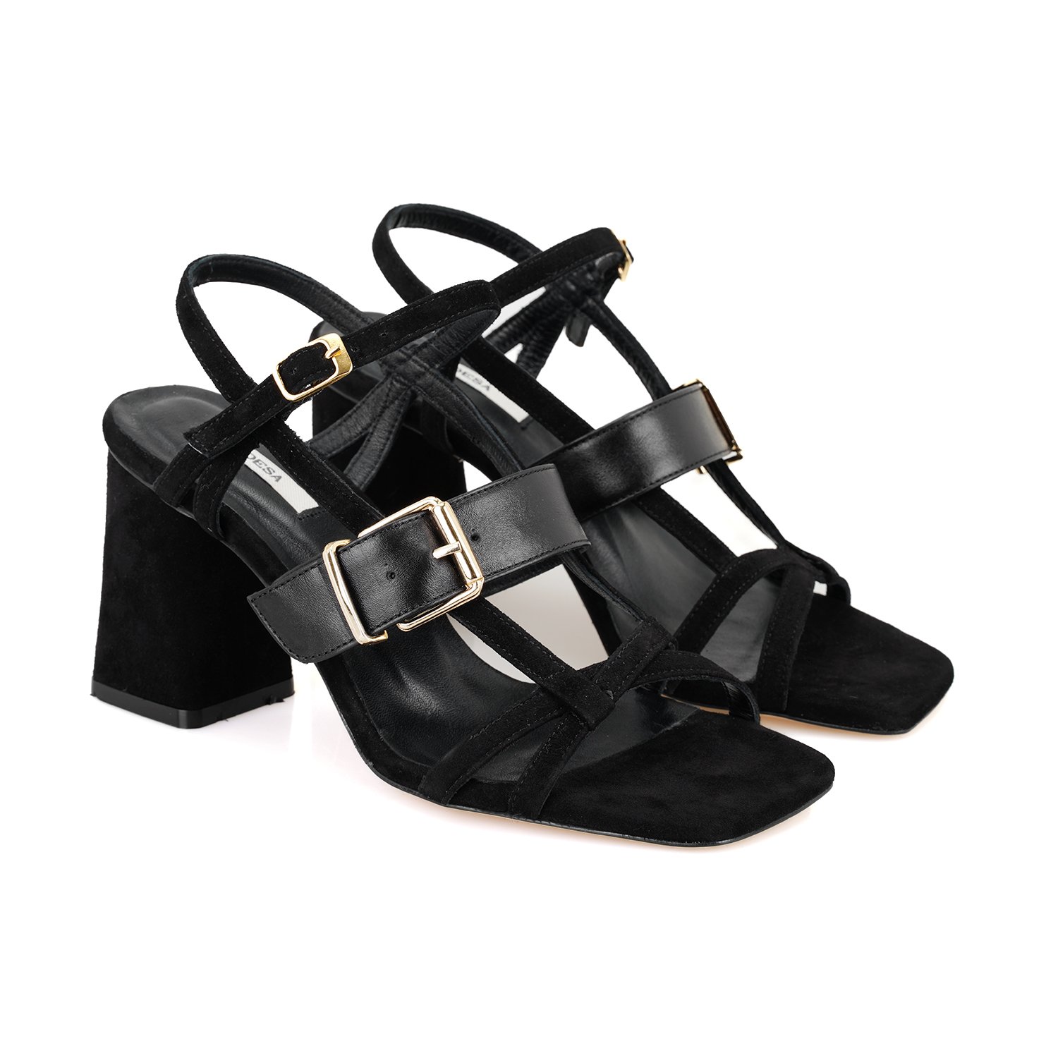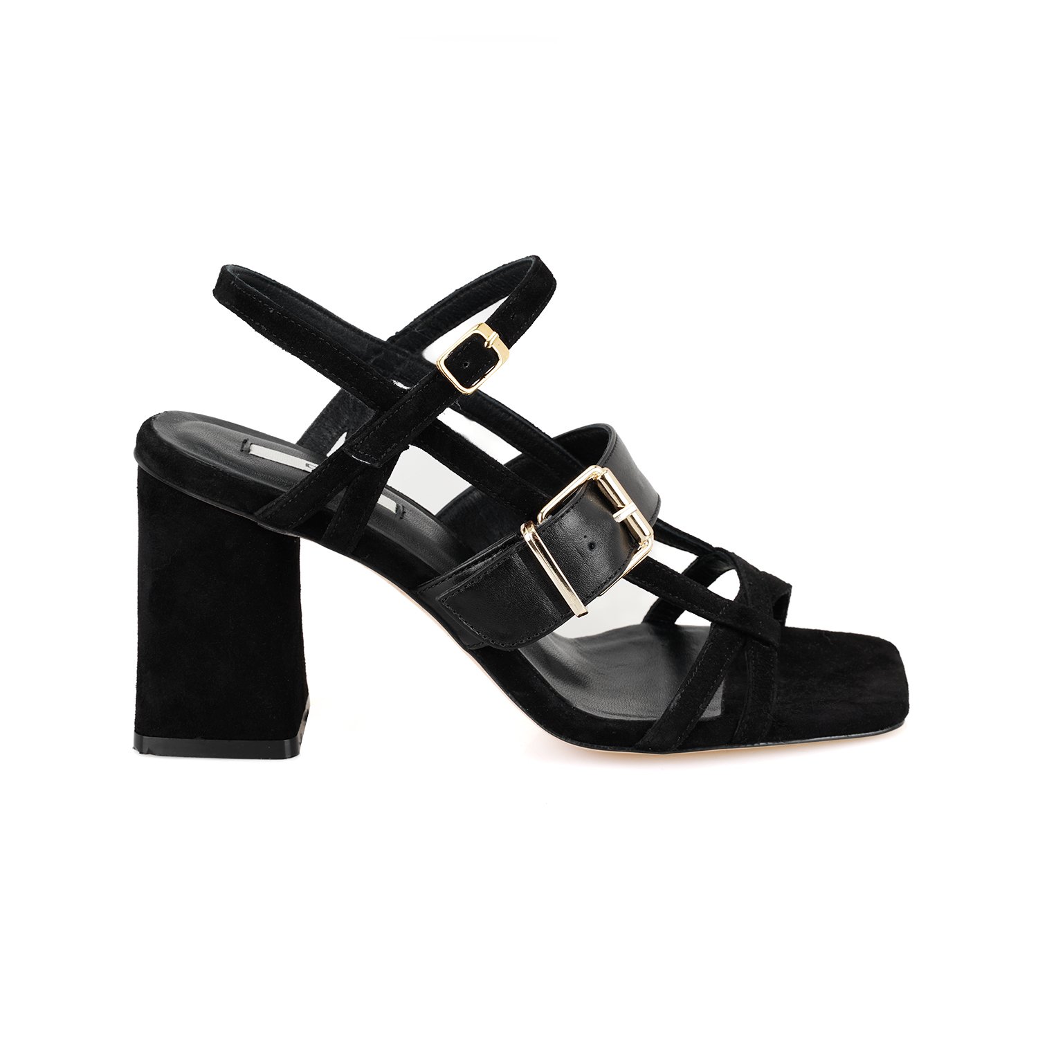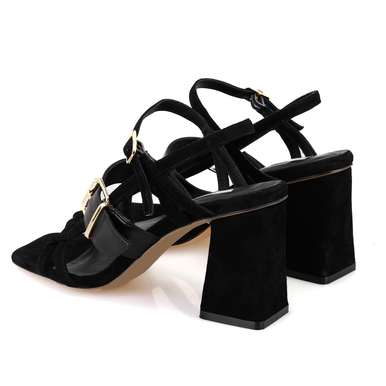 Kadın Siyah Topuklu Süet Deri Sandalet