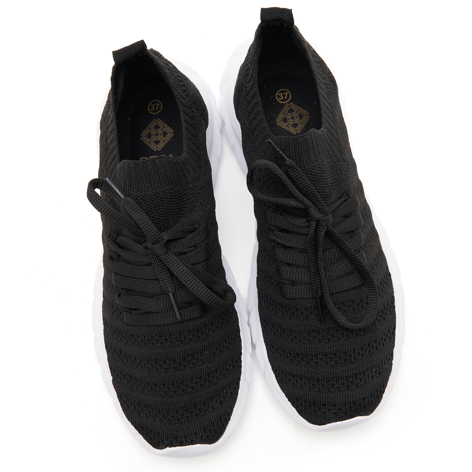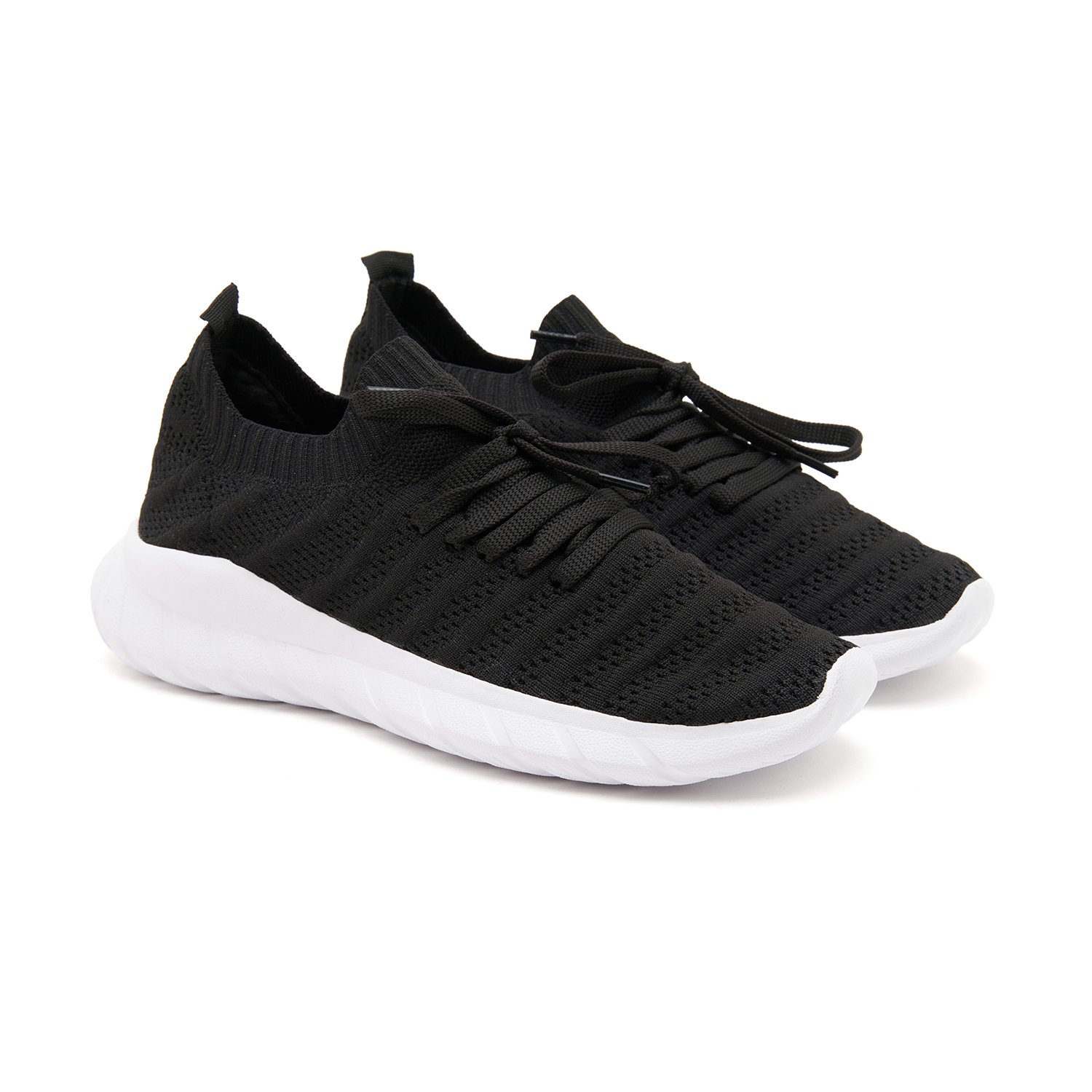 Triko, kumaş iç tabanlı, bağcıklı, hafif ve esnek kadın çorap spor ayakkabı.