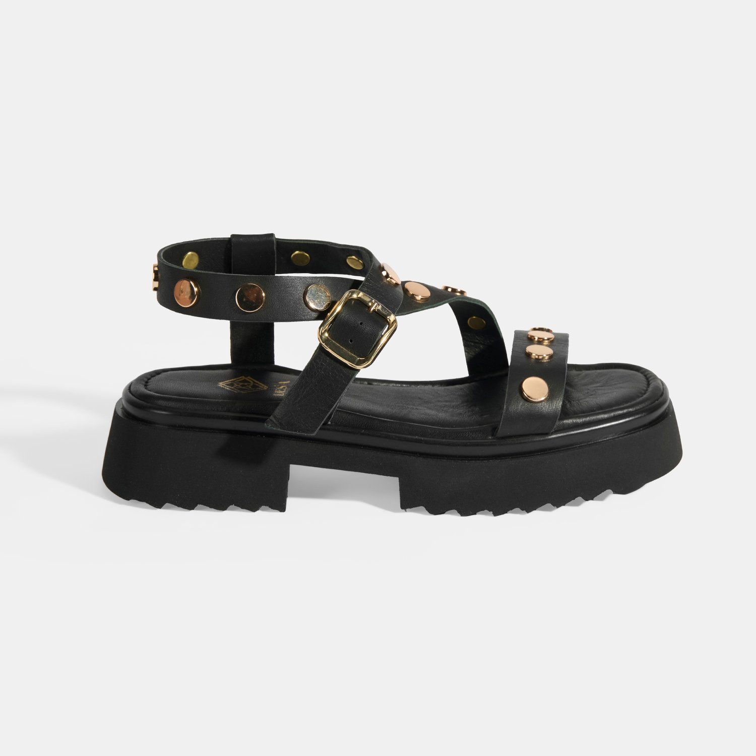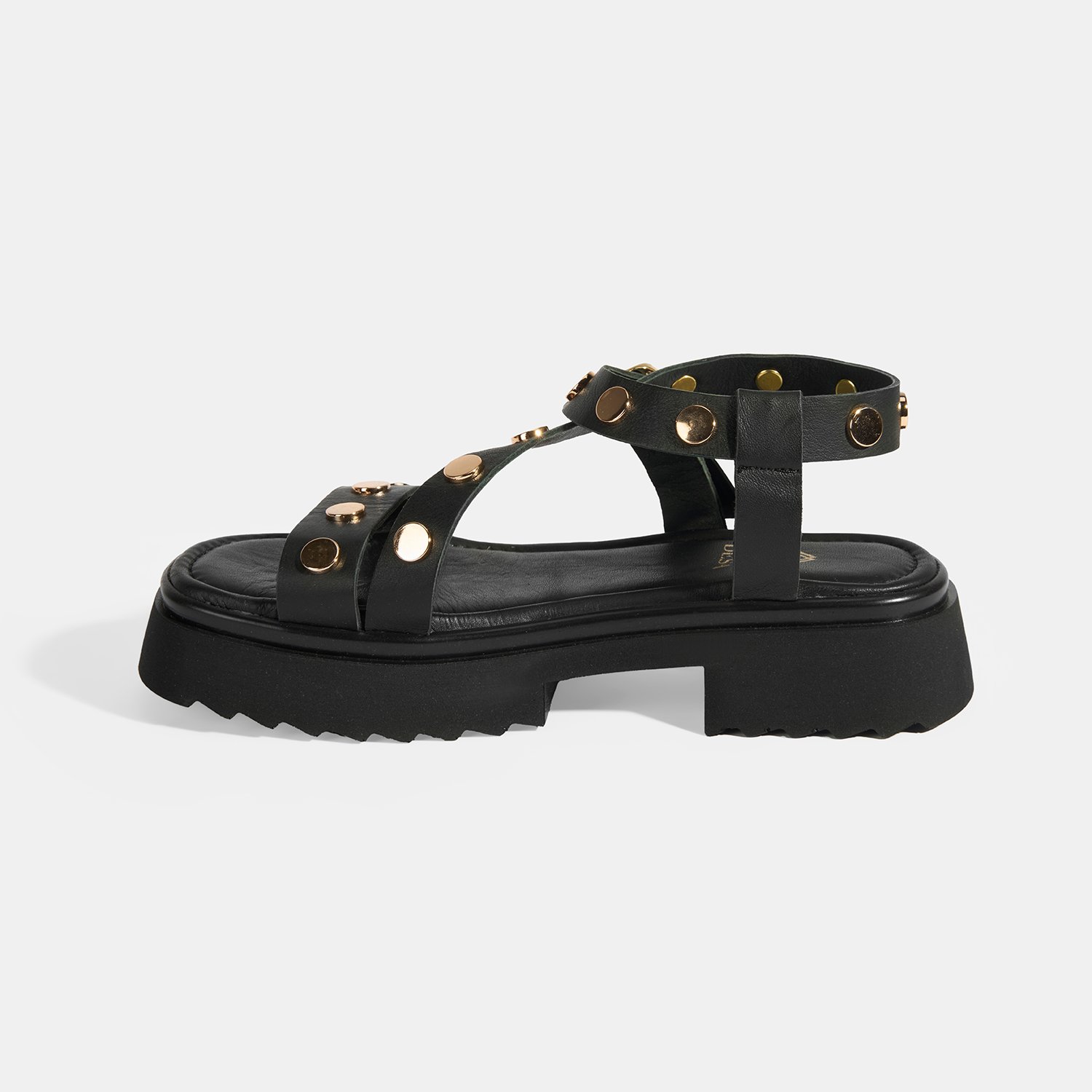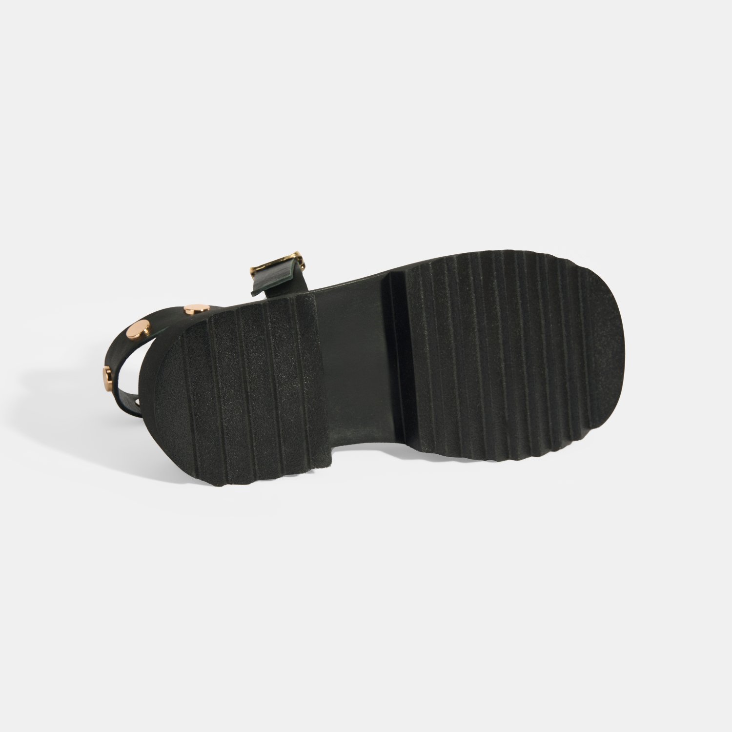 Kadın Siyah Zımba Detaylı Deri Sandalet