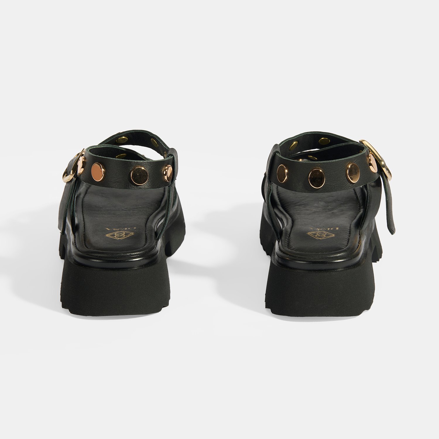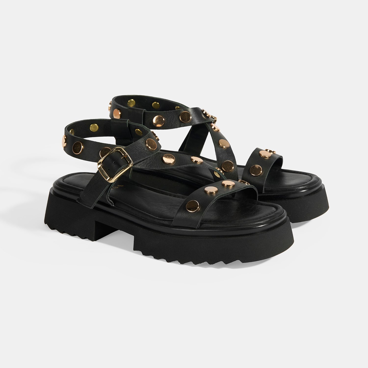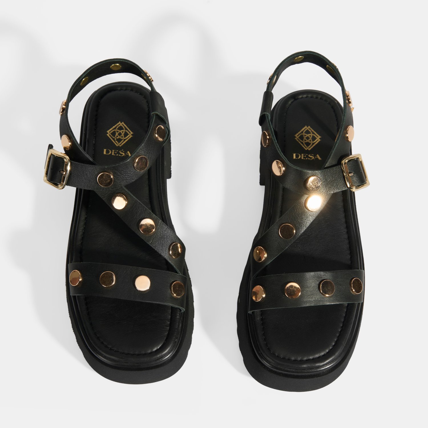 Kadın Siyah Zımba Detaylı Deri Sandalet