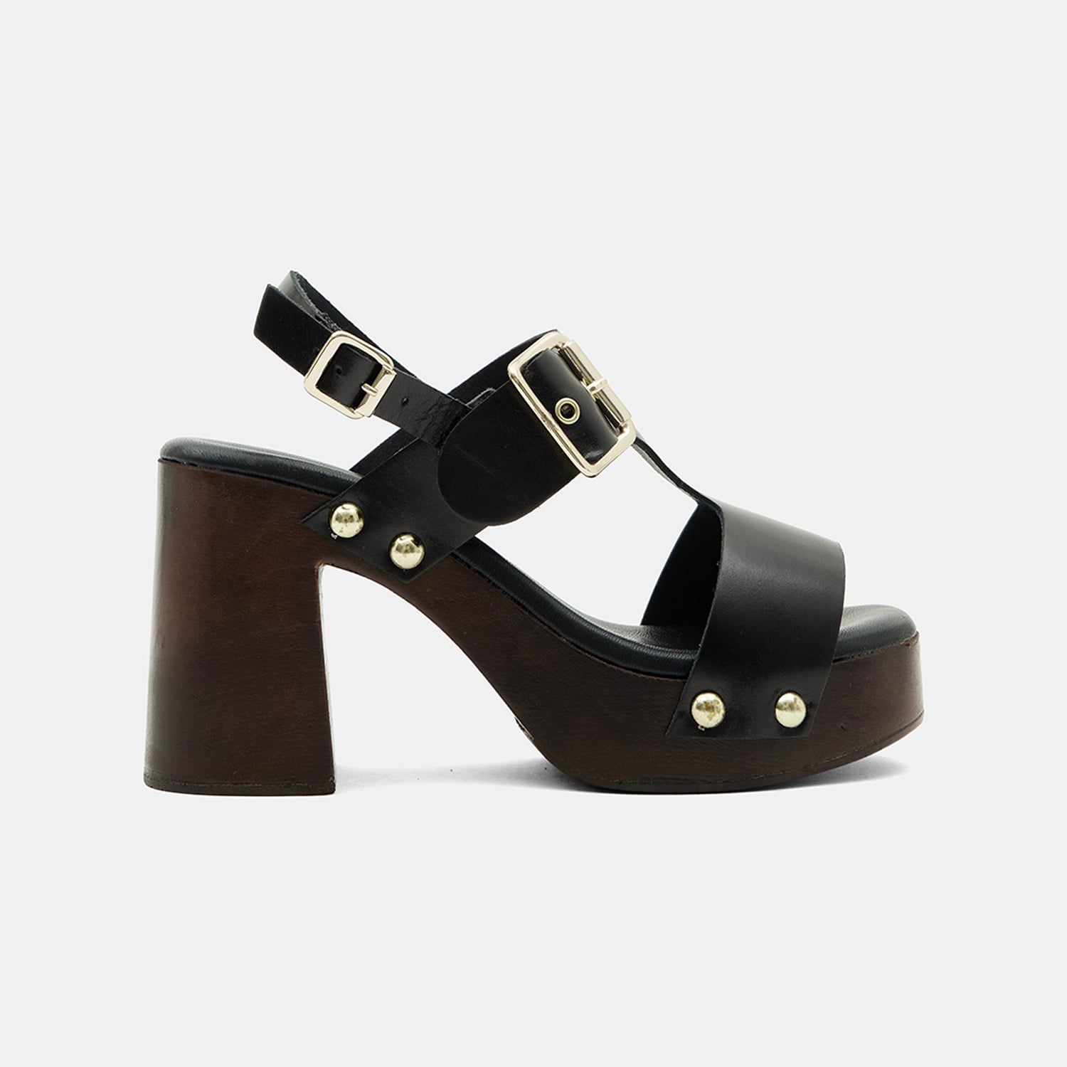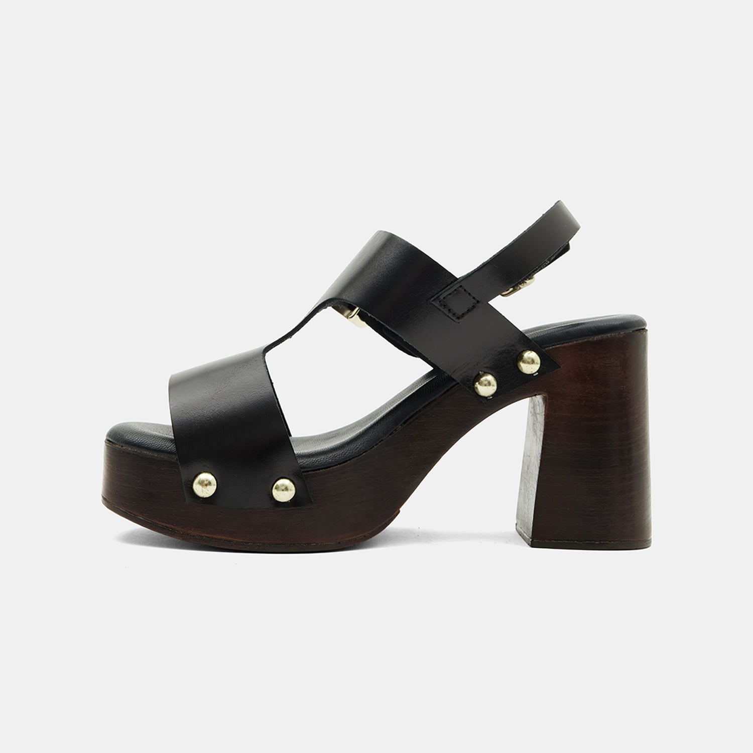 Kadın Siyah Zımbalı Platform Topuklu Deri Sandalet