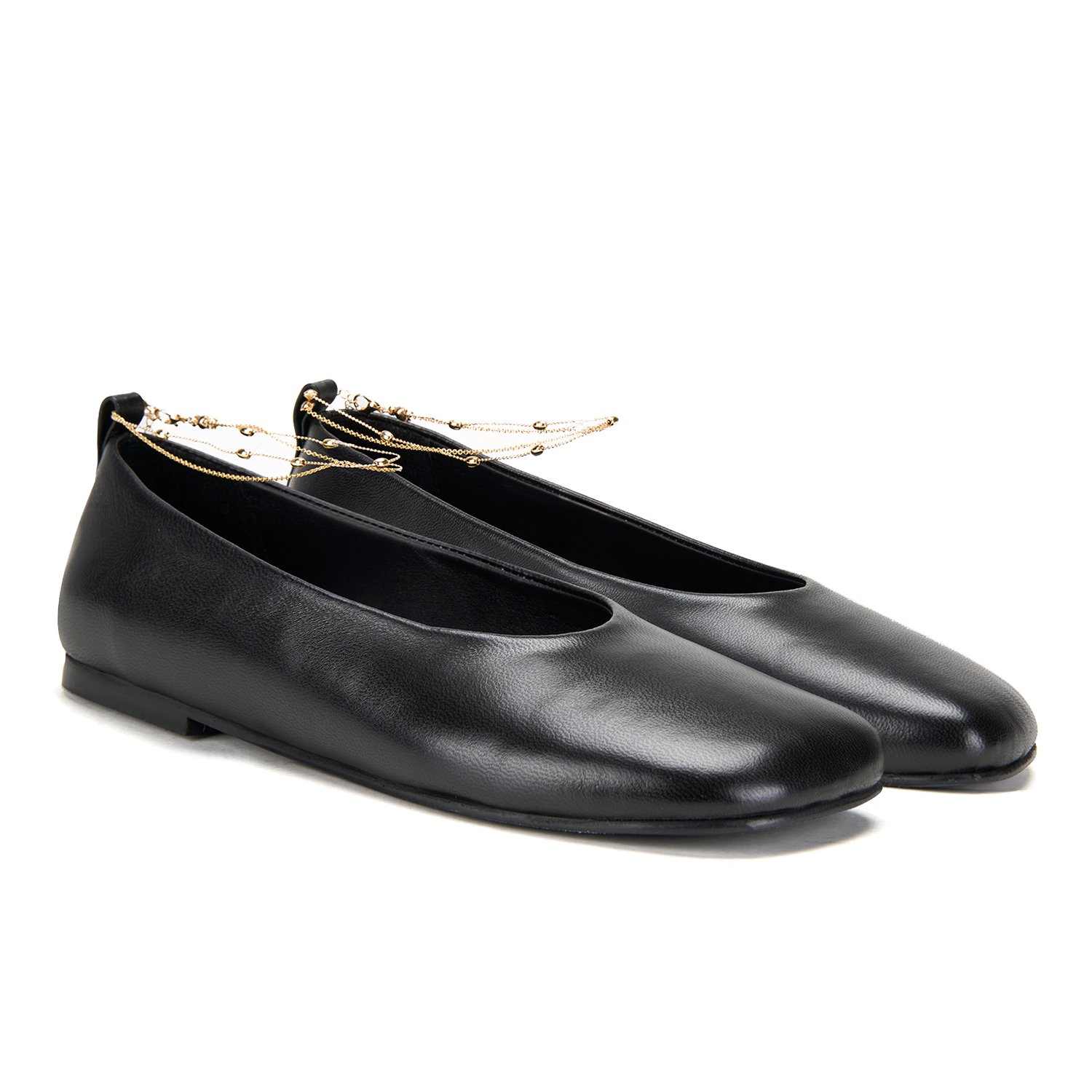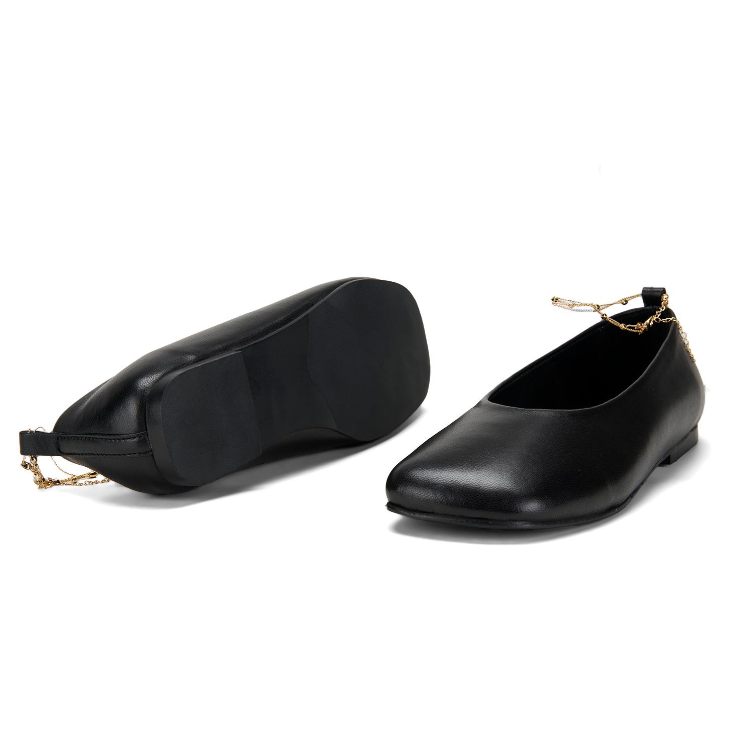%100 Deri , Deri iç tabanlı, Deri Astarlı, Neolit Tabanlı, çıkarılabilir metal bilezik aksesuar detaylı, Kadın babet.