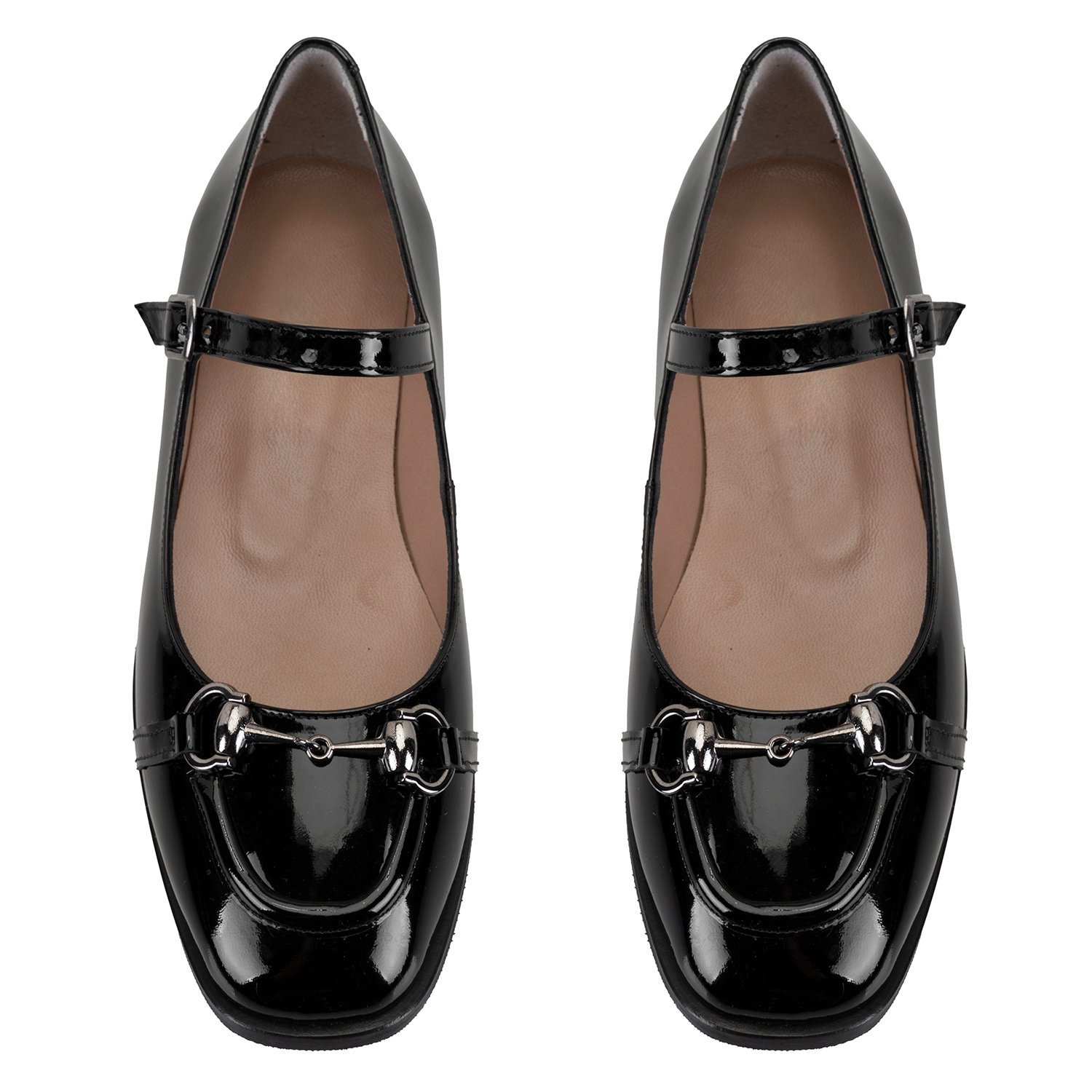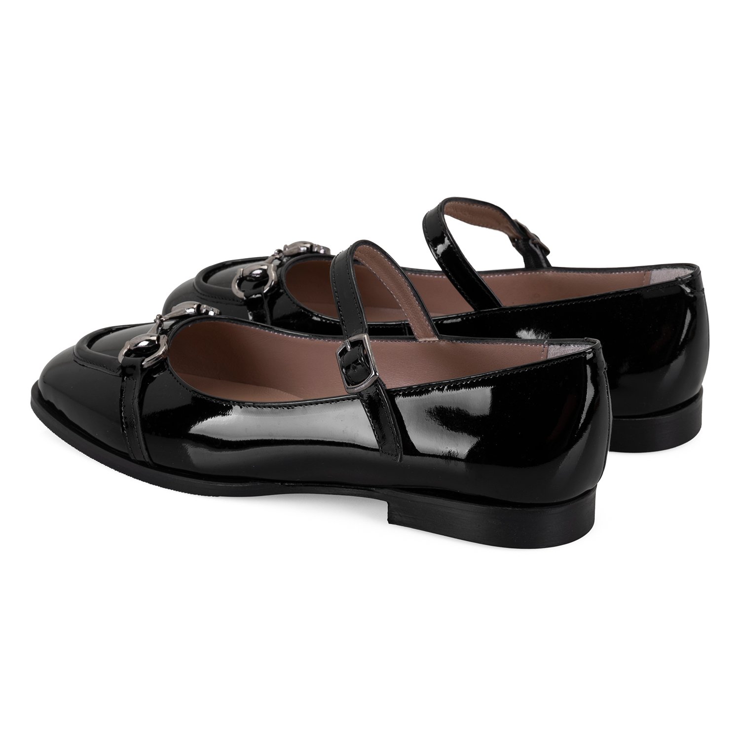 Kadın Siyah Zincir Detaylı Mary Jane Rugan Deri Babet