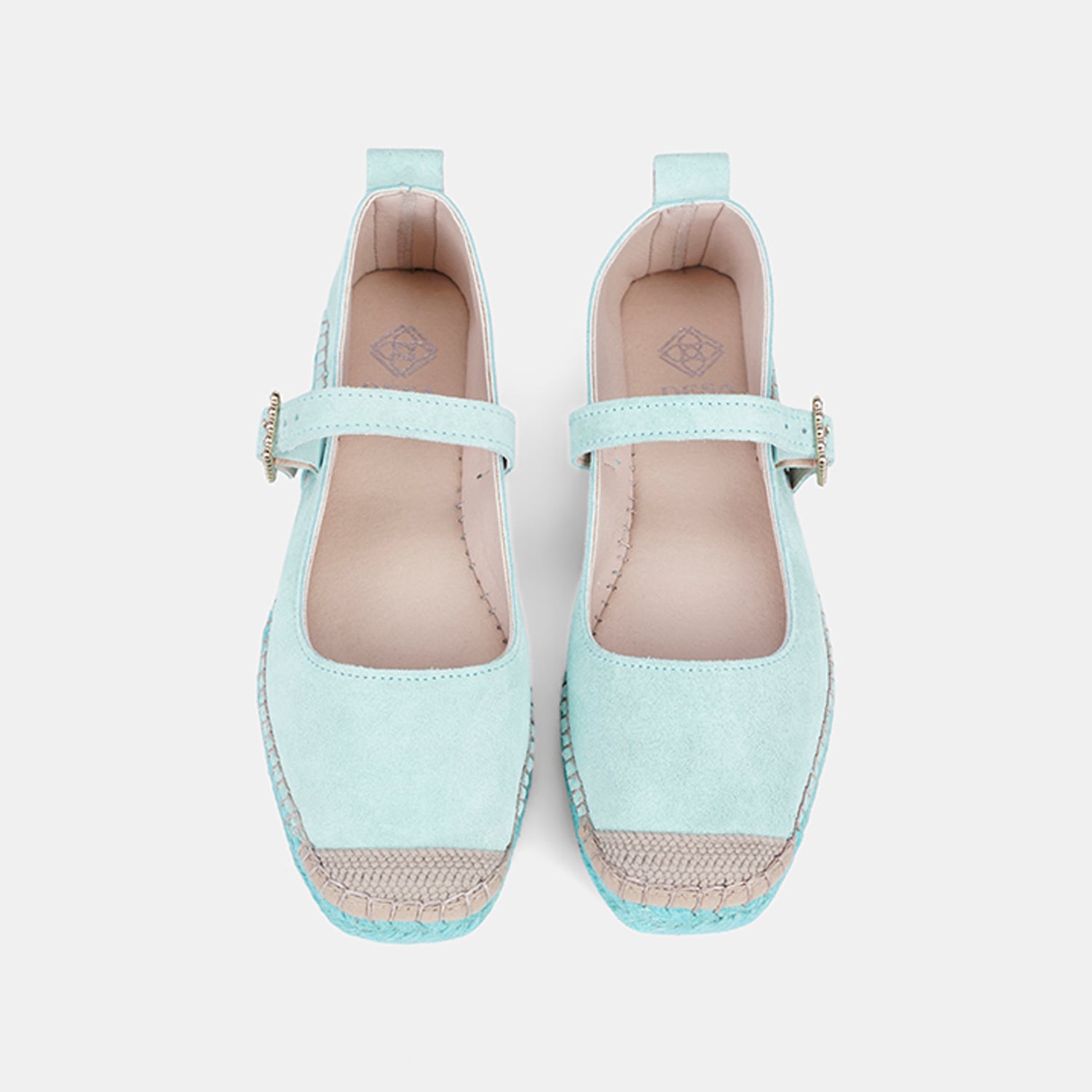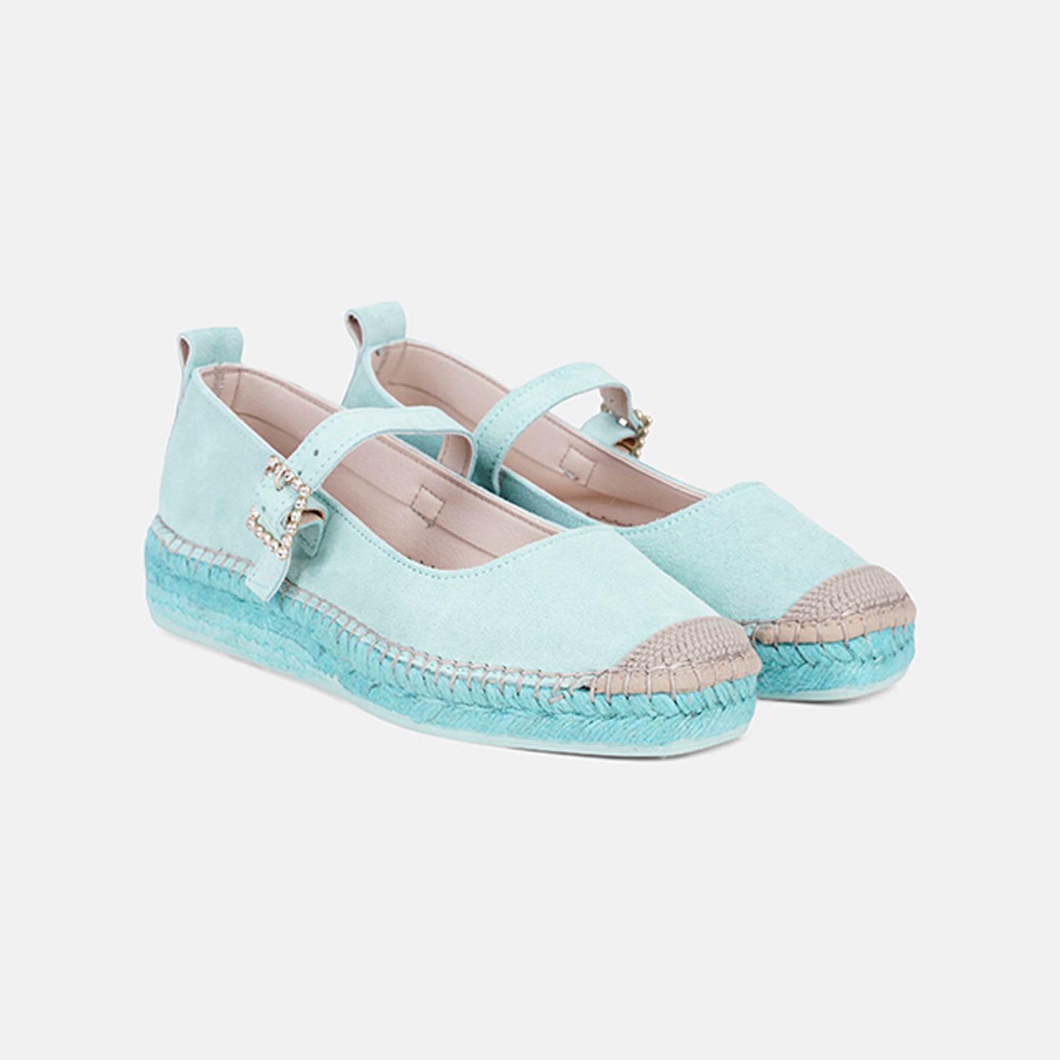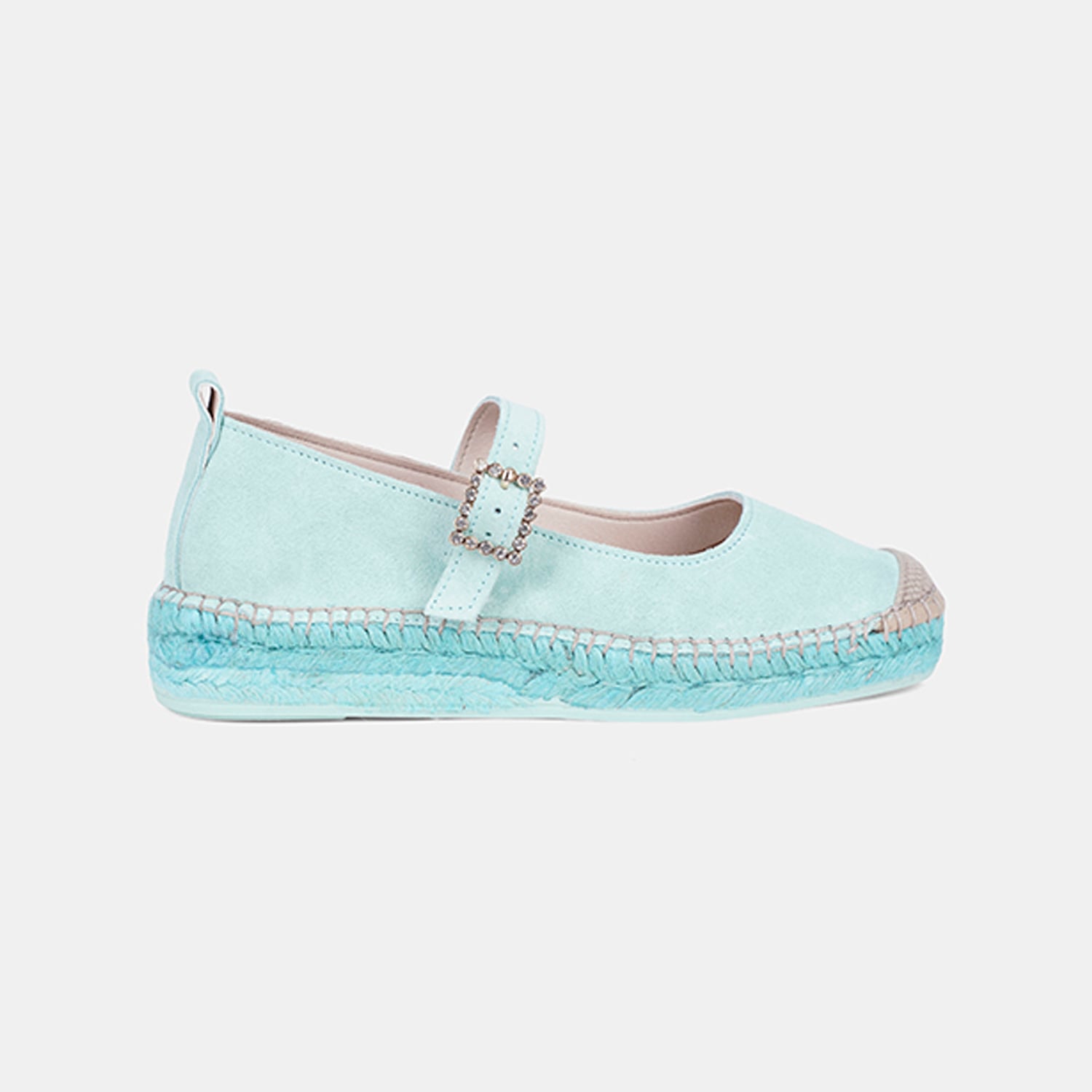 Kadın Su Yeşili Taşlı Toka Detaylı Süet Mary Jane Espadril