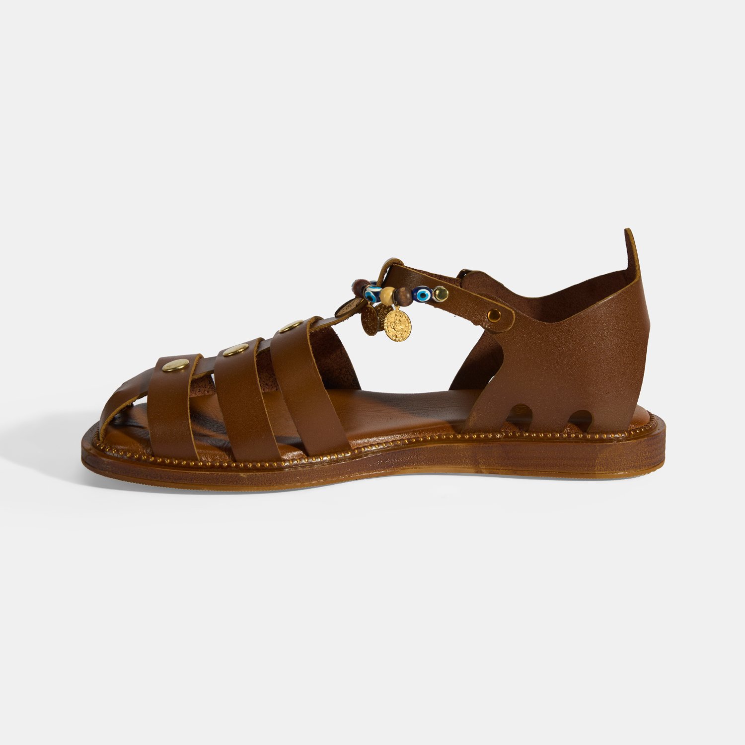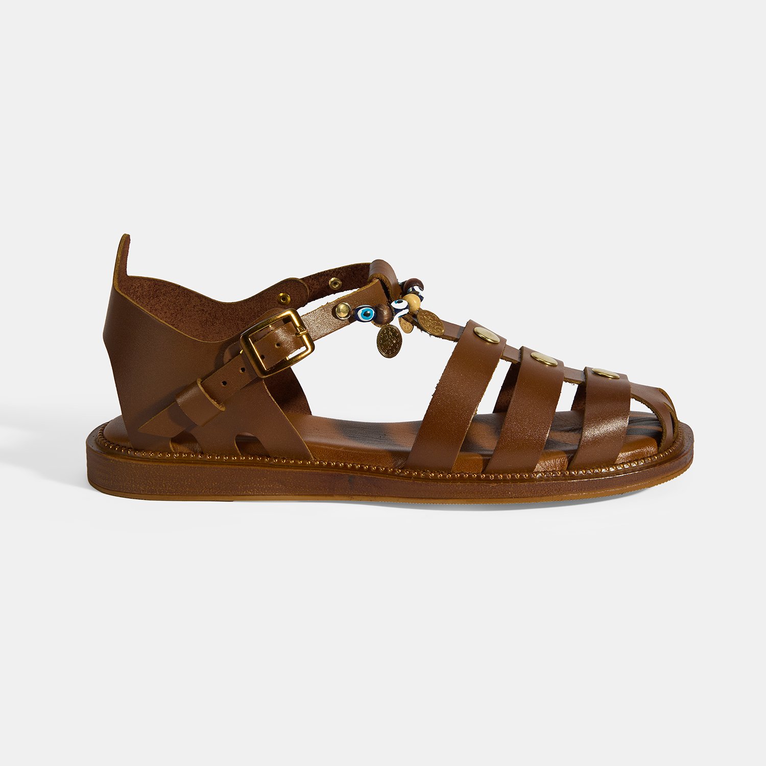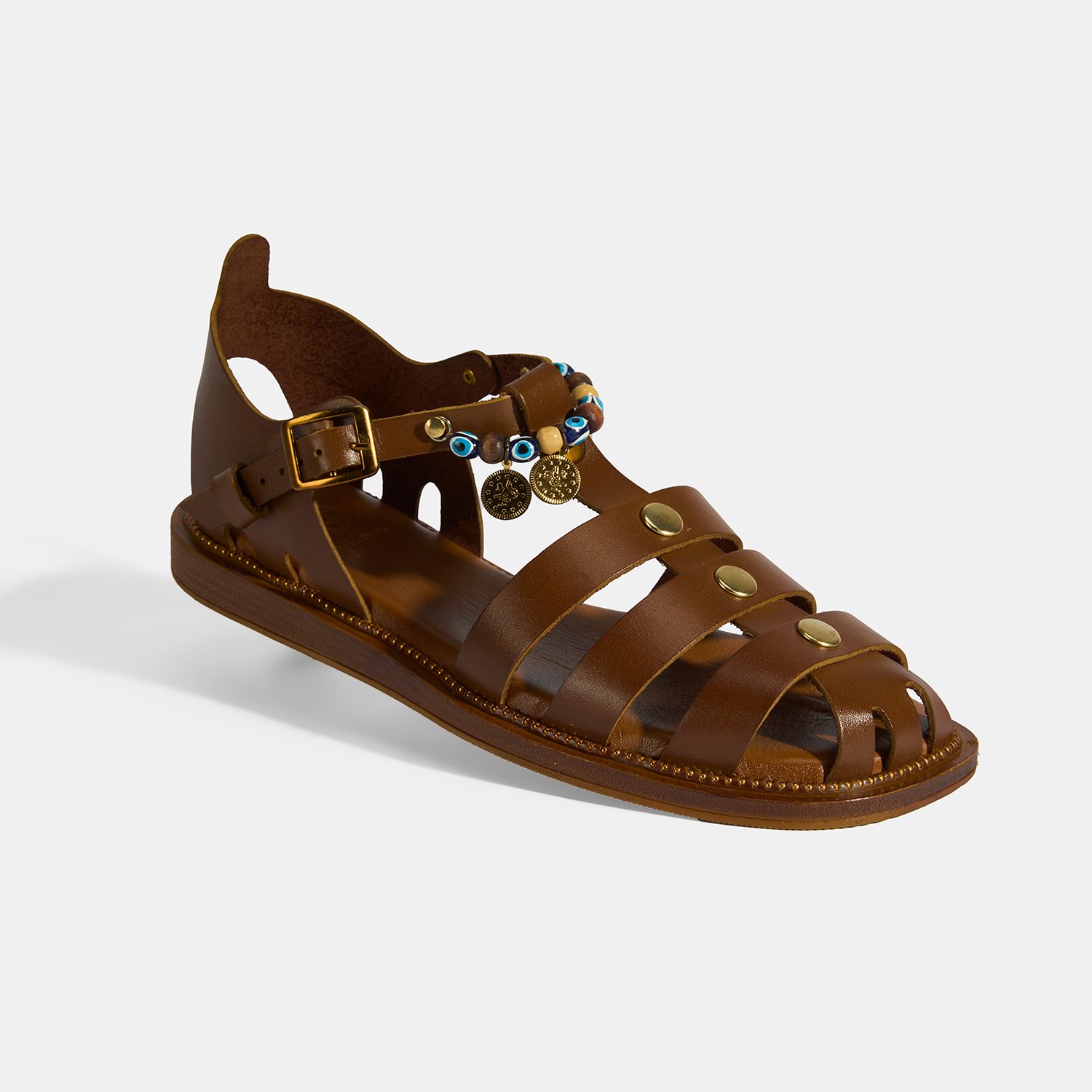 Kadın Taba Aksesuar Detaylı Ayarlanabilir Tokalı Deri Sandalet