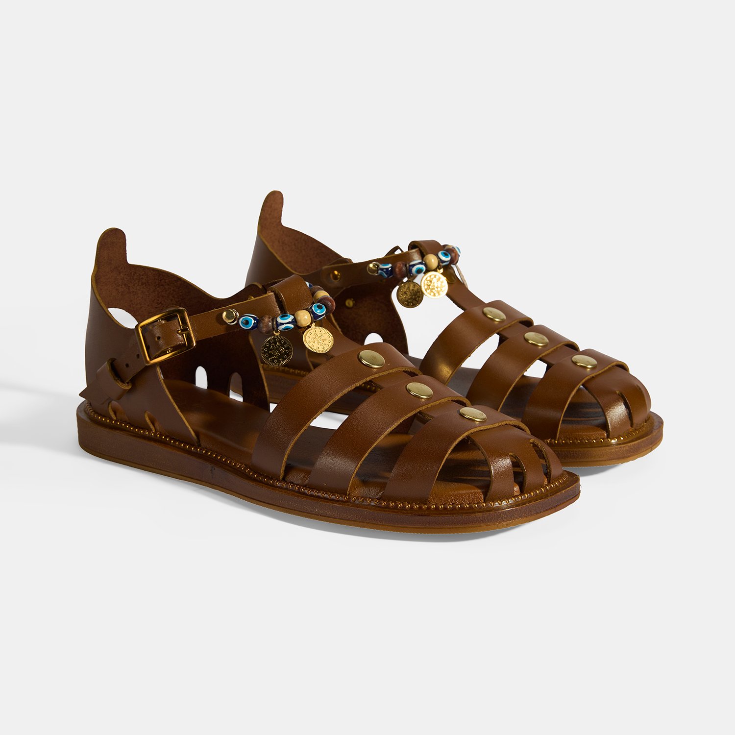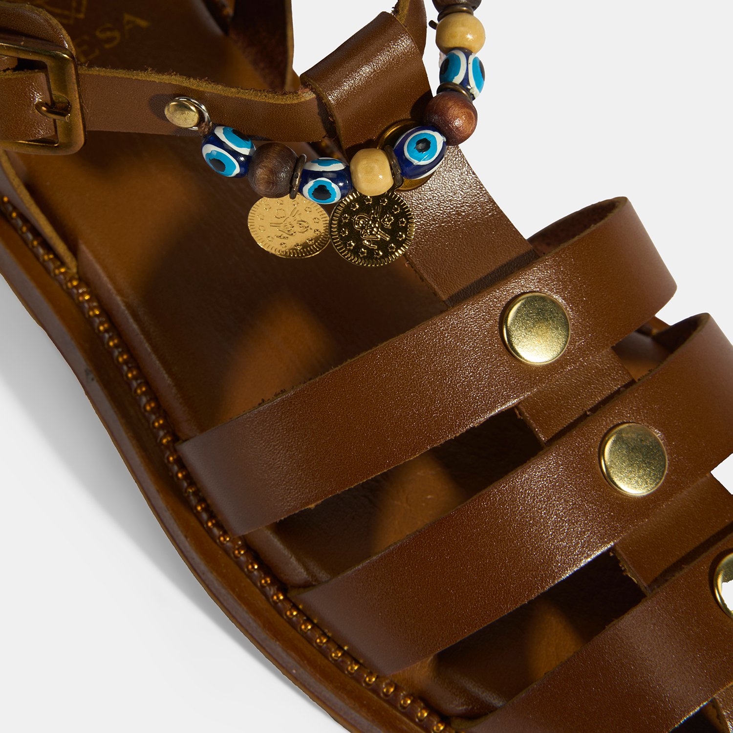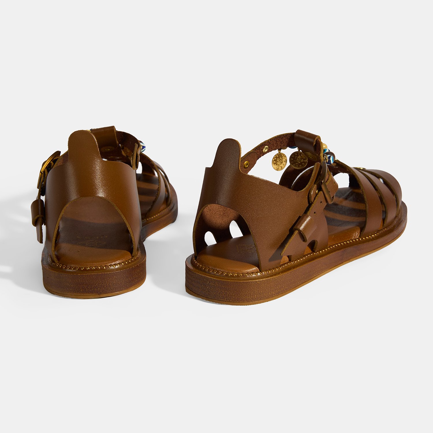 Kadın Taba Aksesuar Detaylı Ayarlanabilir Tokalı Deri Sandalet