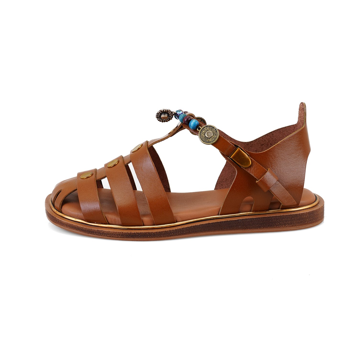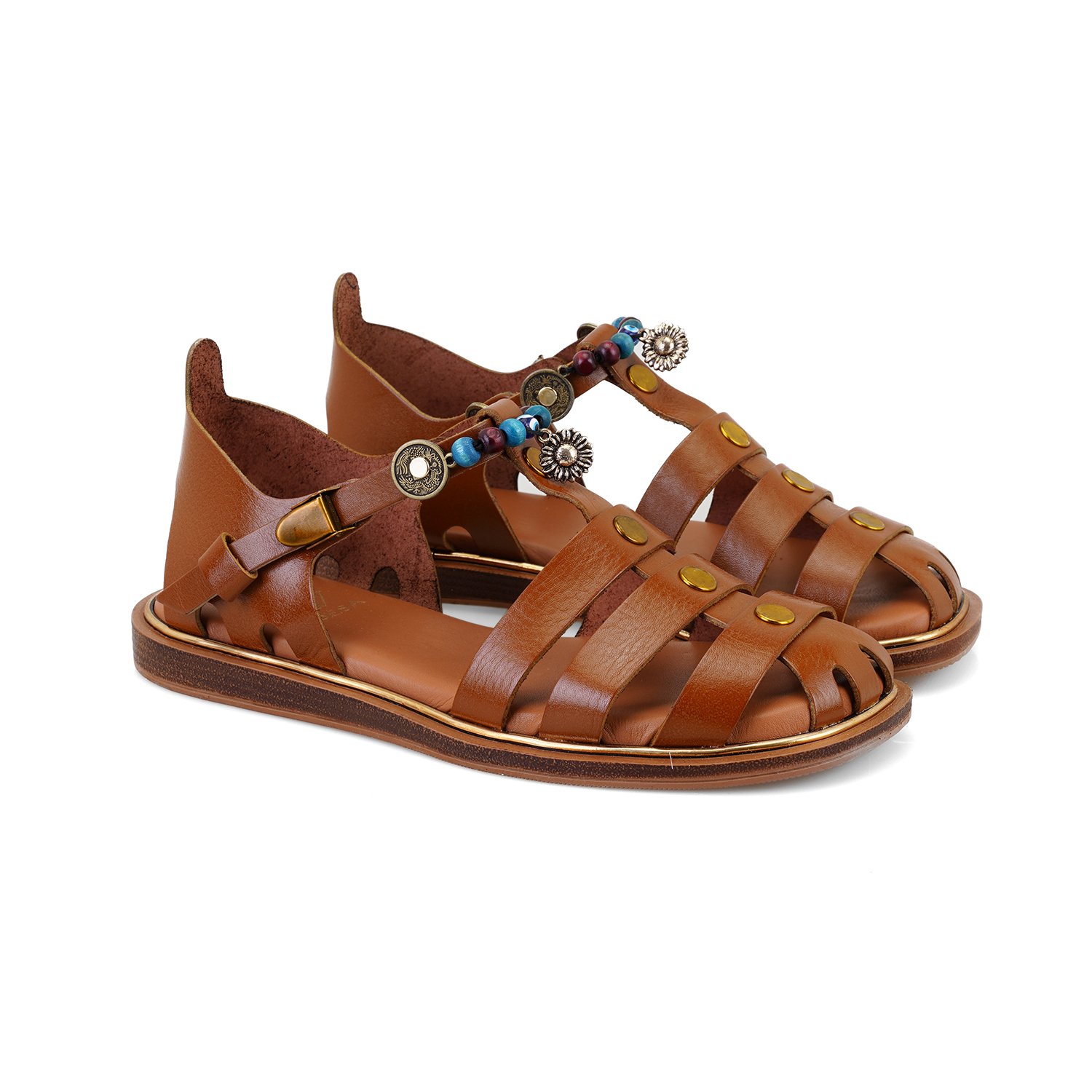 Kadın Taba Aksesuar Detaylı Deri Sandalet