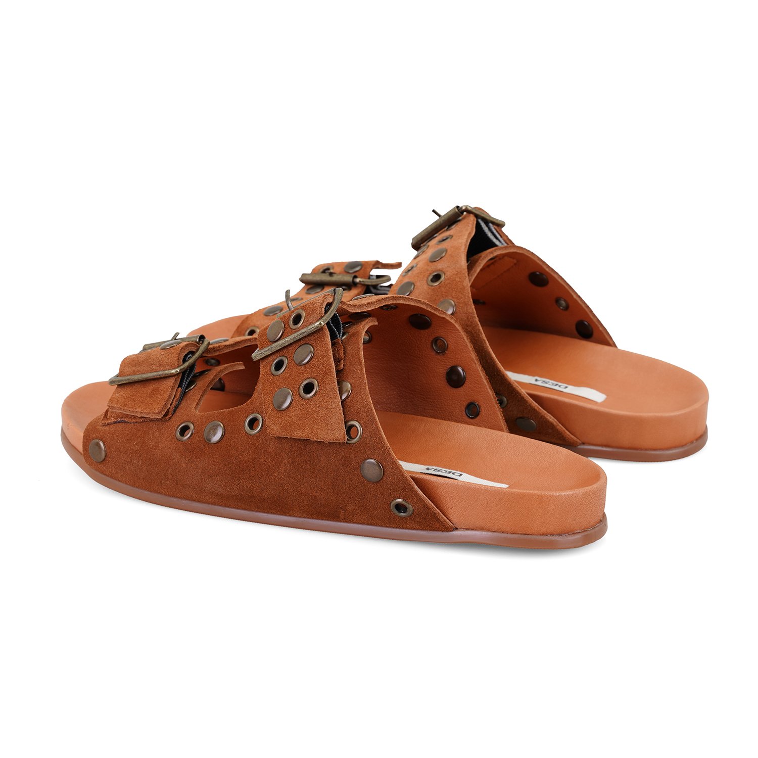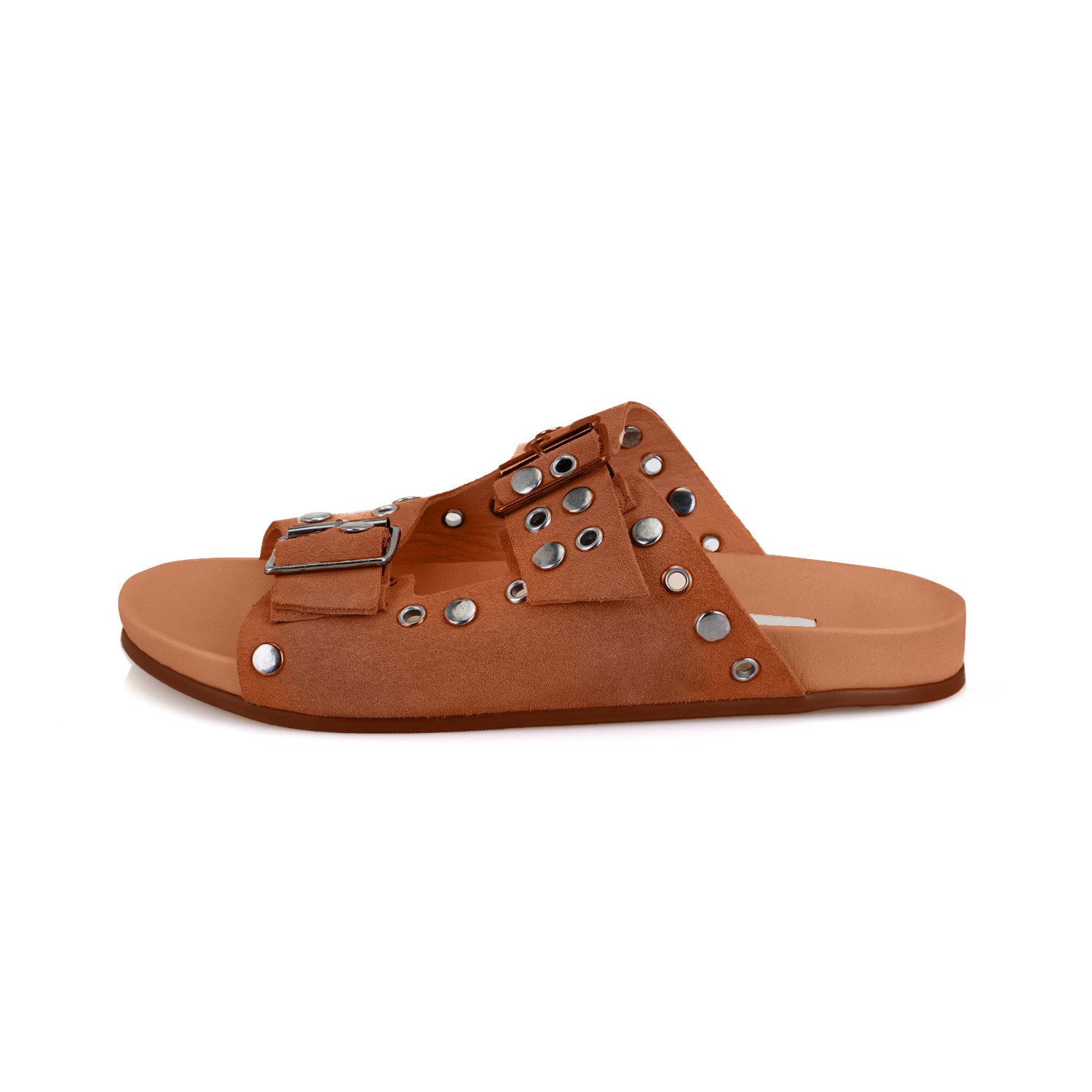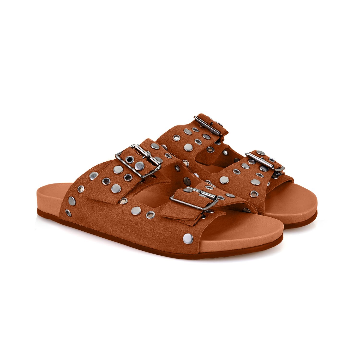 %100 deri, zımba aksesuar detaylı, kadın deri terlik.
