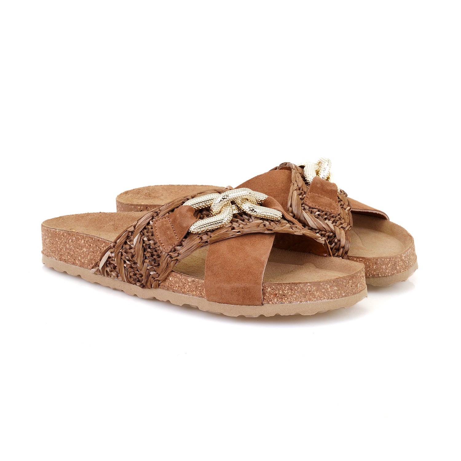 %100 süet iç astarlı, mostra deri, kadın aksesuarlı deri terlik.