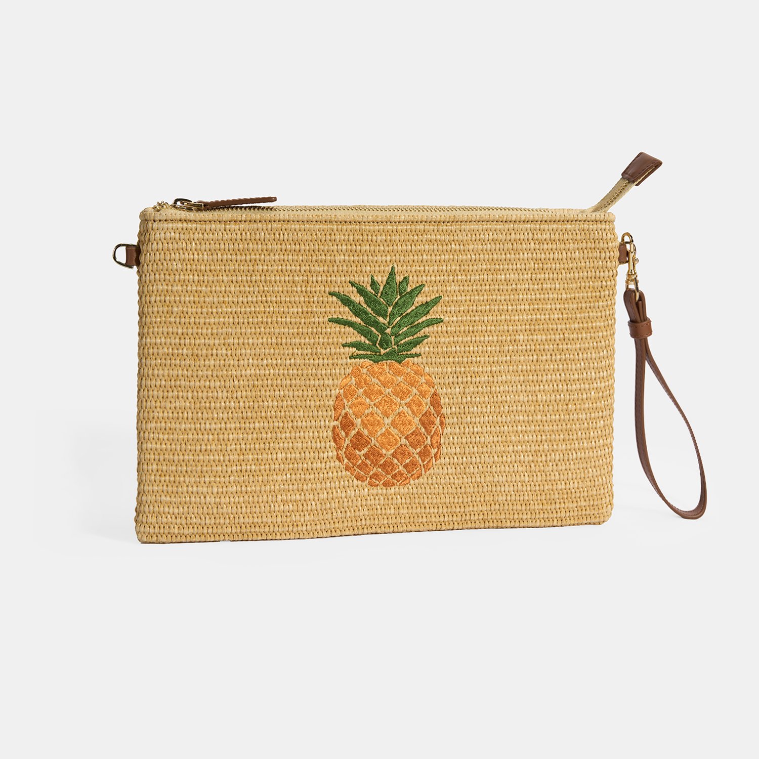 Kadın Taba Ananas Nakışlı Hasır Clutch