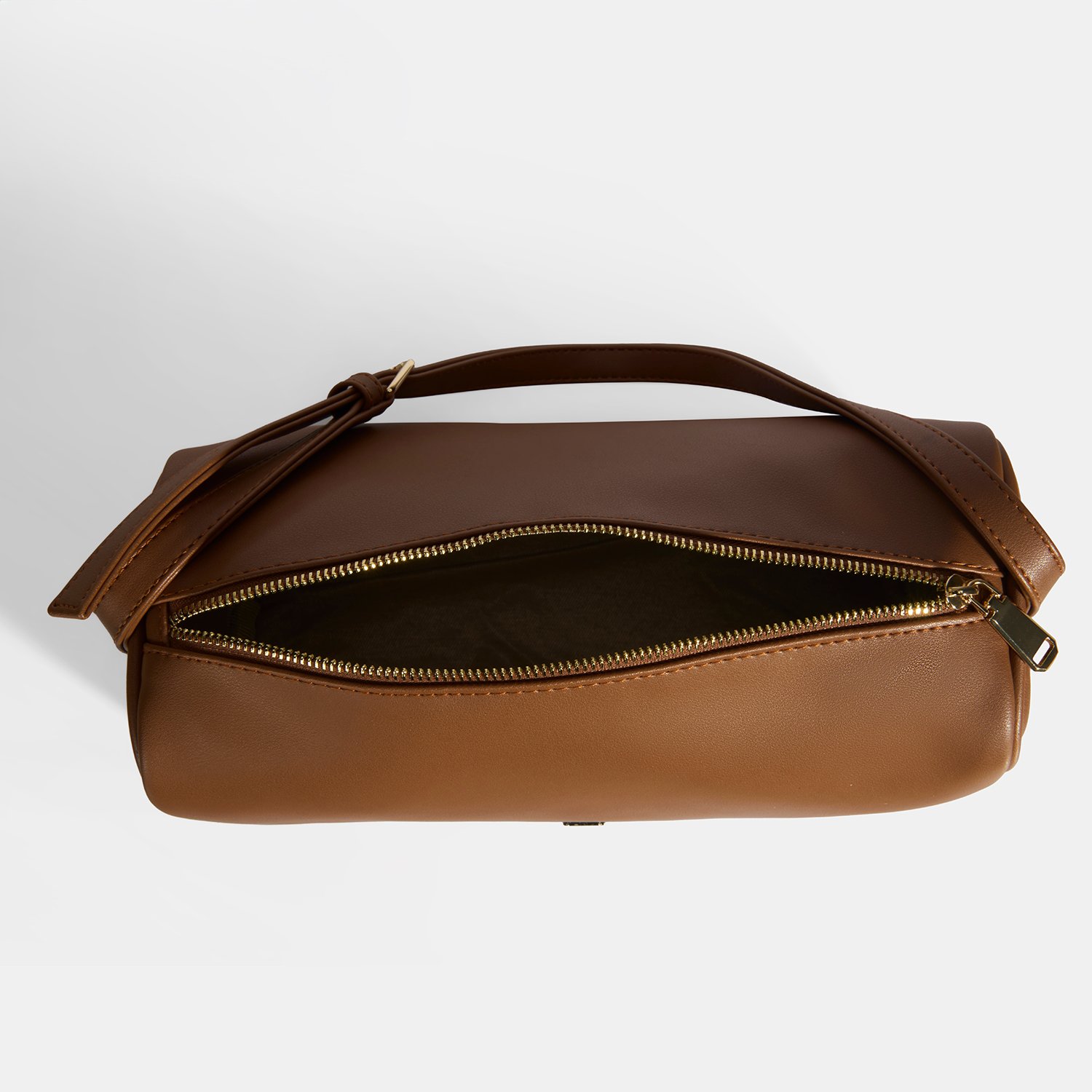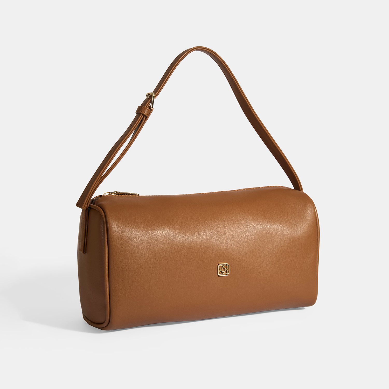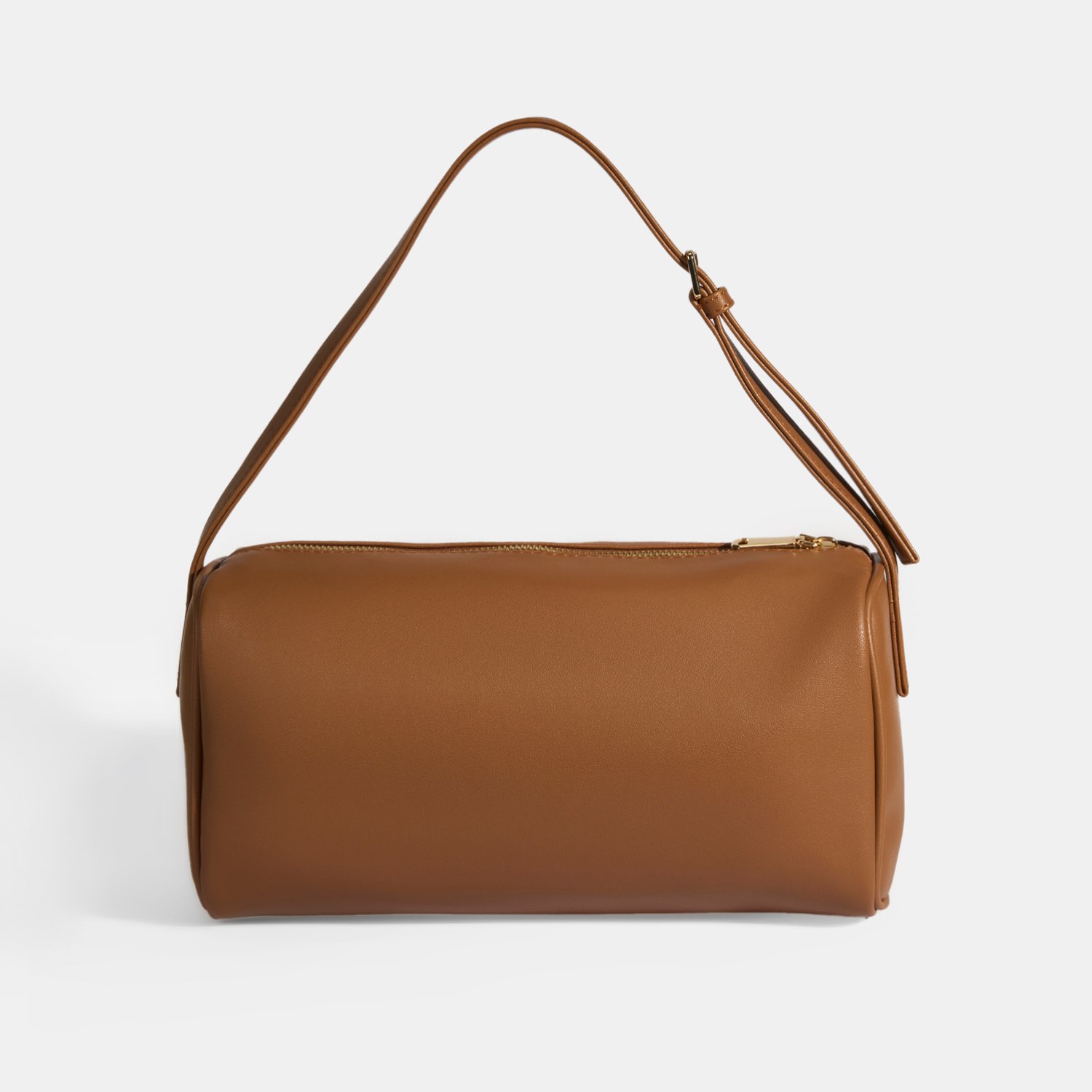 Modern sadeliğin simgesi bu barrel (silindir) formdaki çanta, yumuşak krem rengi ve pürüzsüz dokusuyla her kombine zarif bir dokunuş katıyor.