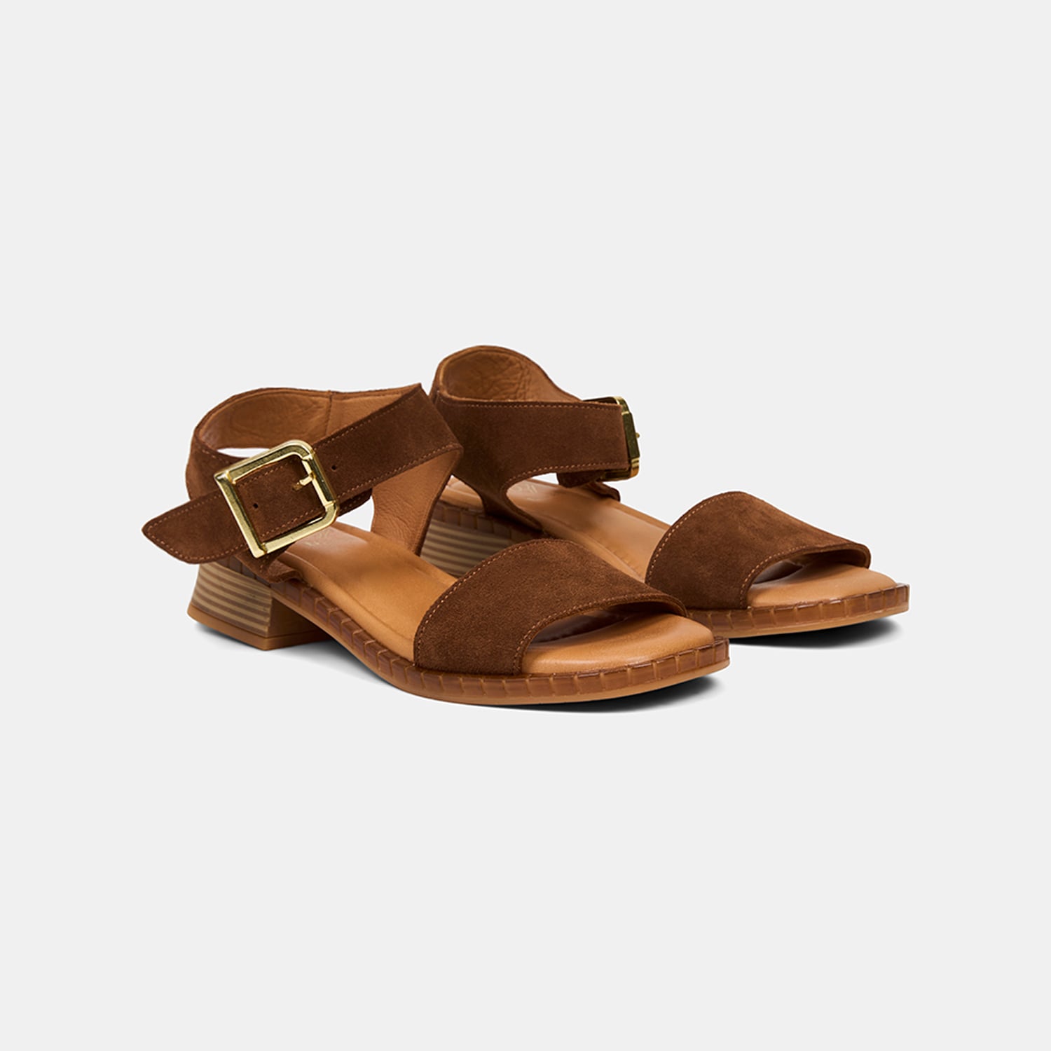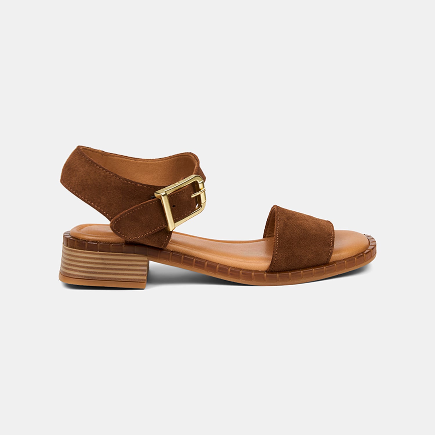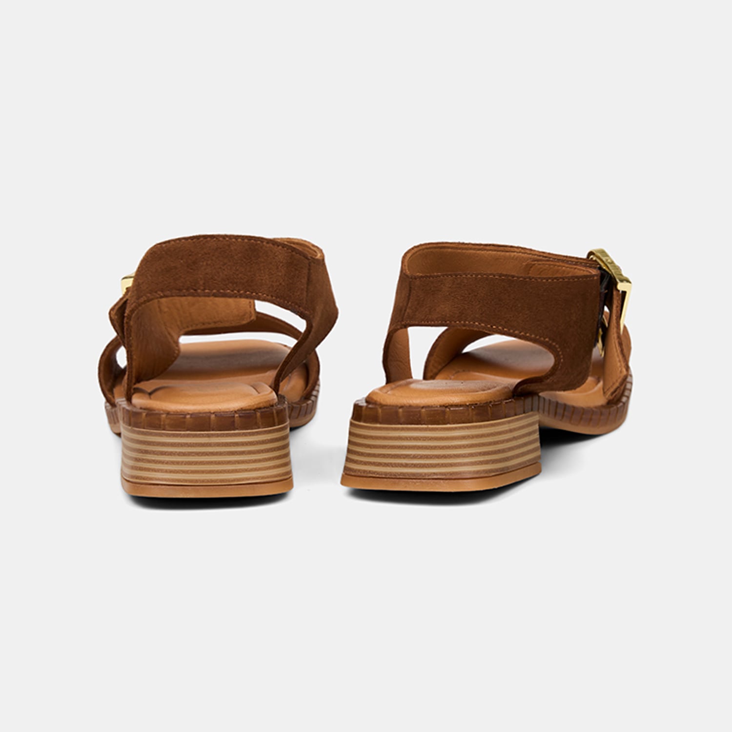 Kadın Taba Ayarlanabilir Gold Tokalı Süet Sandalet