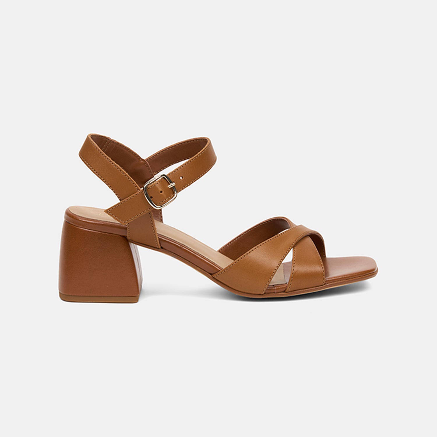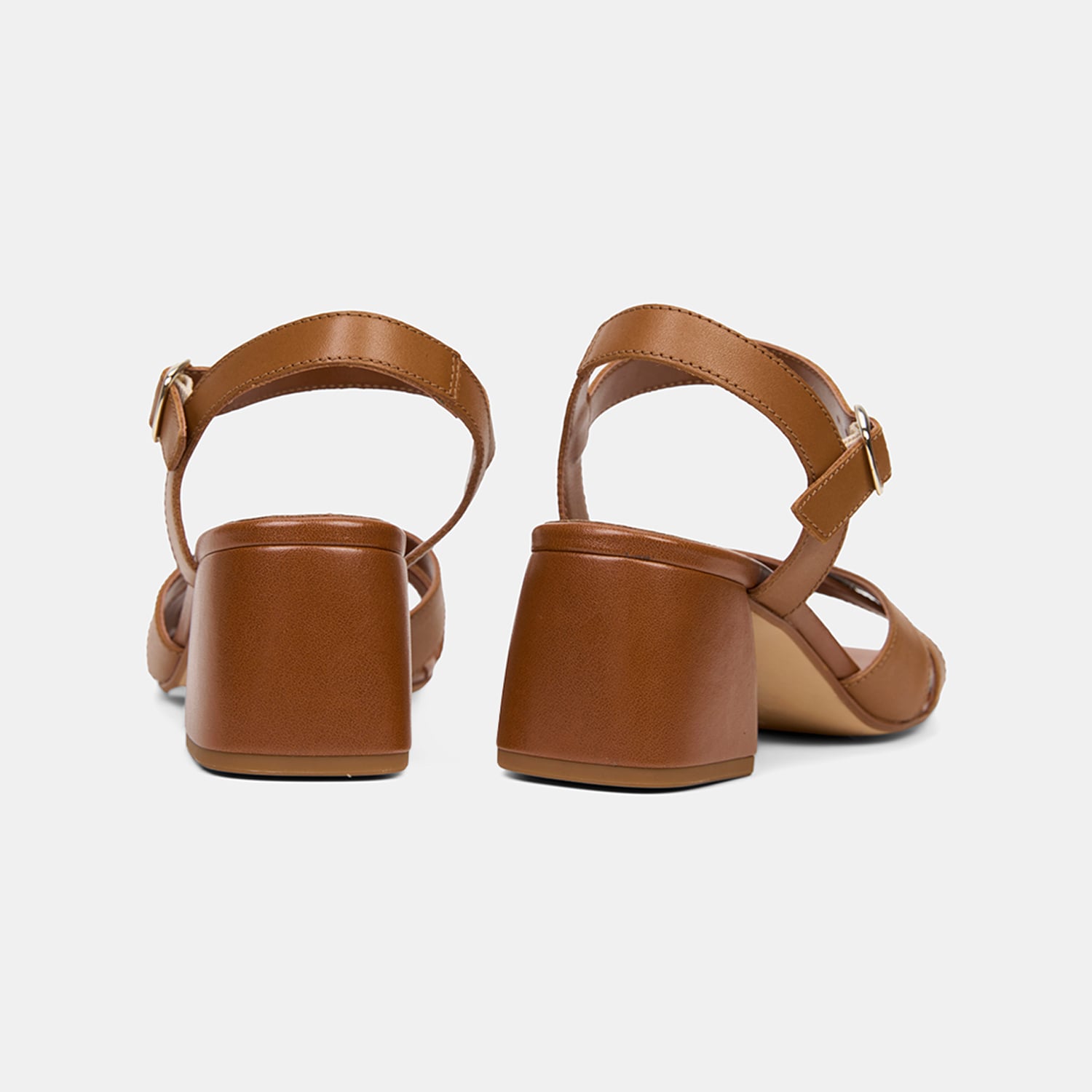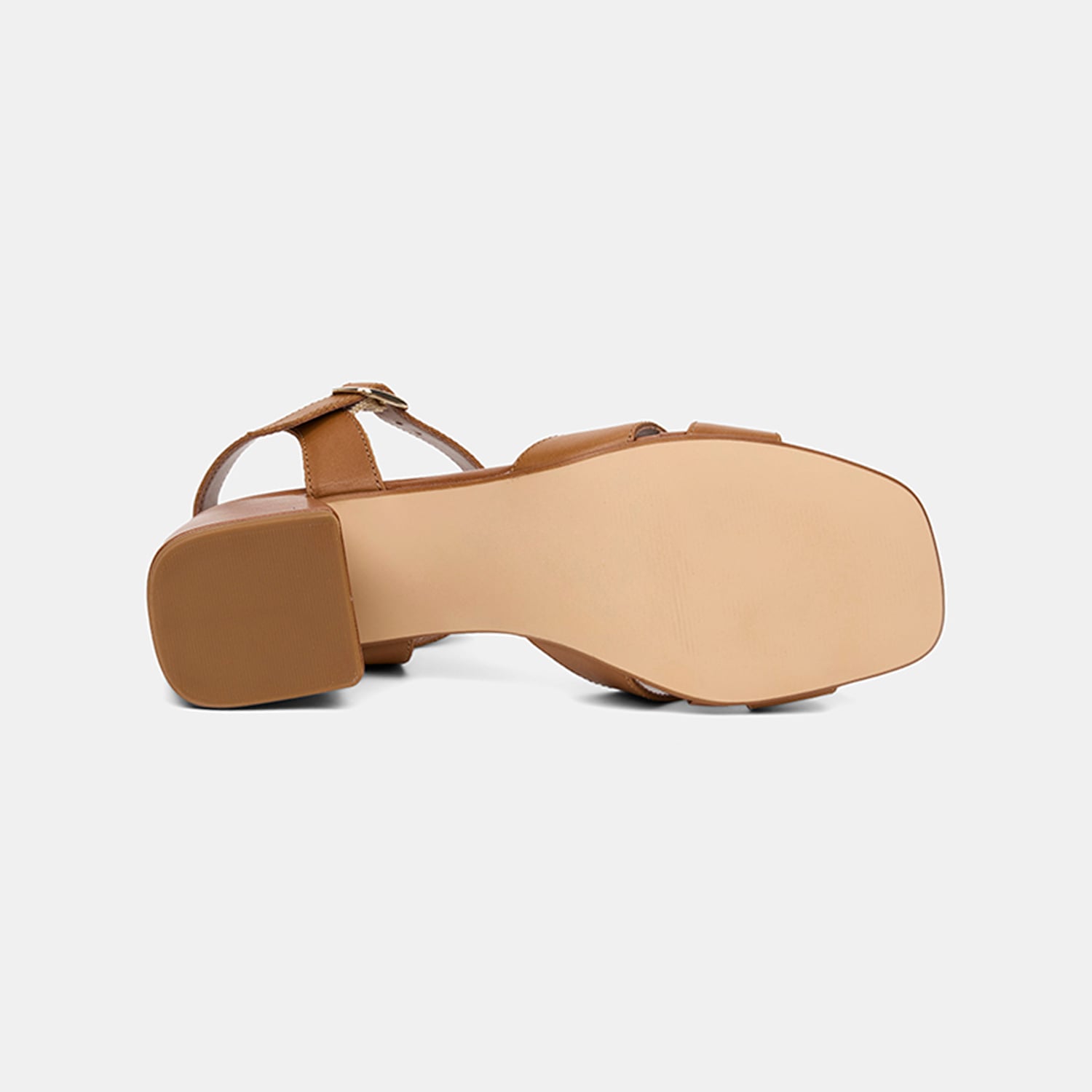 Kadın Taba Ayarlanabilir Metal Tokalı Topuklu Deri Sandalet