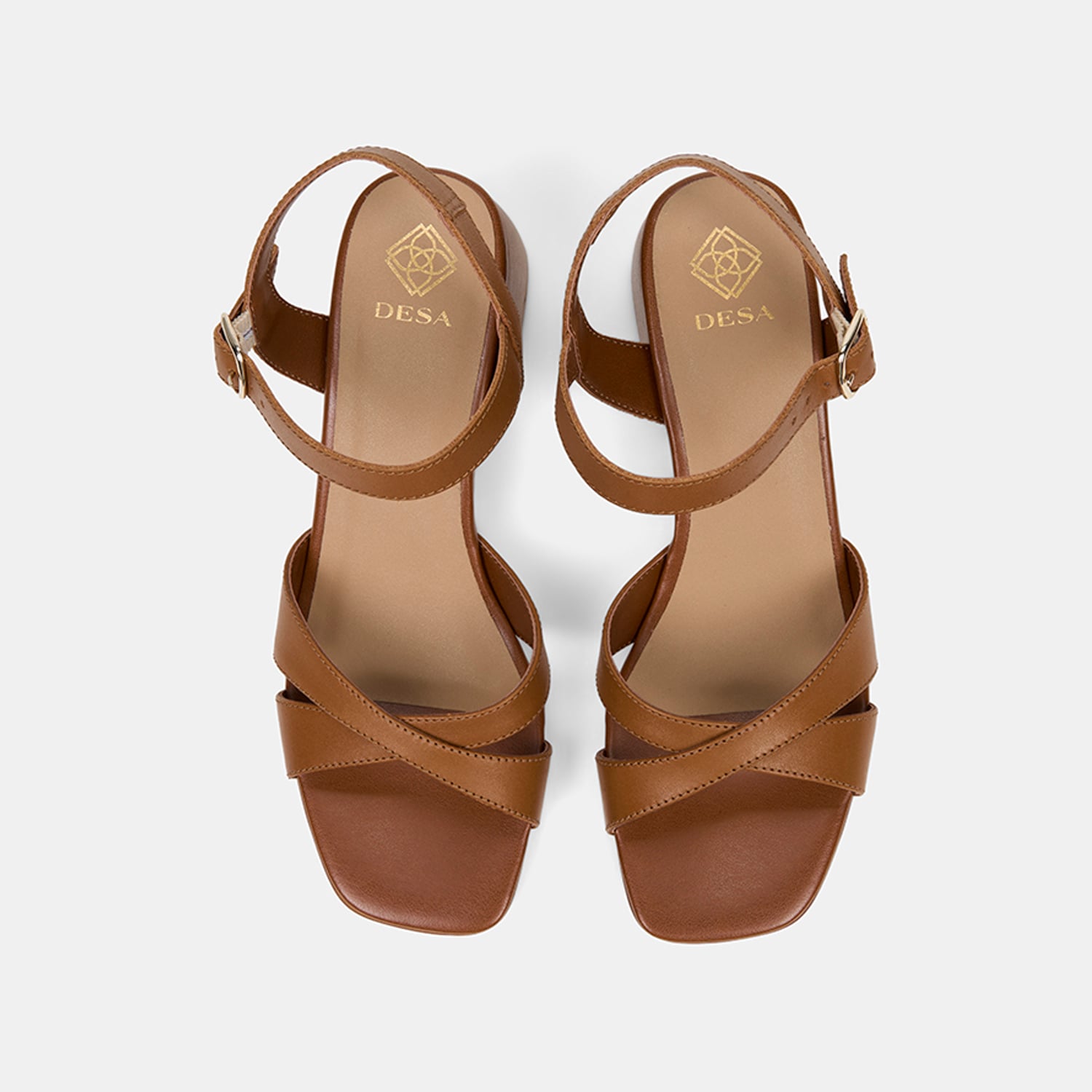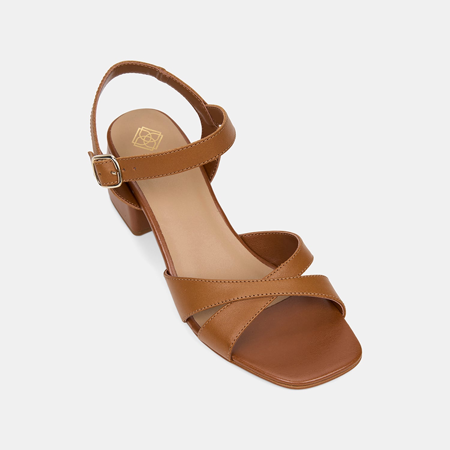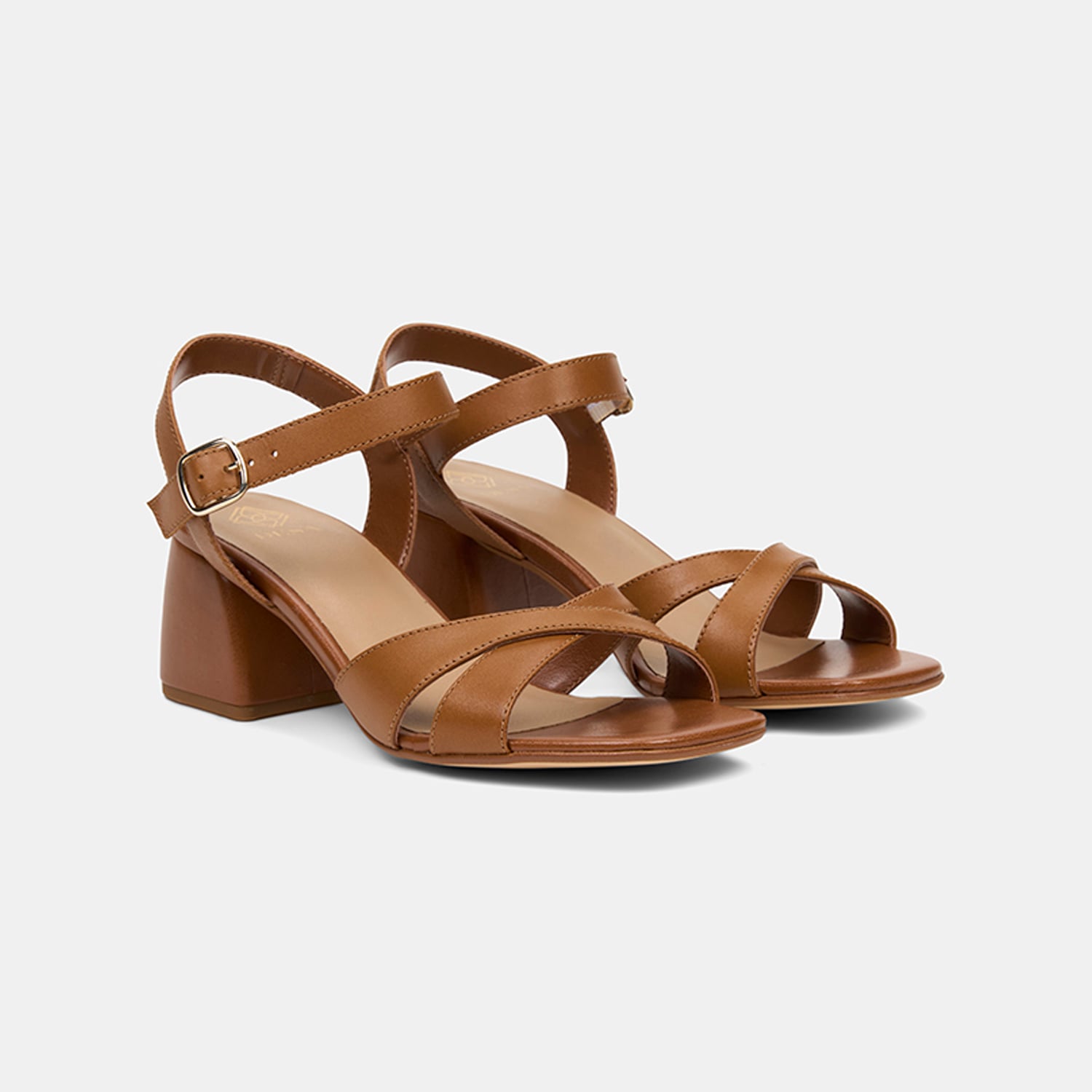 Kadın Taba Ayarlanabilir Metal Tokalı Topuklu Deri Sandalet