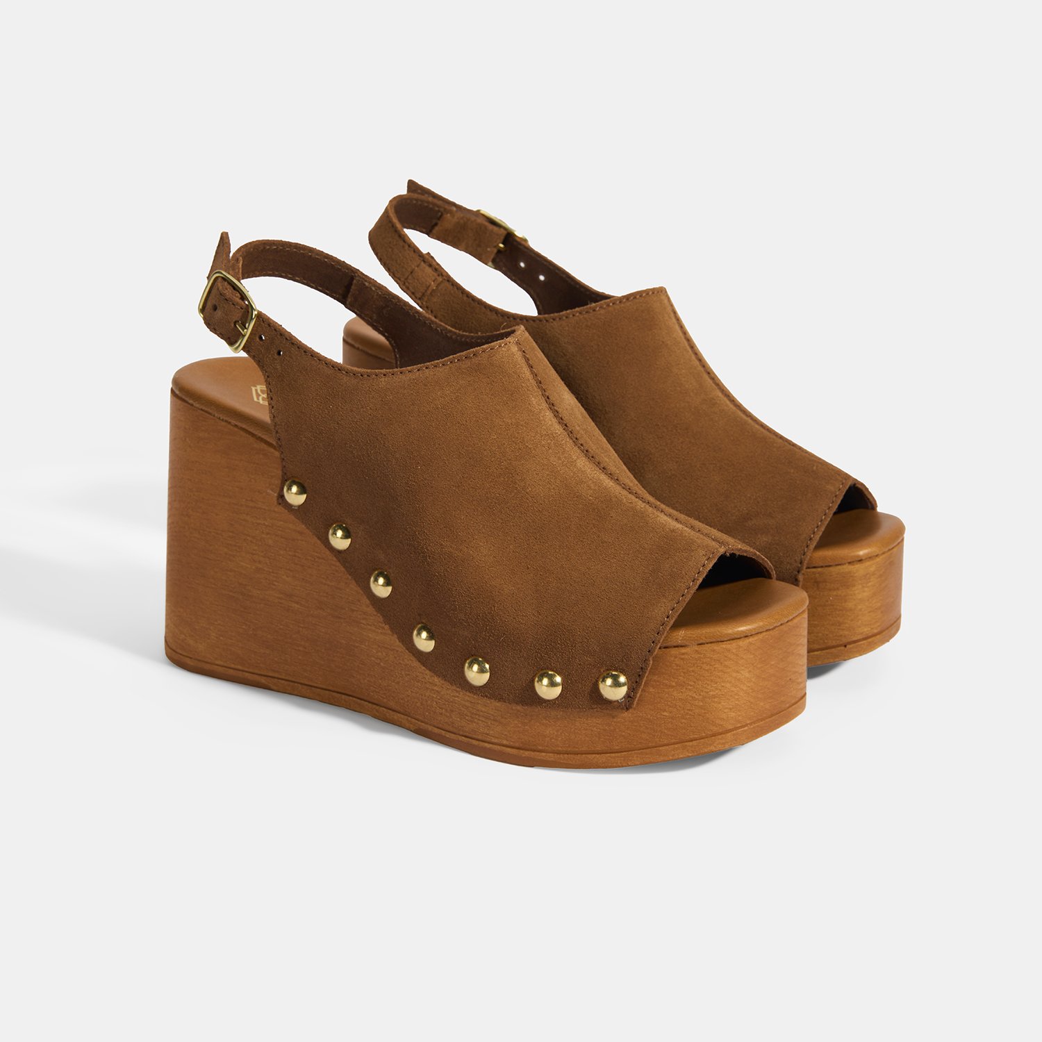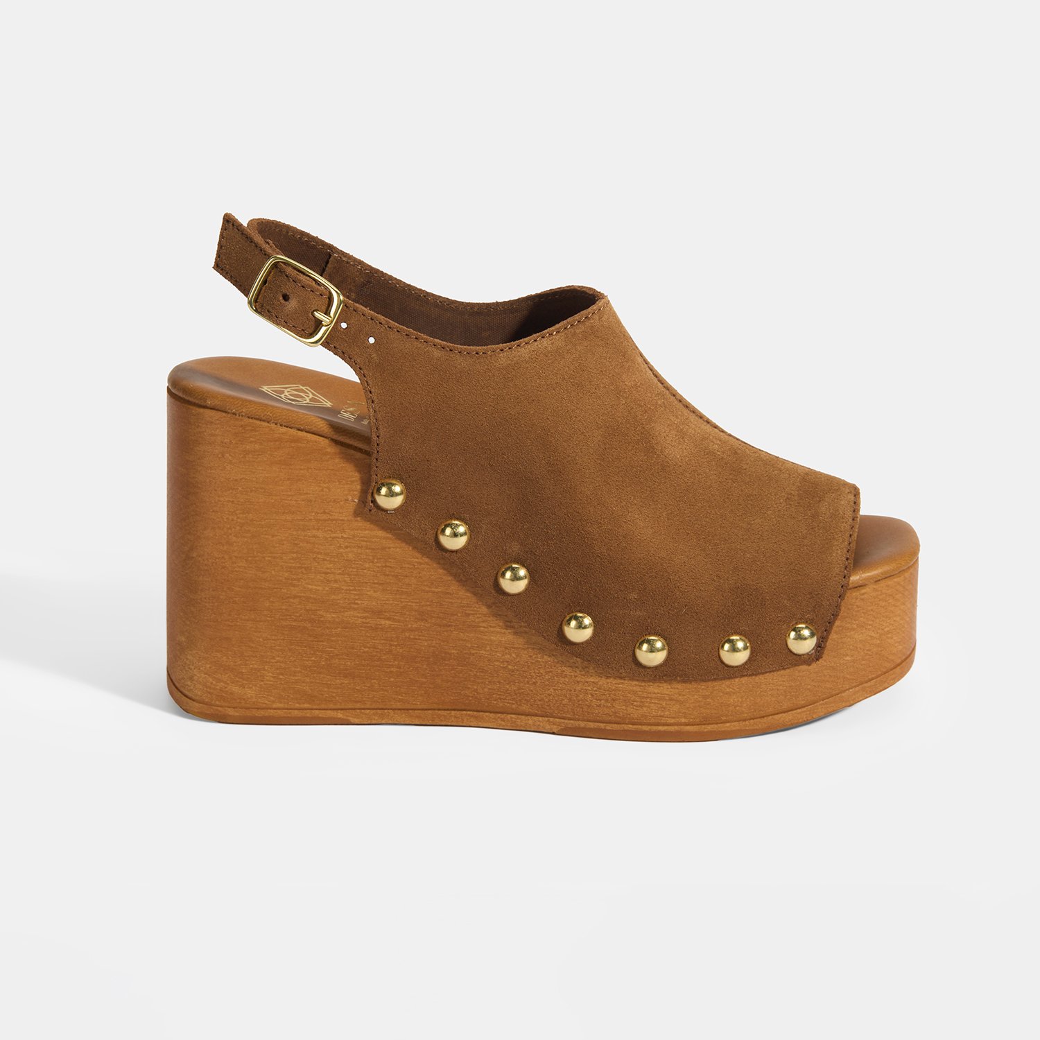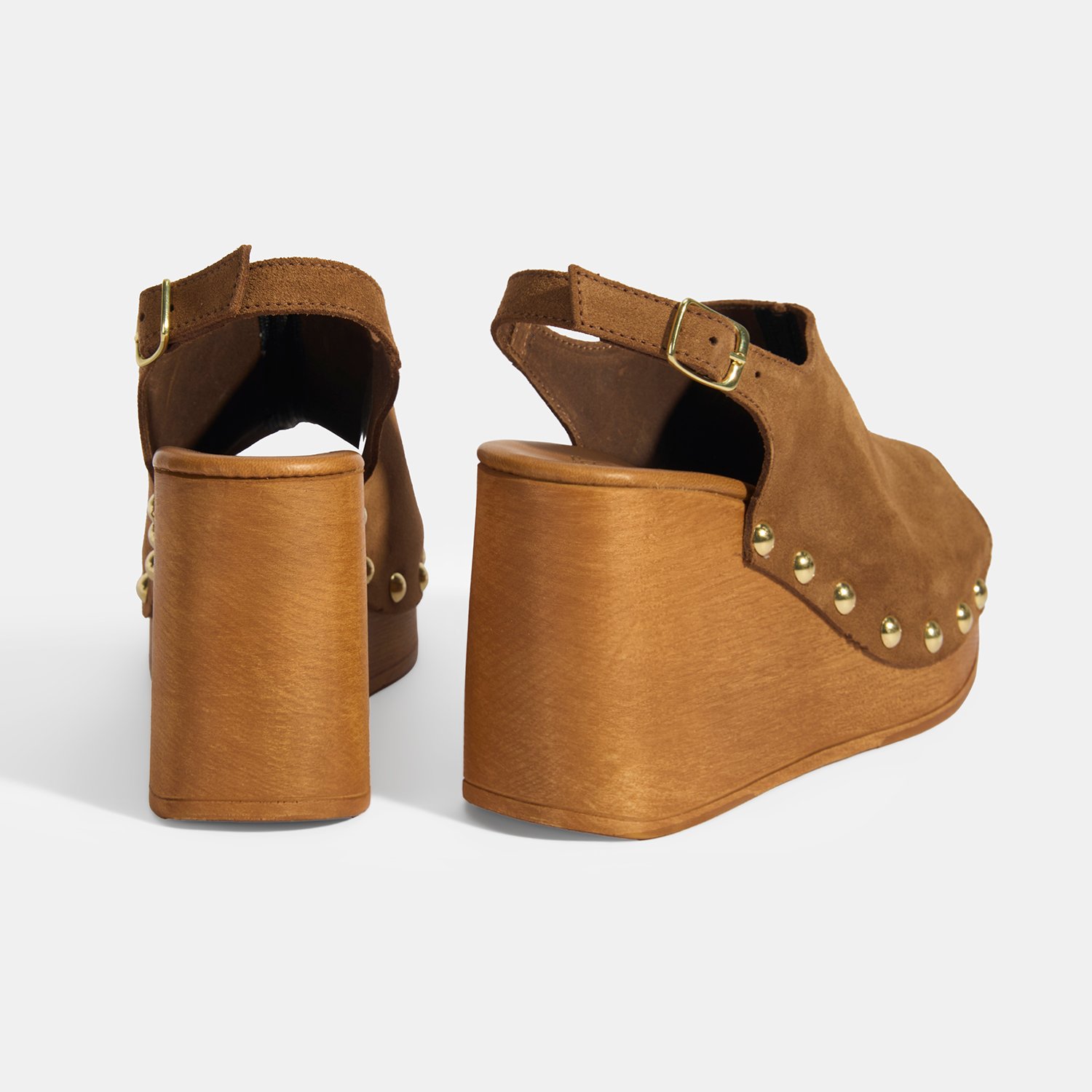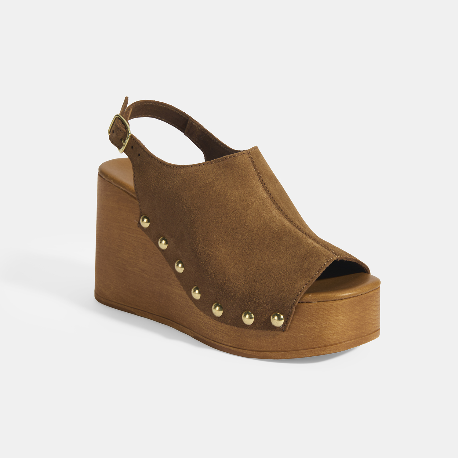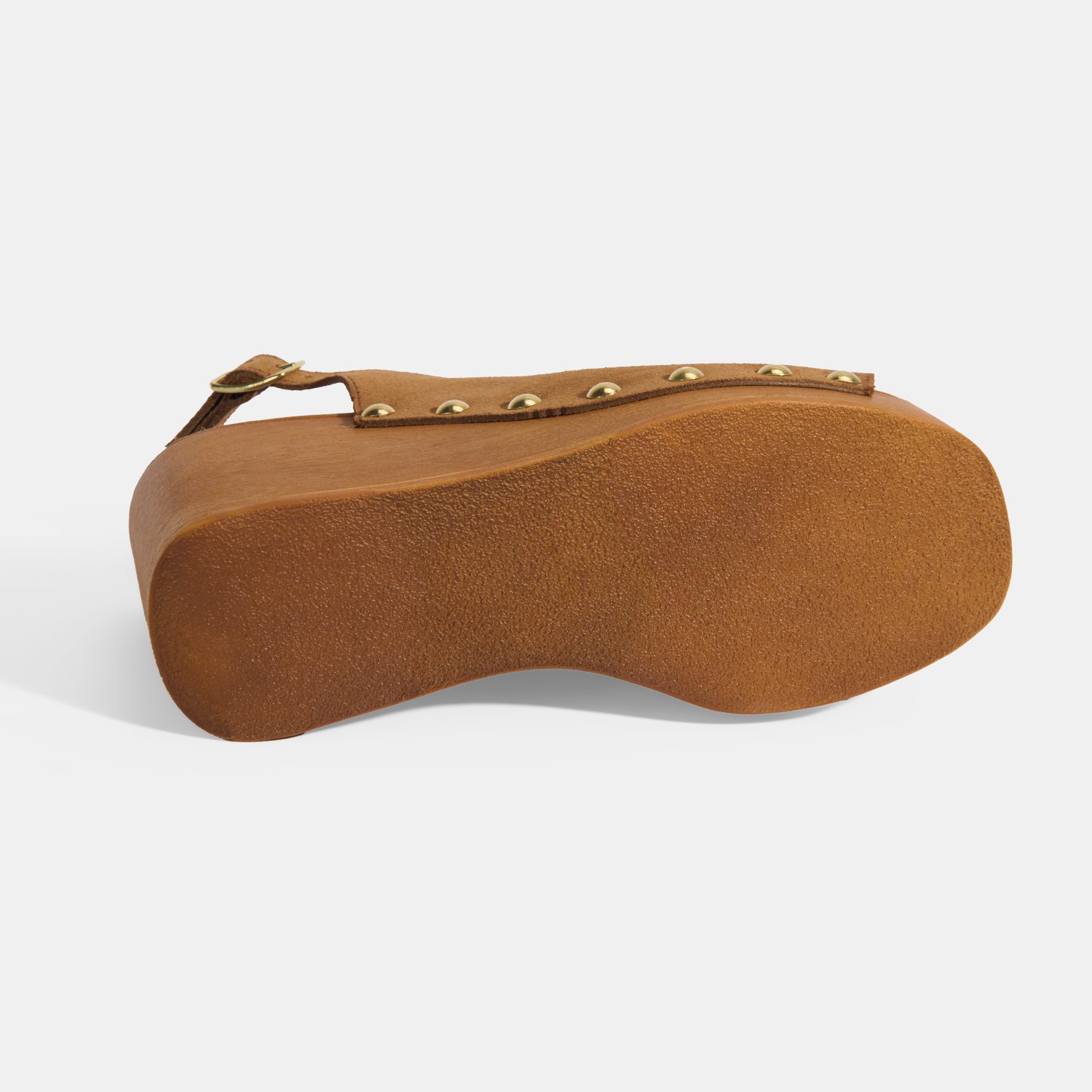 Kadın Taba Ayarlanabilir Toka Detaylı Süet Dolgu Topuklu Sandalet