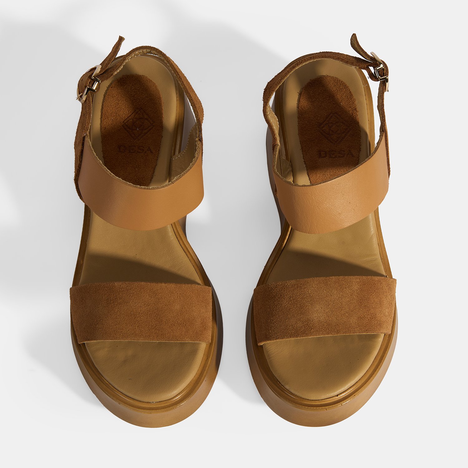 %80 süet deri, %20 deri, deri iç tabanlı, deri astarlı, ayarlanabilir metal tokalı, pu tabanlı, kadın dolgu topuklu sandalet.