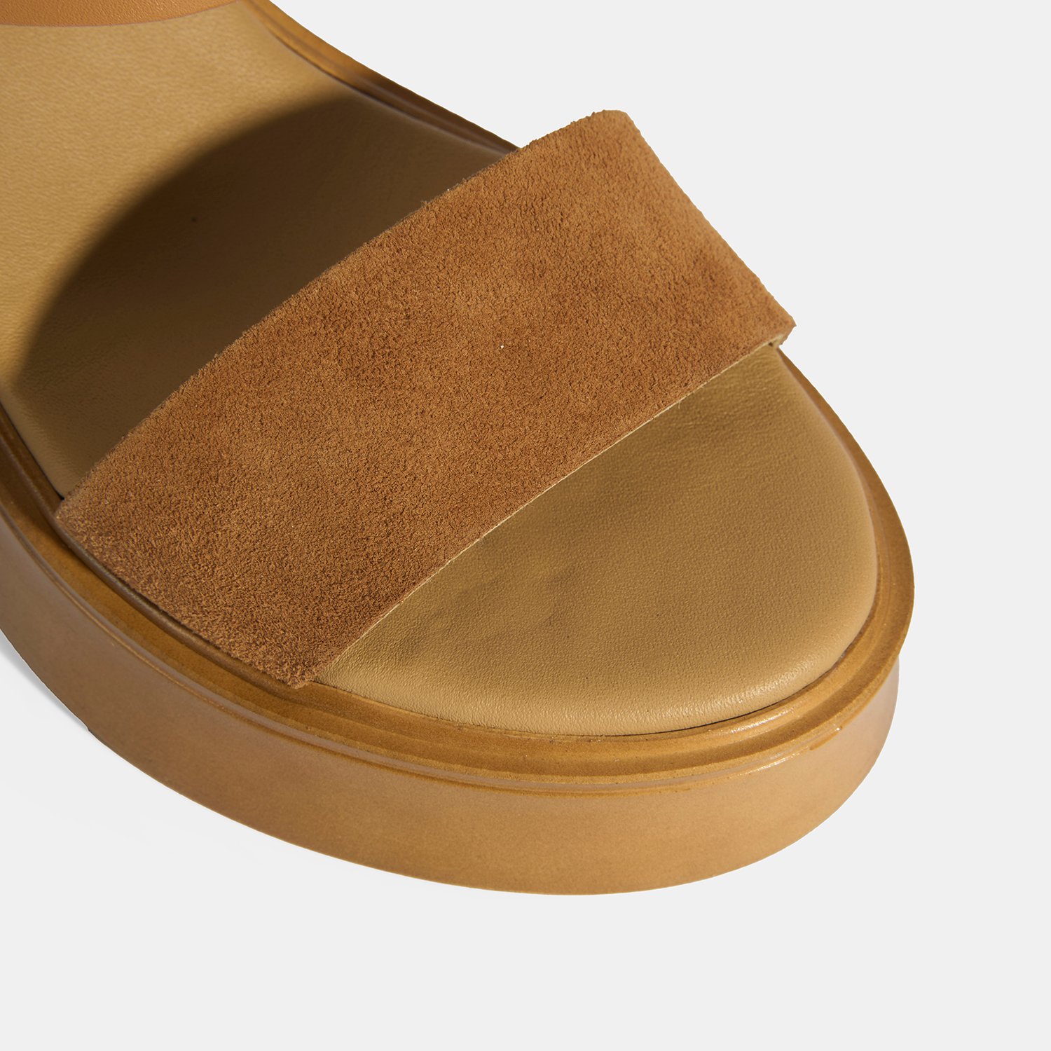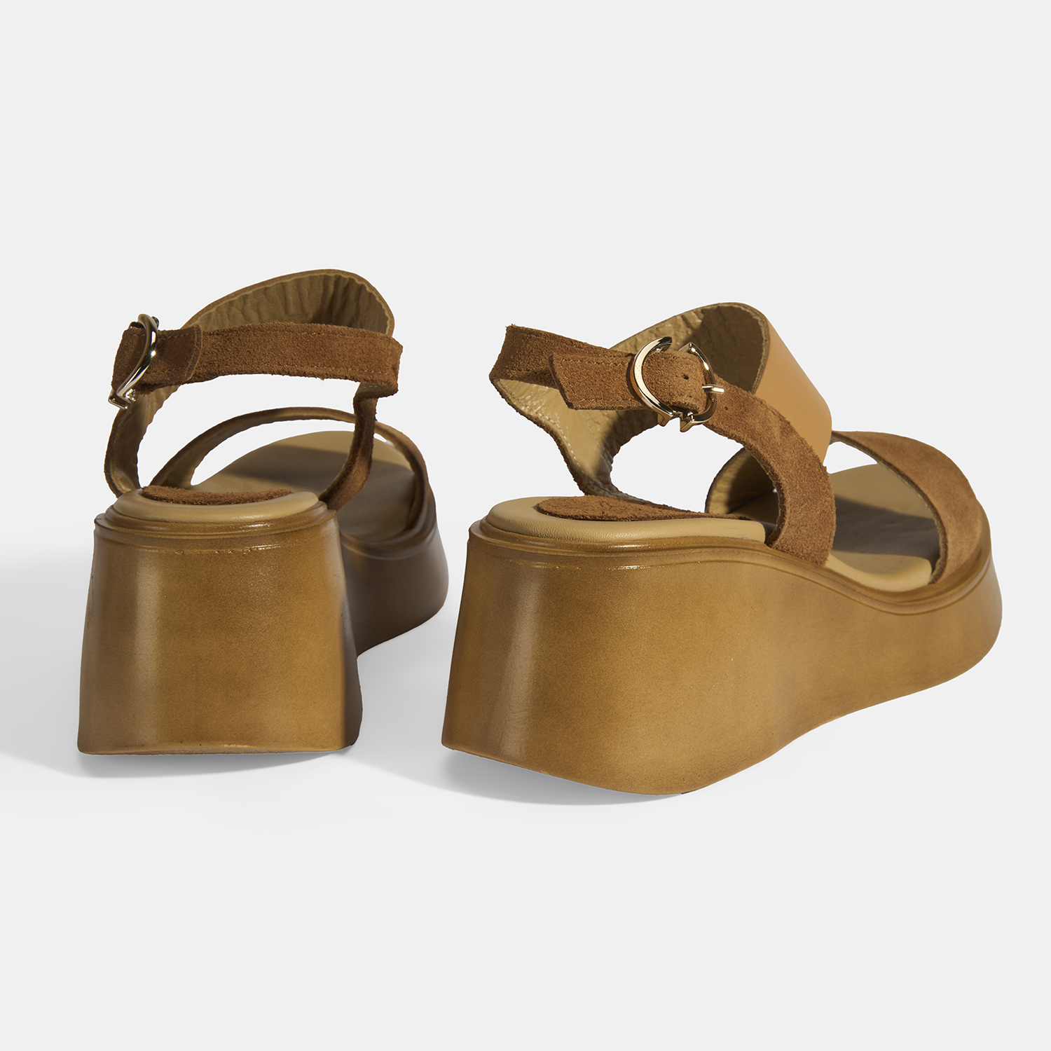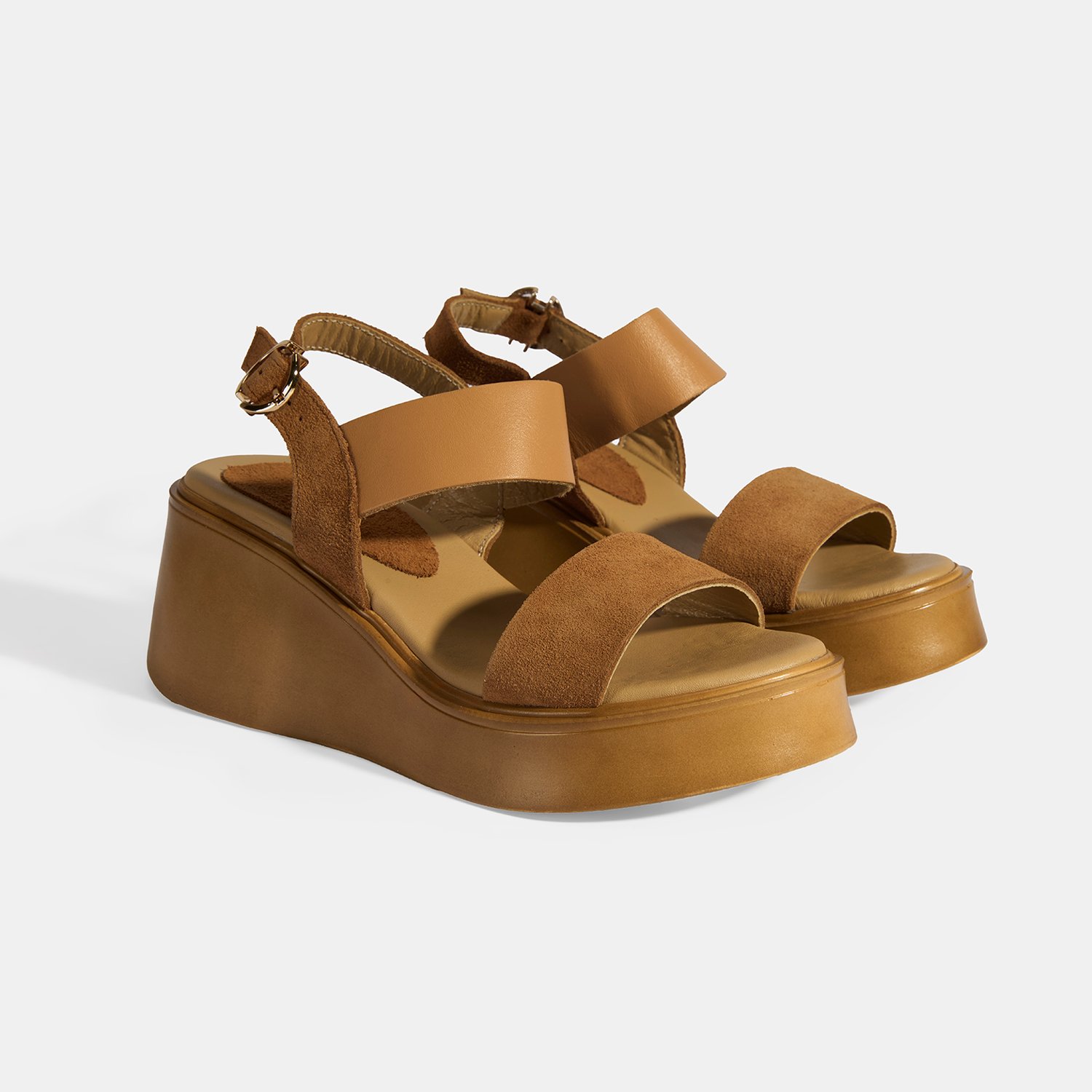 Kadın Taba Ayarlanabilir Tokalı Deri Detaylı Dolgu Topuklu Süet Sandalet