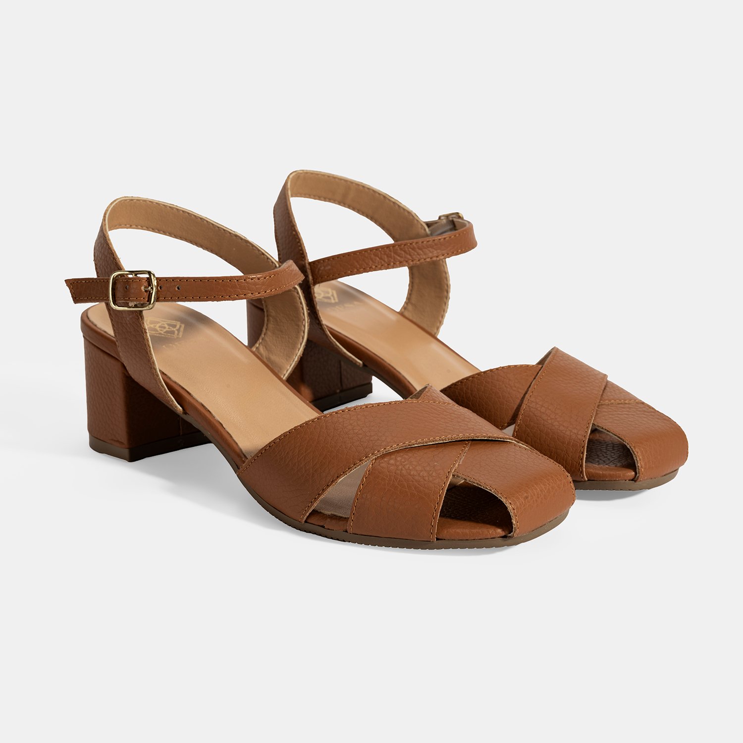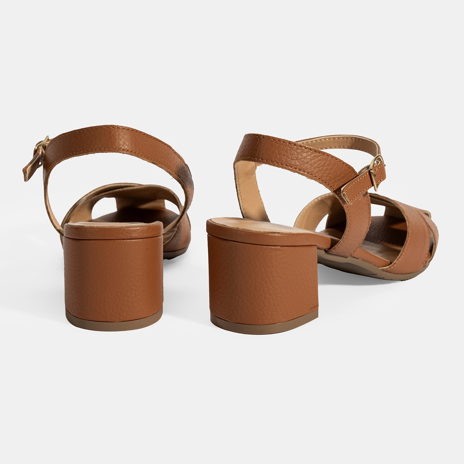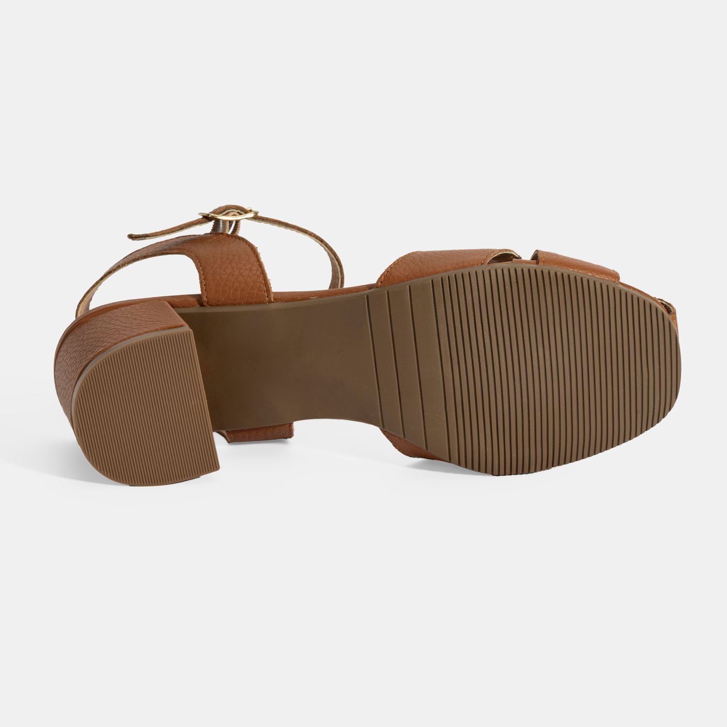 Kadın Taba Ayarlanabilir Tokalı Deri Topuklu Sandalet