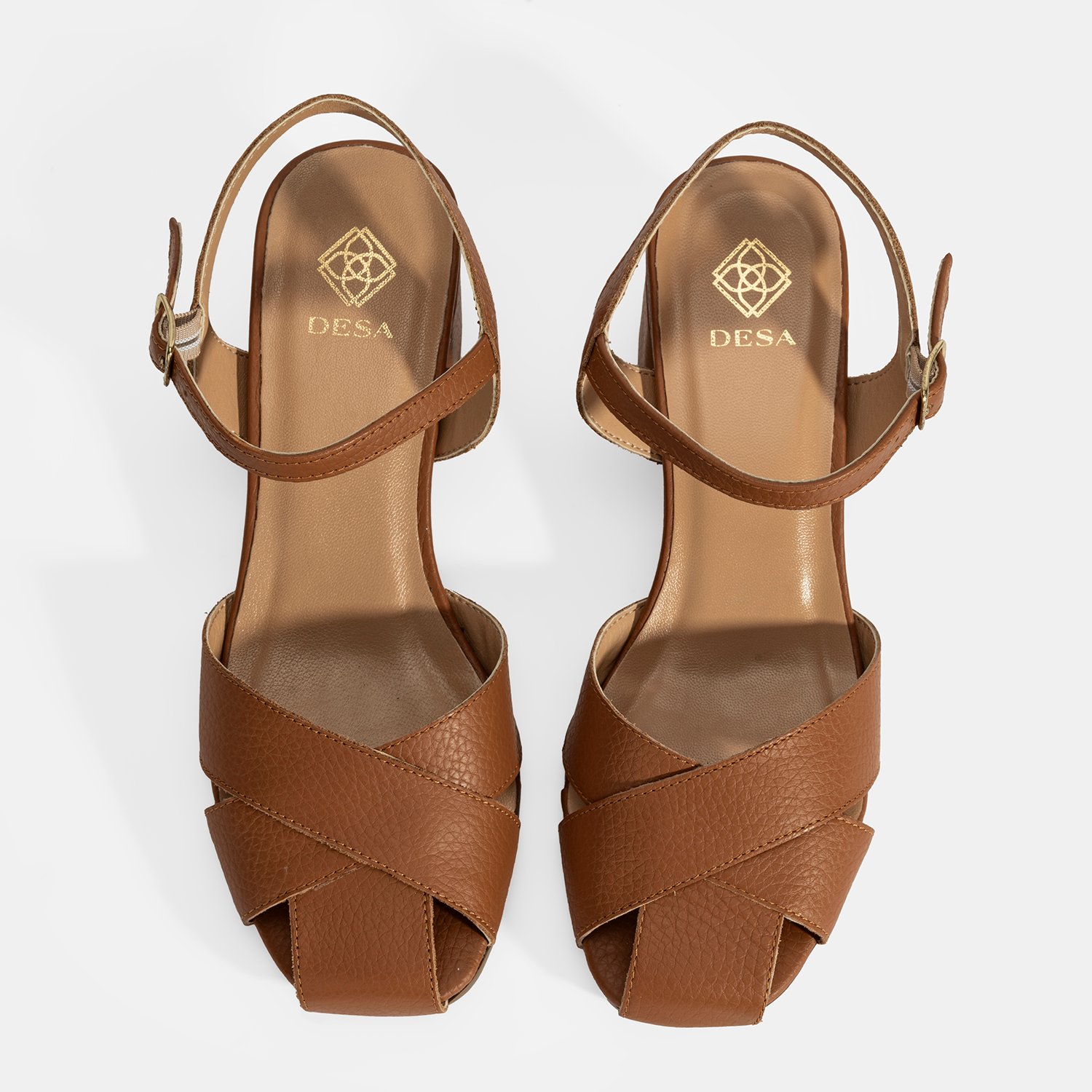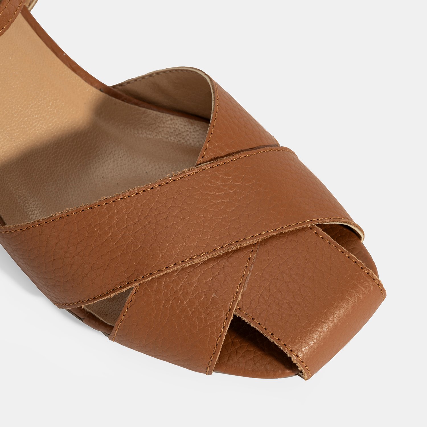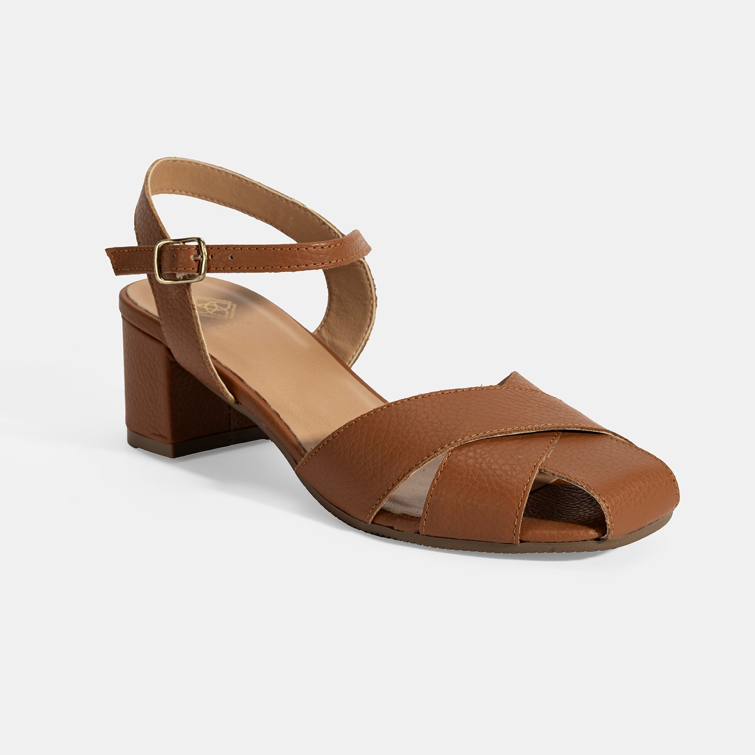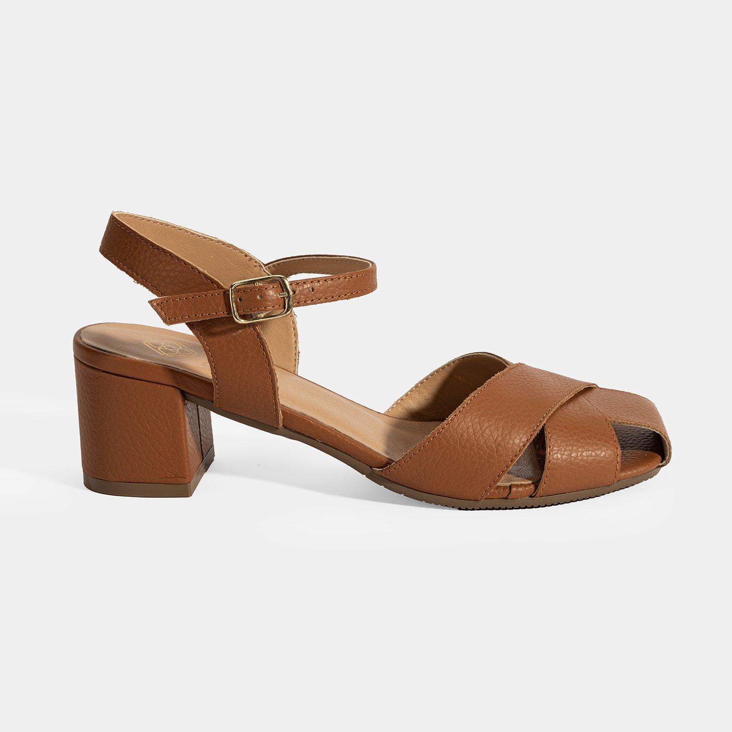 Kadın Taba Ayarlanabilir Tokalı Deri Topuklu Sandalet