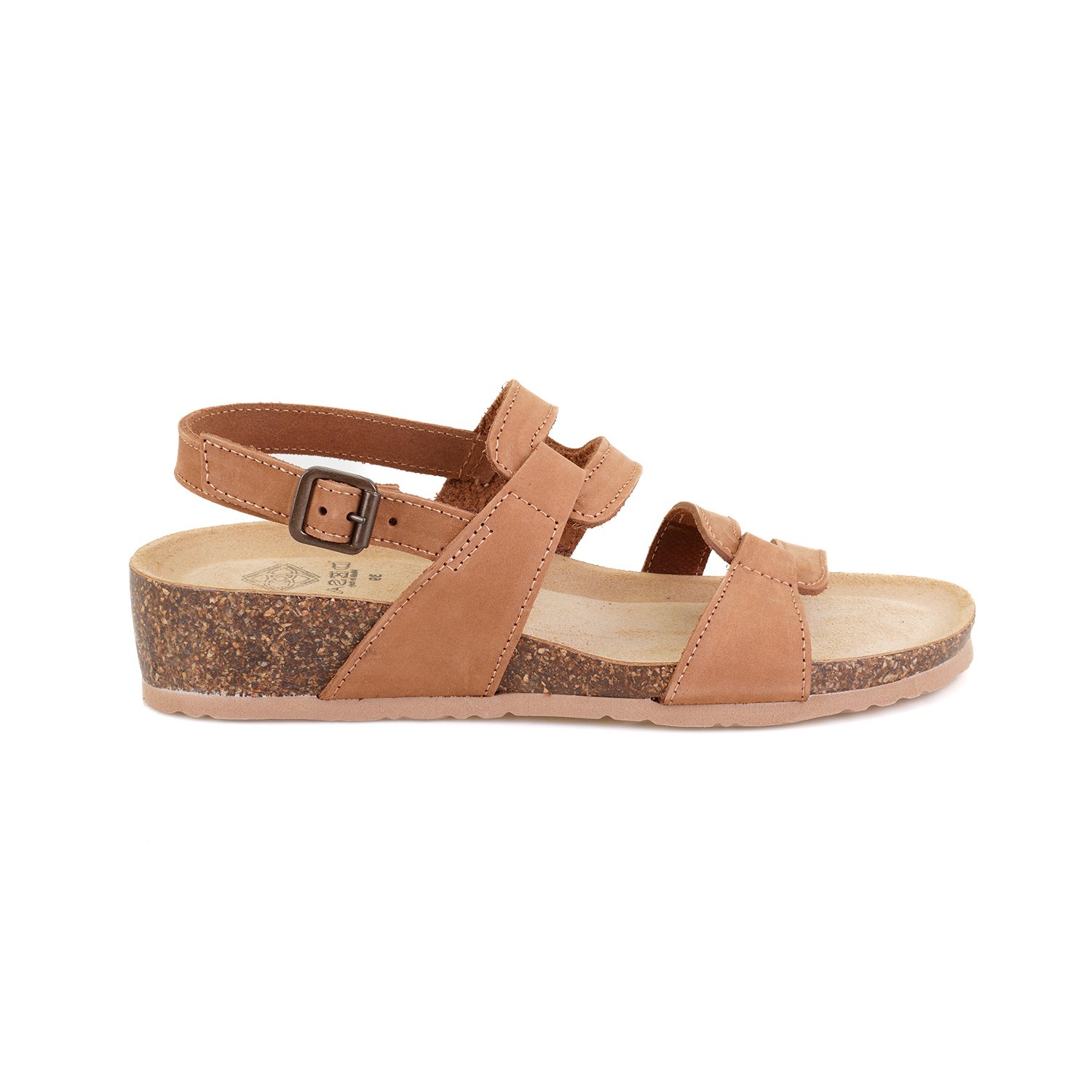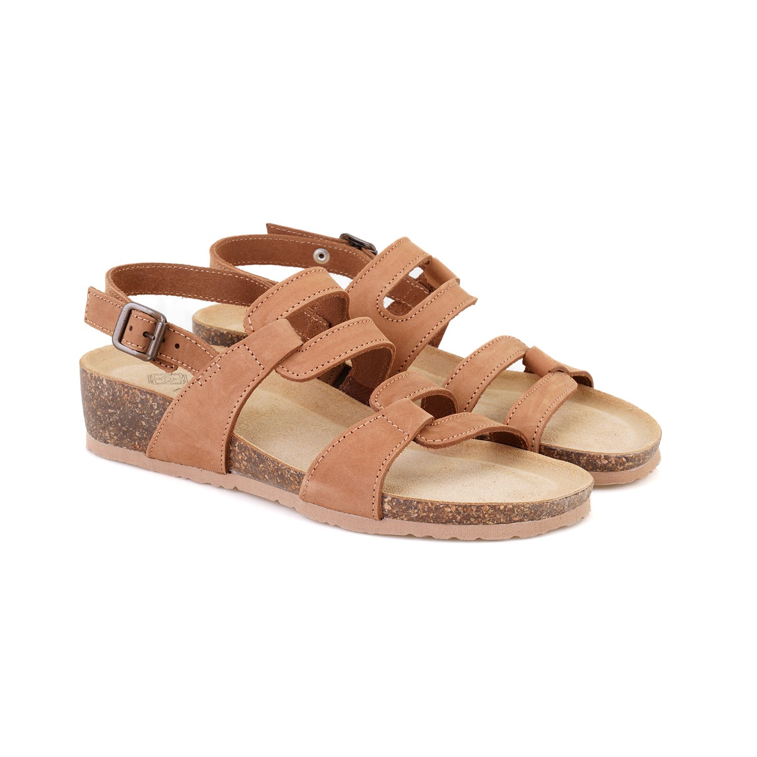 Kadın Taba Ayarlanabilir Tokalı Nubuk Deri Sandalet