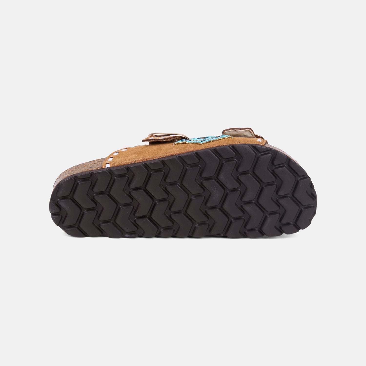 Mantar taban yapısı ayağın doğal formuna uyum sağlayarak dengeli bir basış hissi sunar.
