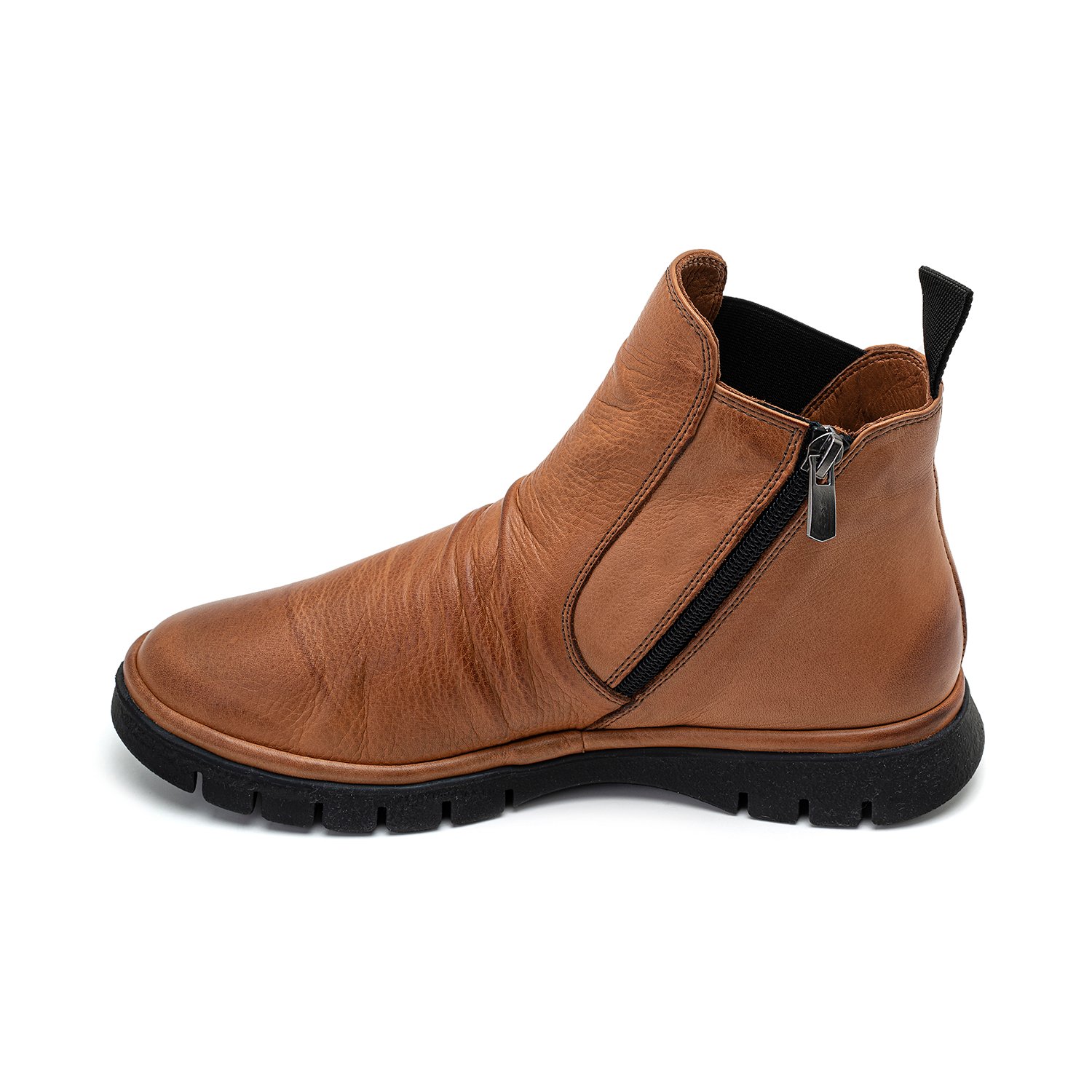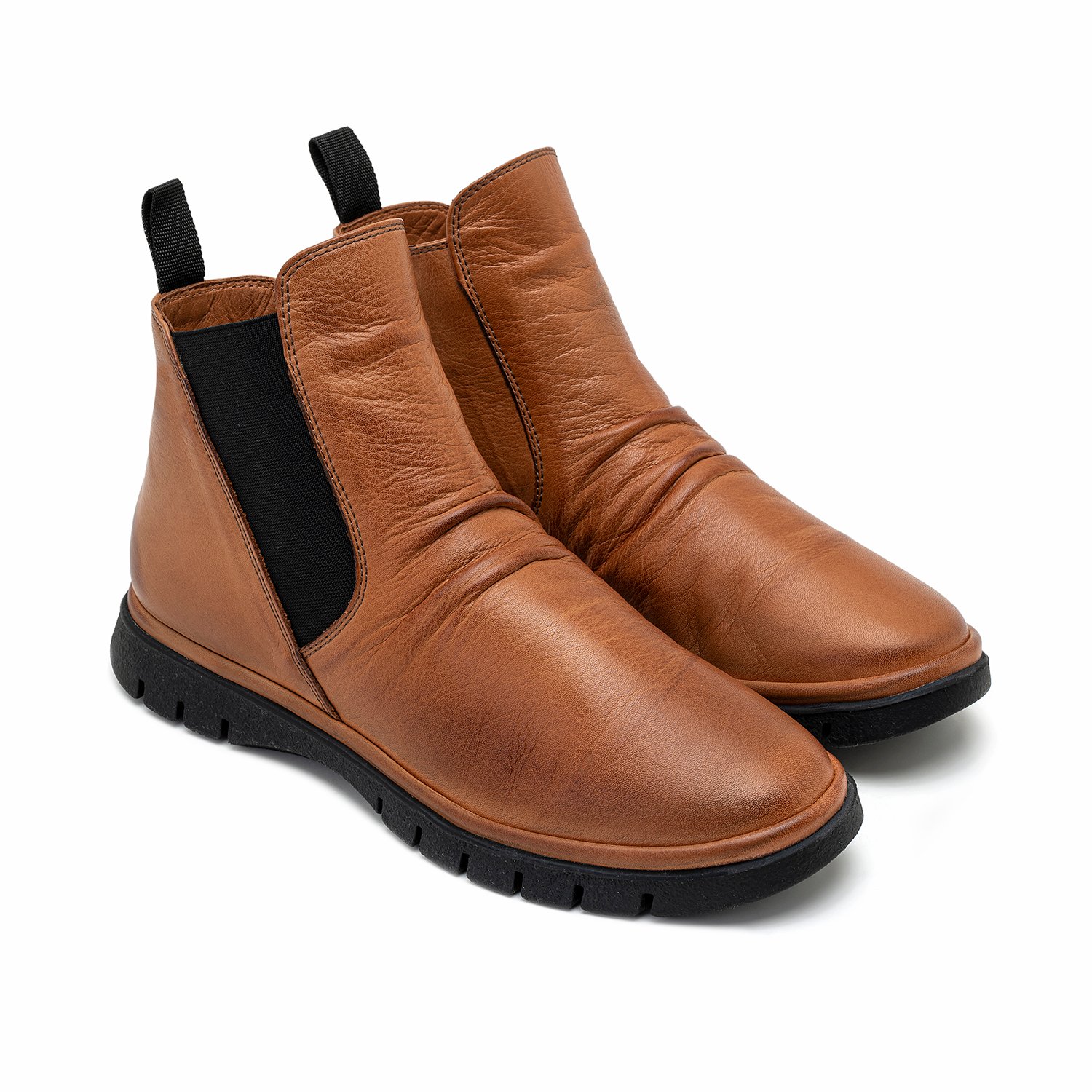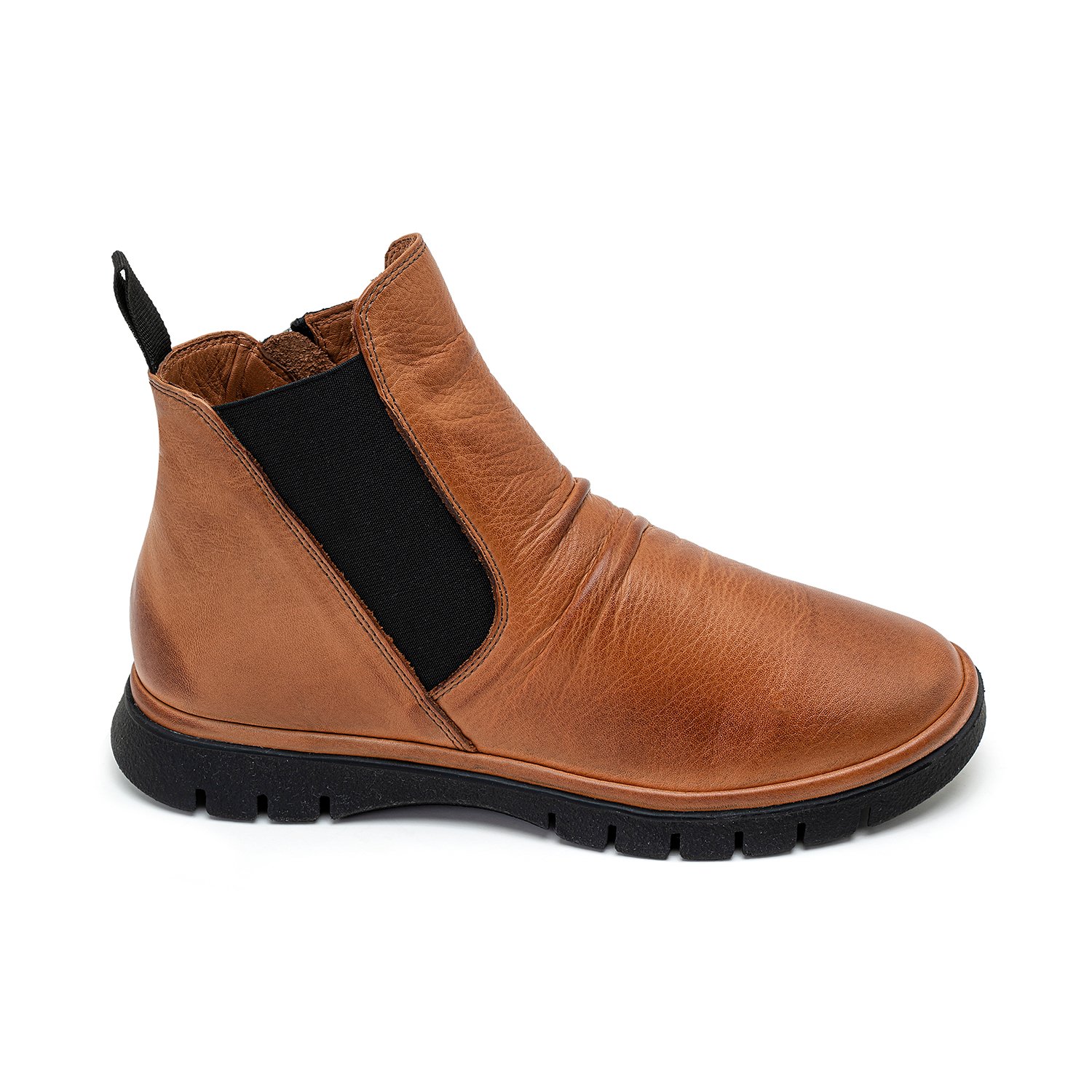 %100 deri, deri iç tabanlı, tekstil astarlı, kauçuk tabanlı, lastik detaylı, kadın bot.