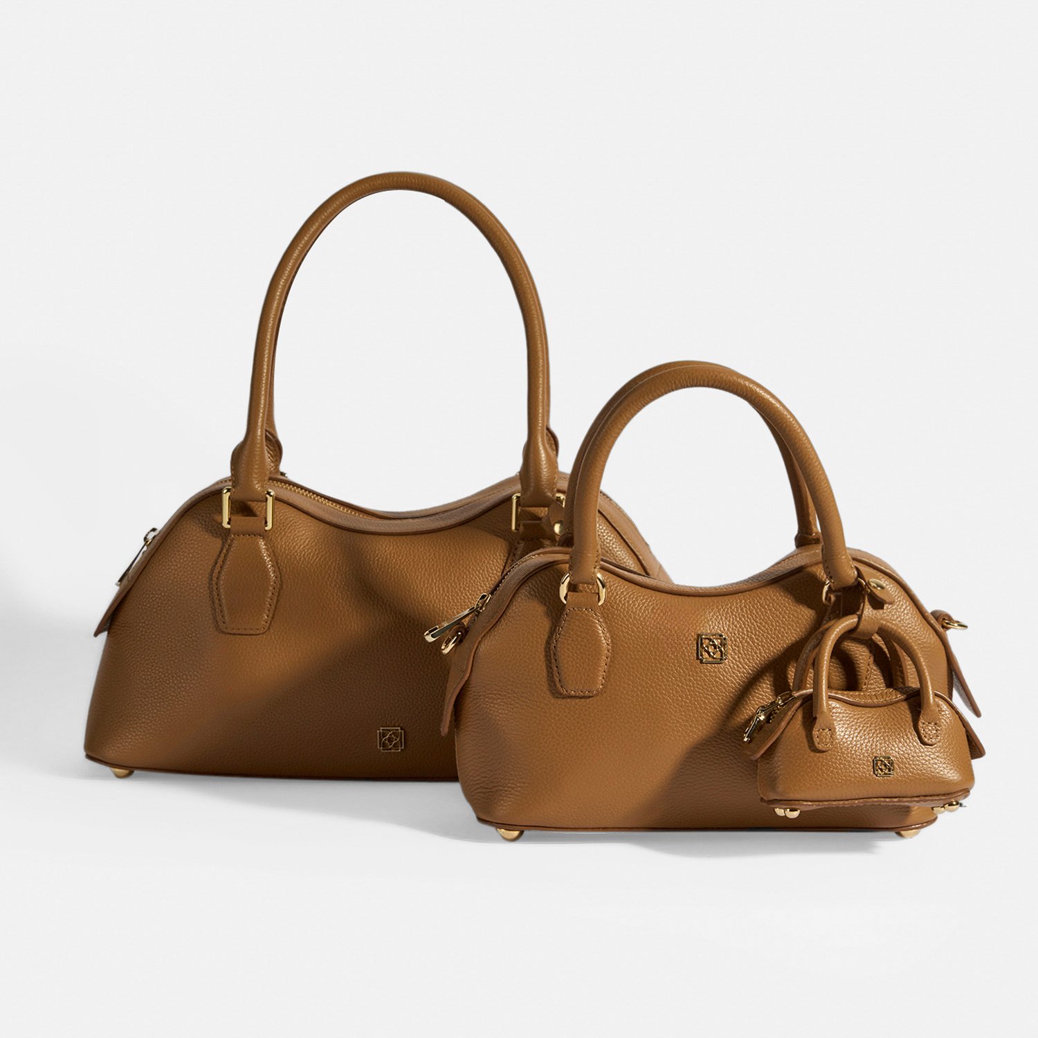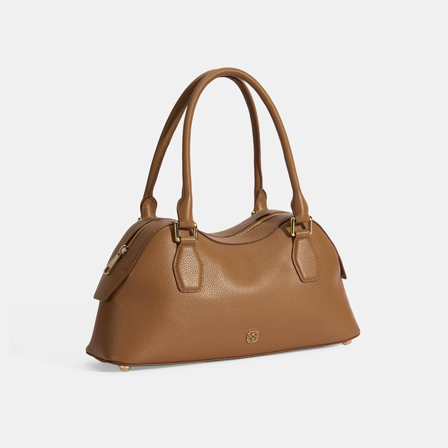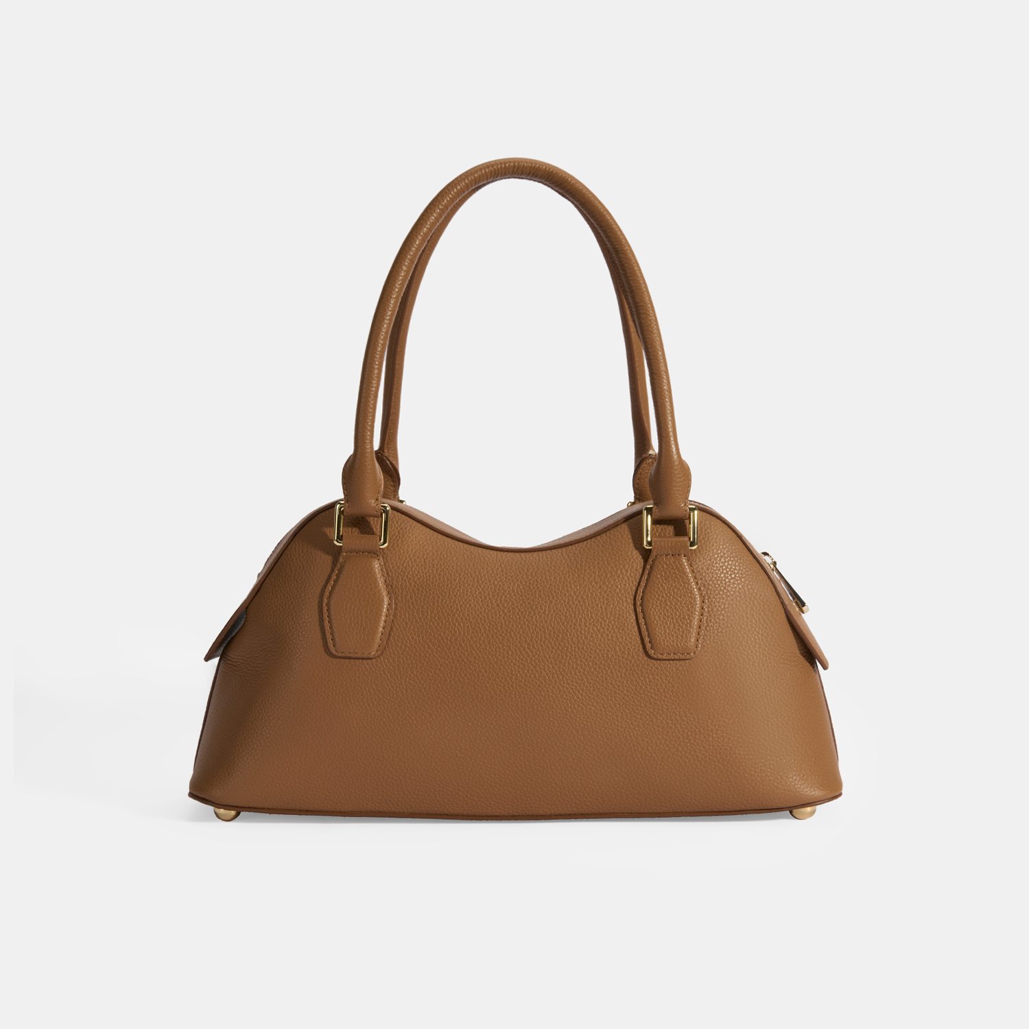 Kadın Taba Deri Çanta Aksesuarlı Büyük Omuz Çantası
