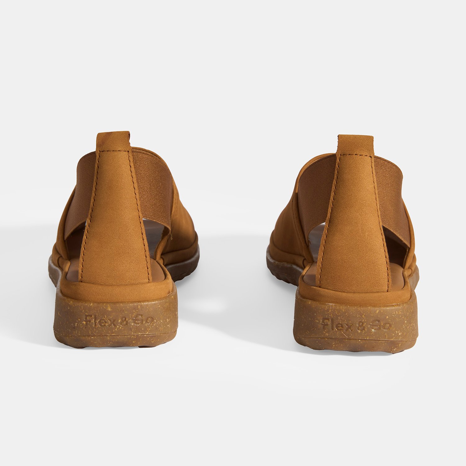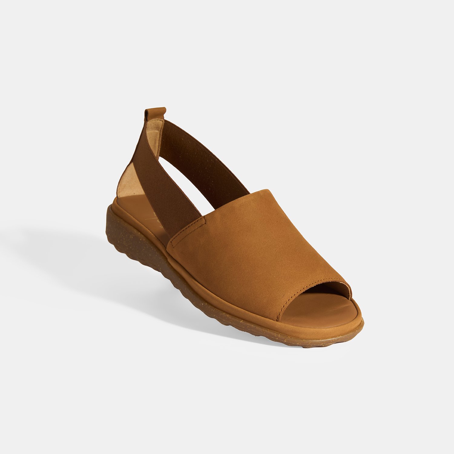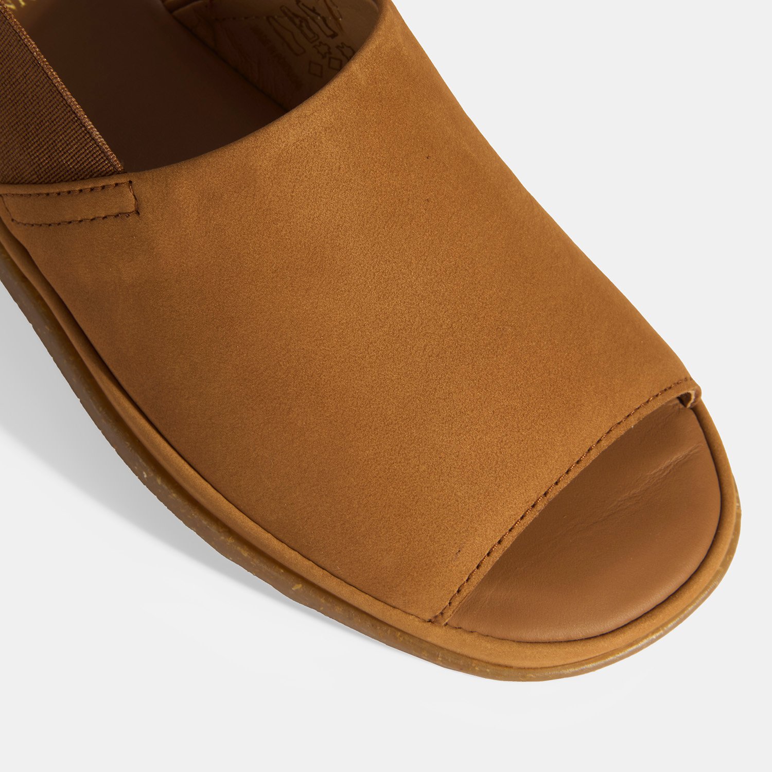 %100 nubuk deri,deri iç tabanlı, deri astarlı, kauçuk tabanlı, lastikli önü açık kadın DesaComfort ayakkabı.
