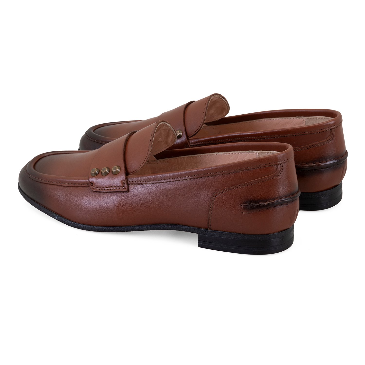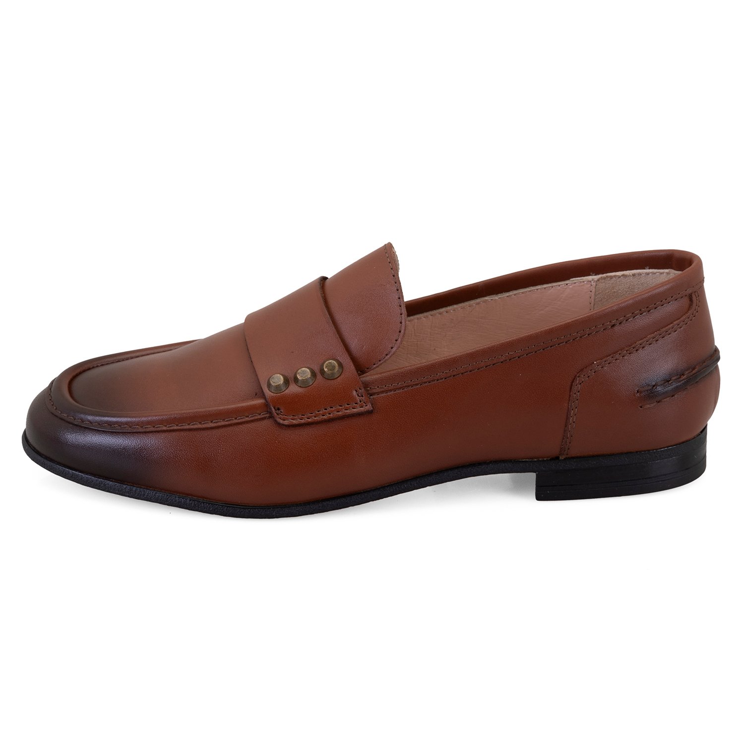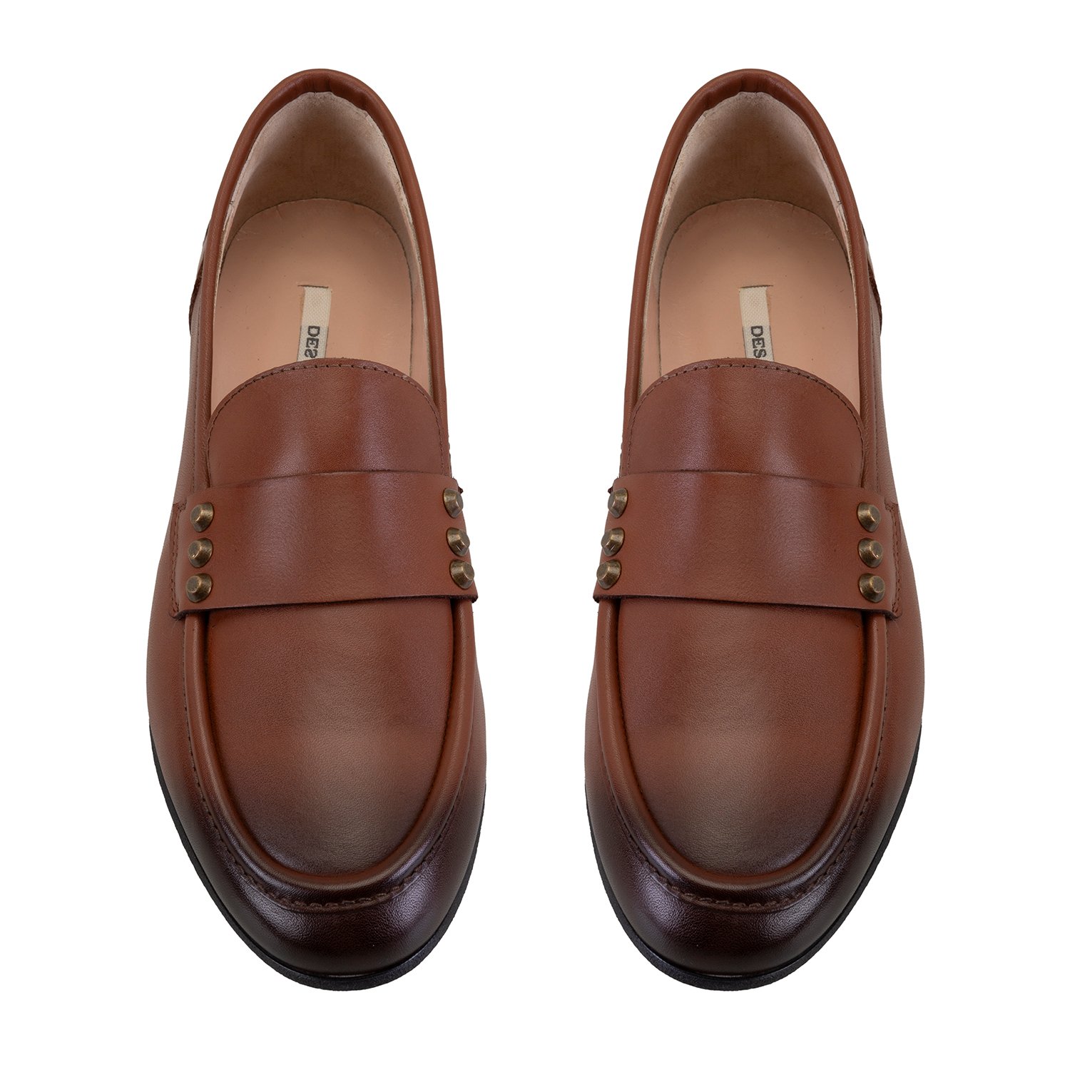 %100 deri, deri iç tabanlı, deri astarlı, tpu tabanlı, metal pim detaylı loafer ayakkabı.