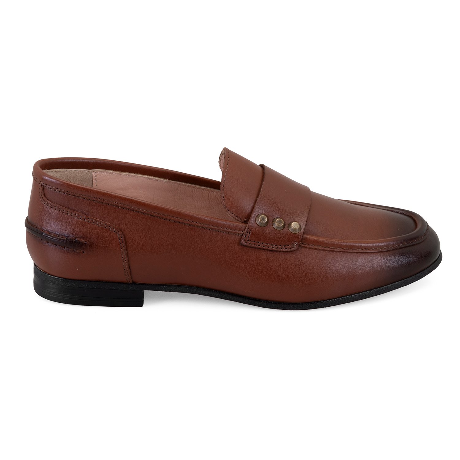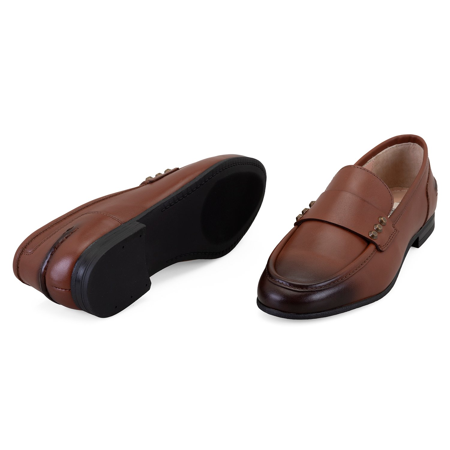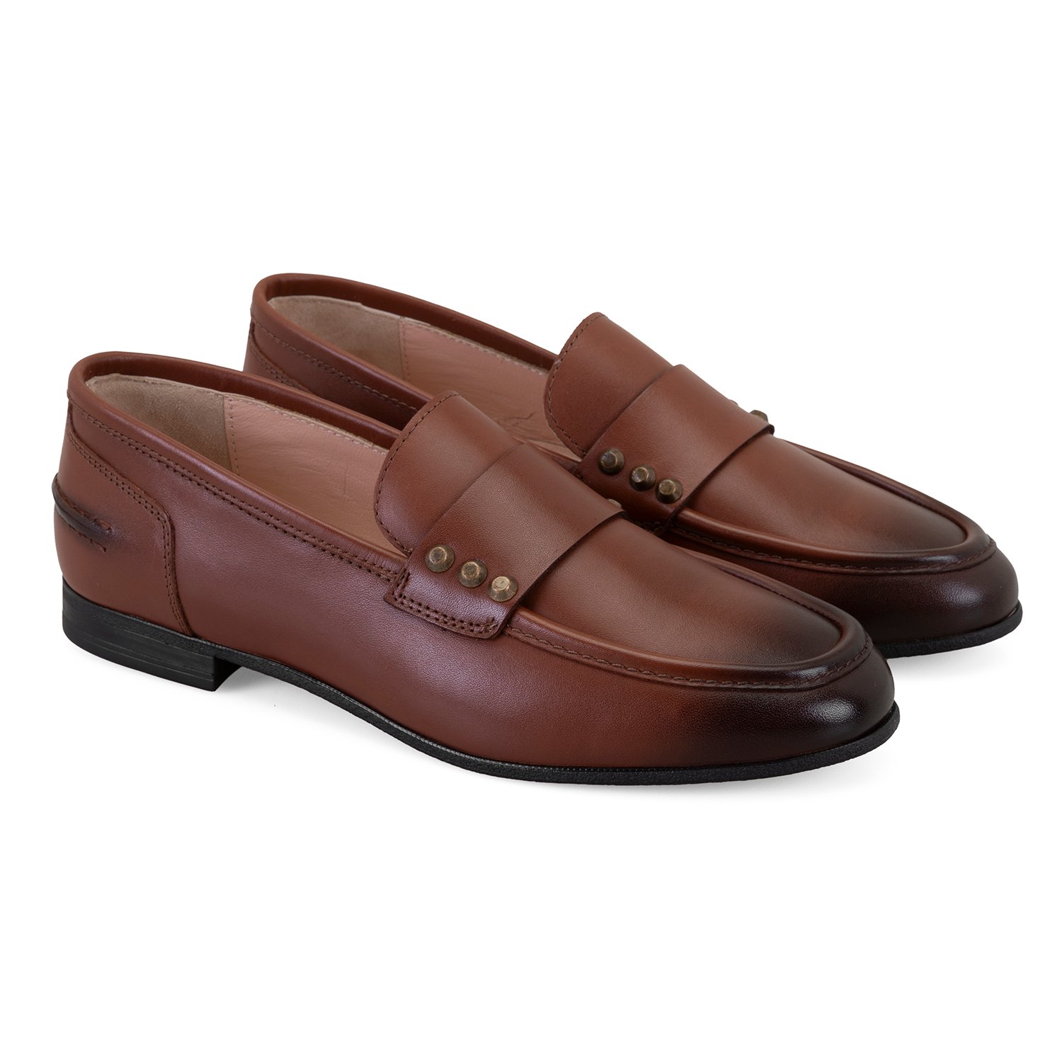 %100 deri, deri iç tabanlı, deri astarlı, tpu tabanlı, metal pim detaylı loafer ayakkabı.