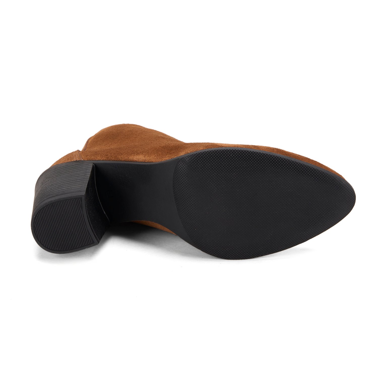 %100 süet deri, deri iç tabanlı, deri astarlı, tpu tabanlı, arkadan fermuarlı, dökümlü kadın topuklu bot.